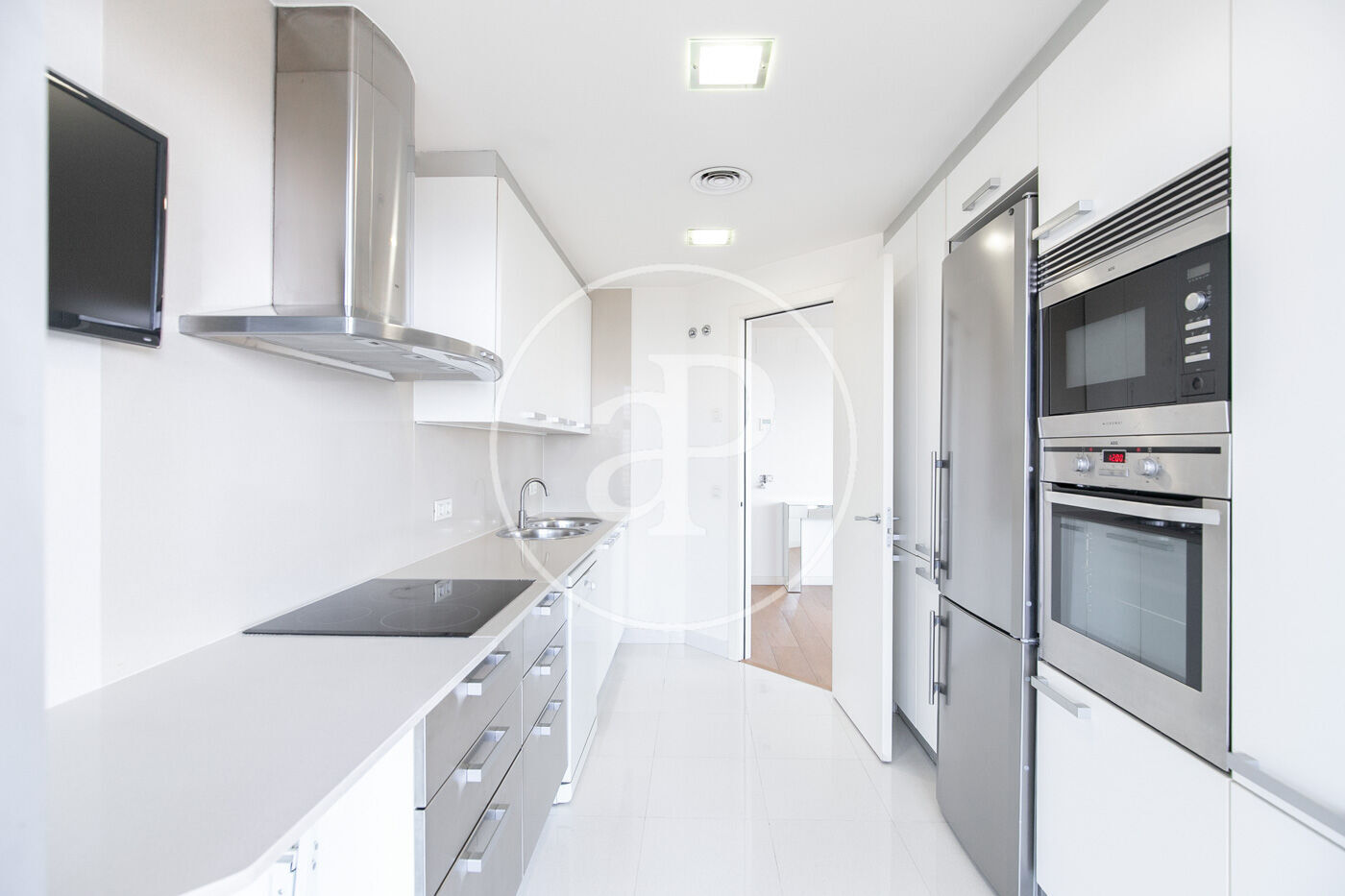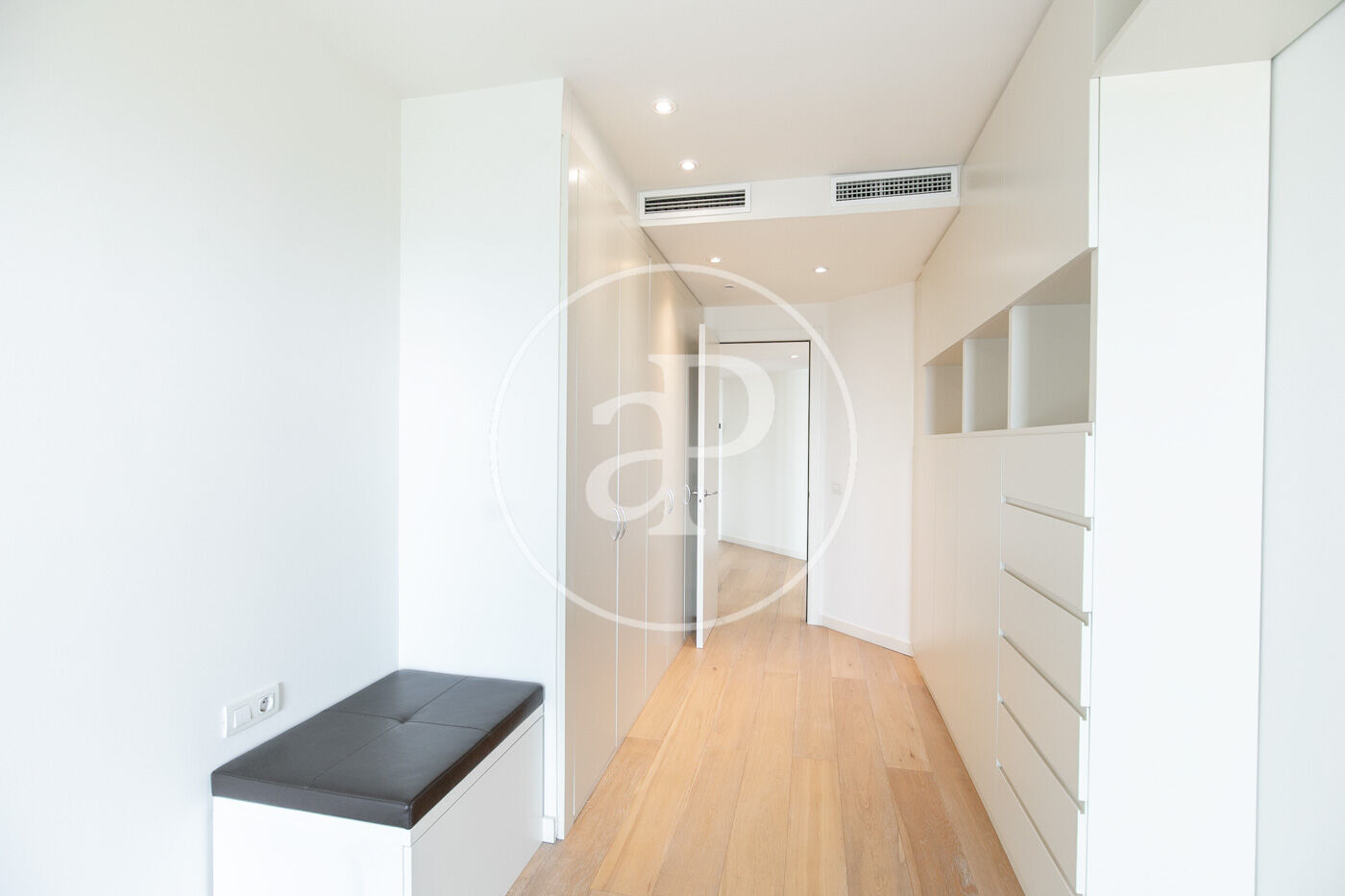 This luxurious apartment features, in the daytime area, 2 bedrooms —currently one is set up as a bedroom and the other as an office— and a fully equipped kitchen with access to the terrace and plenty of natural light.