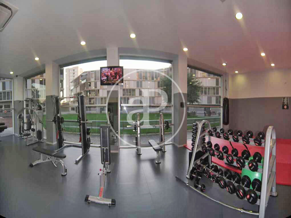 The building Illa de la Llum offers a fantastic communal area, featuring two saltwater pools, a fitness room, a padel court, and a room with table football and a pool table.