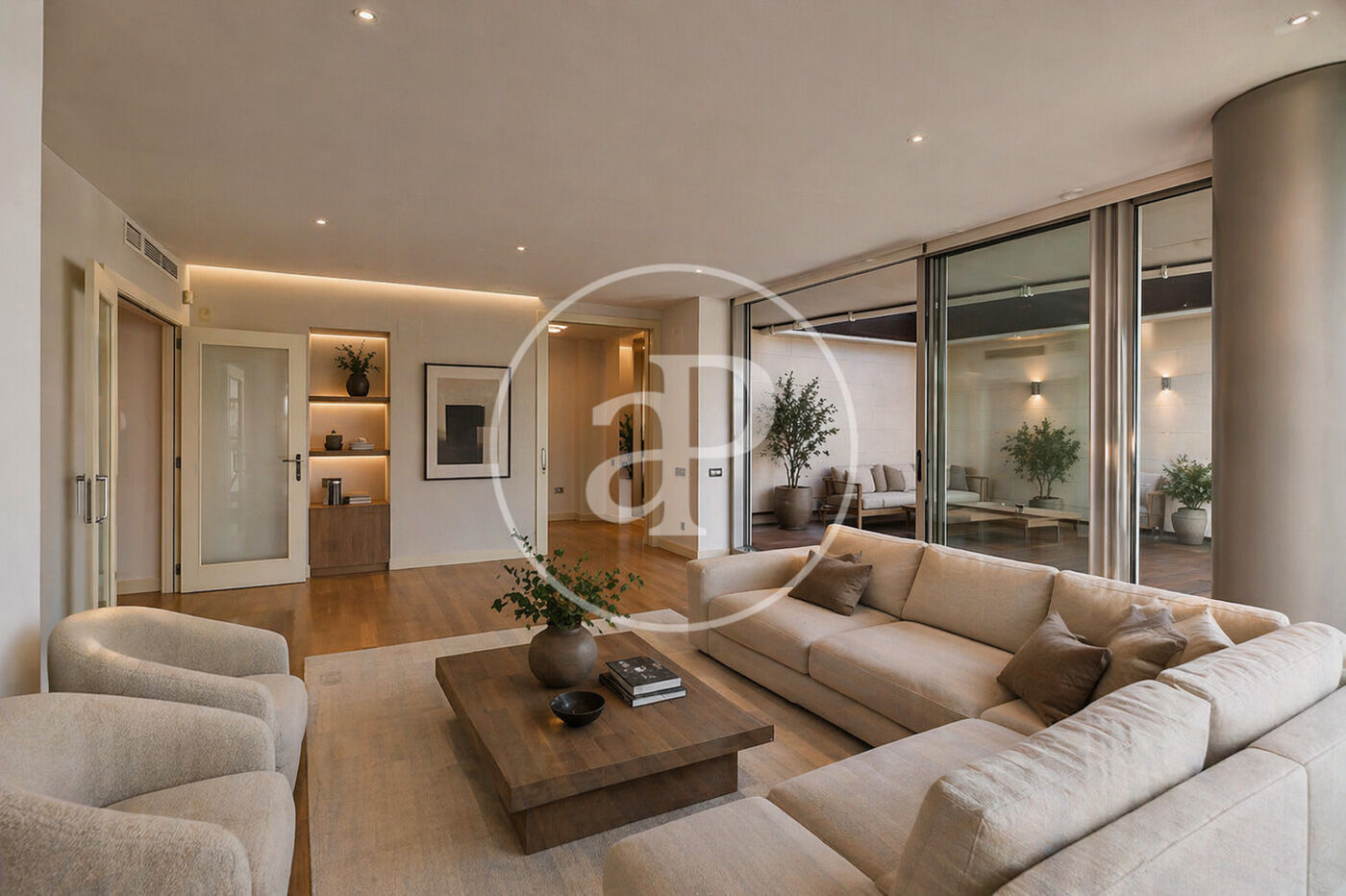The apartment offers 4 spacious exterior bedrooms, all with direct access to the terrace and high-quality fitted wardrobes. It includes 2 full bathrooms, one of them en suite with a spectacular jacuzzi. The day area features an elegant corner living-dining room and a separate kitchen, both connected to the terrace, perfect for enjoying natural light and breathtaking views.
