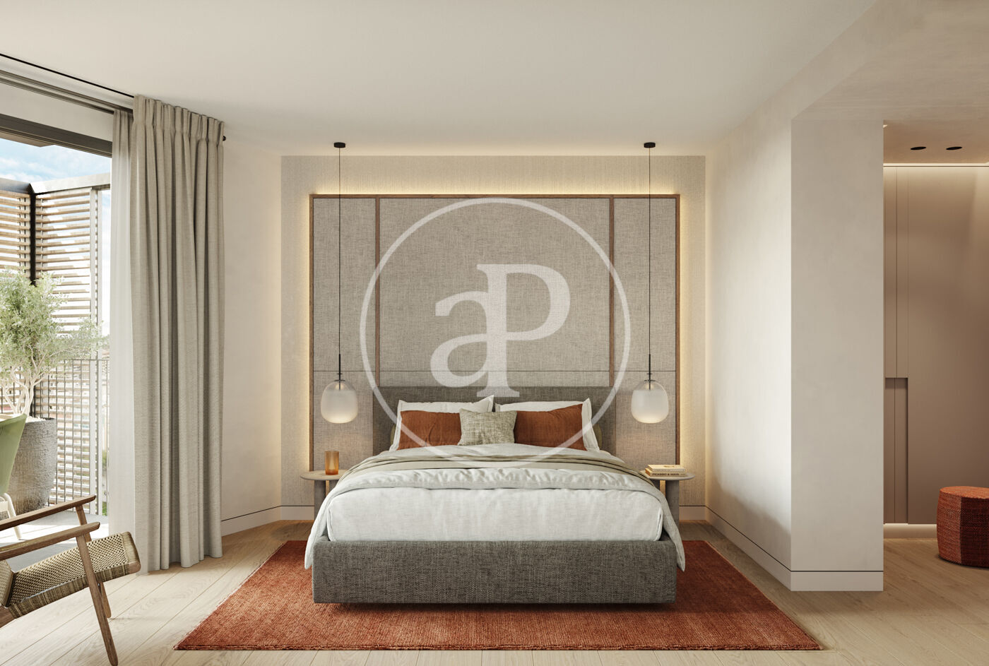 We present a unique development currently under construction, located in one of the most promising areas of Barcelona: a new residential block with access from the renovated, pedestrian-friendly Diagonal Avenue, offering privileged views over Glòria Clariana Park — the Eixample’s largest bioclimatic green lung.