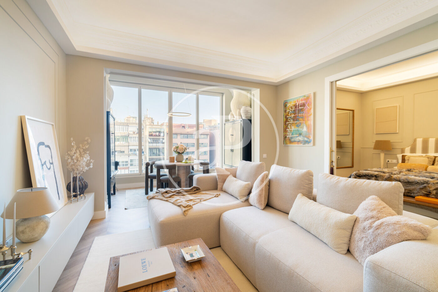 Located on one of Barcelona’s most sought-after and charming streets, this exceptional 100sqm residence is set within an elegant 1919 period building, fully renovated and equipped with a lift. Situated on a real fourth floor, the property enjoys a superb southwest orientation, ensuring outstanding natural light throughout the day.