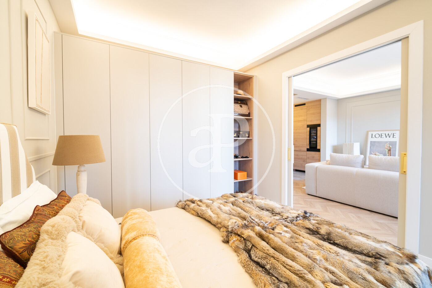 The apartment has undergone a high-end, comprehensive renovation, achieving a flawless balance between contemporary design and the preservation of original architectural features typical of period buildings, such as high ceilings, decorative moldings, and stately proportions.