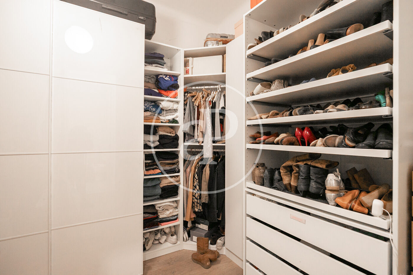 The night area offers: an elegant master suite with a full bathroom and access to a continuous balcony, plus two additional double bedrooms (one of them currently converted into a walk-in closet), as well as a second very spacious full bathroom.
