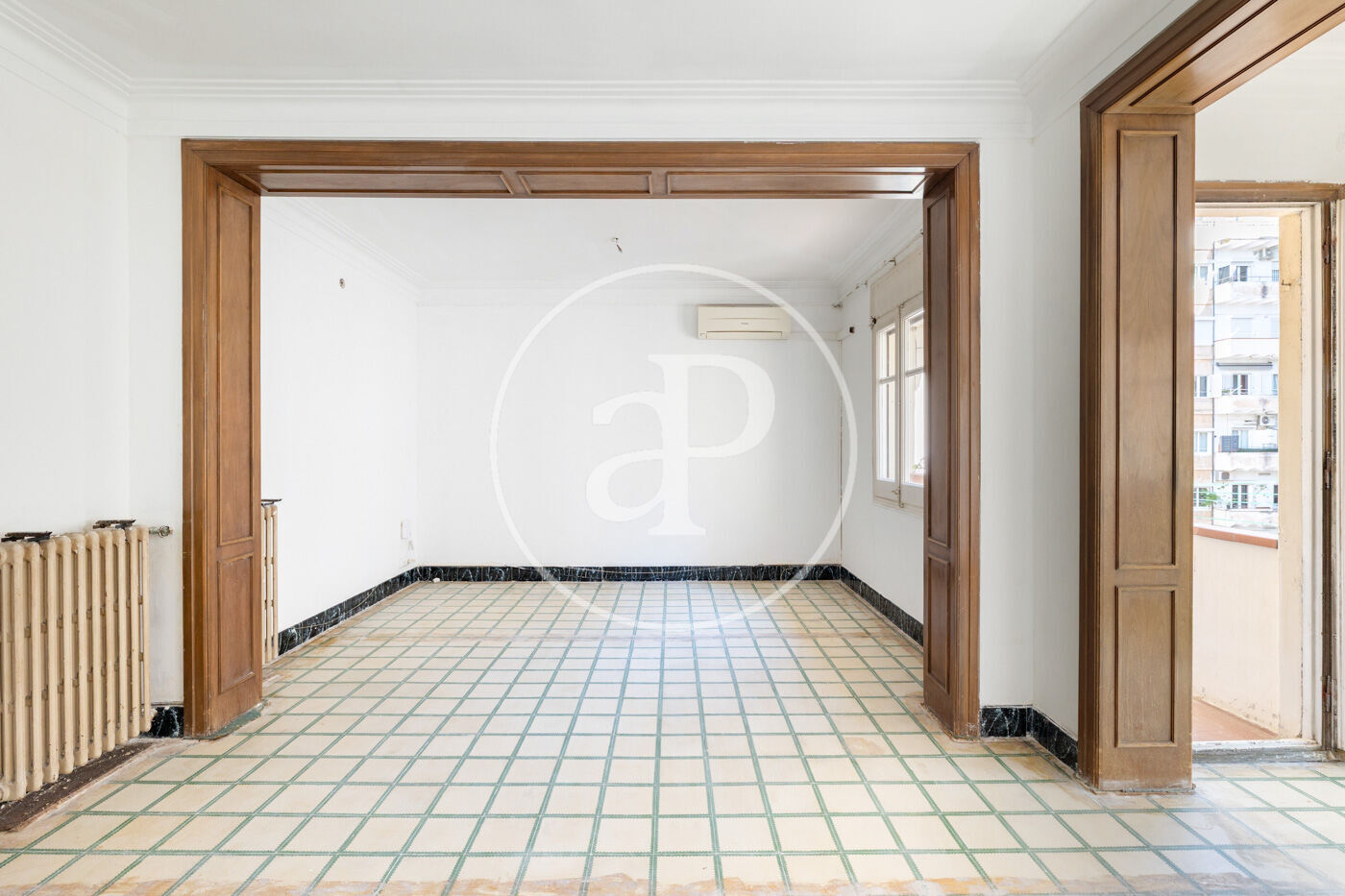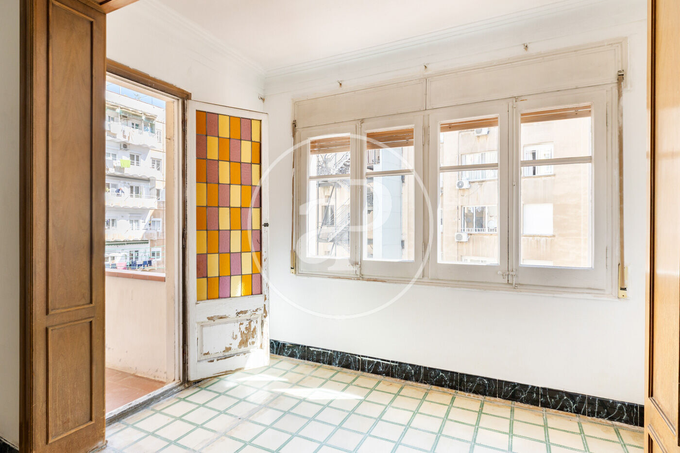 Located in a representative 1970s building in the heart of Eixample, we present this 124 sqm property, situated on a real third floor, with an उत्कृष्ट orientation on three sides that ensures abundant natural light throughout the day. The property stands out for its functional and well-optimized layout, with minimal hallway space and spacious, square-shaped rooms that allow for multiple renovation and customization possibilities. It currently offers four bedrooms (three exterior double bedrooms and one additional room), two full bathrooms, and a generously sized independent kitchen. The property features individual gas heating with radiators in all rooms, high-quality double-glazed windows, and solid oak parquet flooring in the main areas. The building offers concierge service and two lifts, providing comfort and security in everyday living. There is the option to acquire a parking space in the same building, with direct access, for €25,000. Thanks to its orientation and open views, the property enjoys a pleasant sense of spaciousness, which is uncommon in the area, making it an excellent opportunity both as a primary residence and as an investment. Located in one of Barcelona’s most established and sought-after areas, with all services, shops, public transport, and a wide range of dining options just a few minutes away, this property perfectly combines location, natural light, and potential.