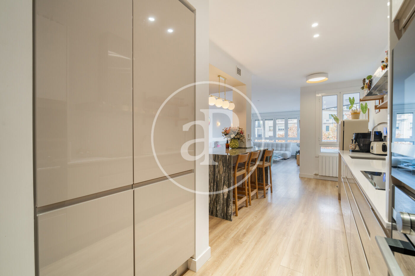 Situated on the fifth floor, the property enjoys natural light throughout the day thanks to its corner orientation and large windows. The 130 m² have been designed to provide a comfortable, elegant and functional living experience.