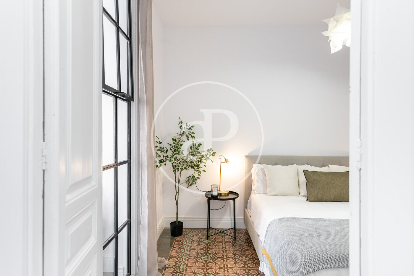 Located in the heart of Eixample Izquierdo, on the sixth floor of a royal estate of 1900 in perfect condition, this apartment is an architectural jewel that combines modernist charm with contemporary comfort.  Completely refurbished by a prestigious architectural firm, the house is distinguished by a careful design to detail and high quality materials. Original elements of Catalan modernist architecture have been recovered and enhanced, such as the hydraulic floors and the emblematic Volta Catalana, giving character and authenticity to each room. Thanks to its height and southeast orientation, the property enjoys abundant natural light throughout the day, creating a warm and welcoming atmosphere.  The apartment has an area of 115m2 and is distributed in three double bedrooms, all with fitted closets, one of them en suite, and two bathrooms. The kitchen, independent and equipped with high-end appliances, is complemented by a practical laundry area.  Heating and air conditioning by splits, double glazed windows, direct and indirect lighting, among many other details that make this an unparalleled property in the area.  The building offers a high level of security, with surveillance cameras and double access. It also has an elevator for convenience.  A unique opportunity to live or invest in one of the most emblematic areas of the city.