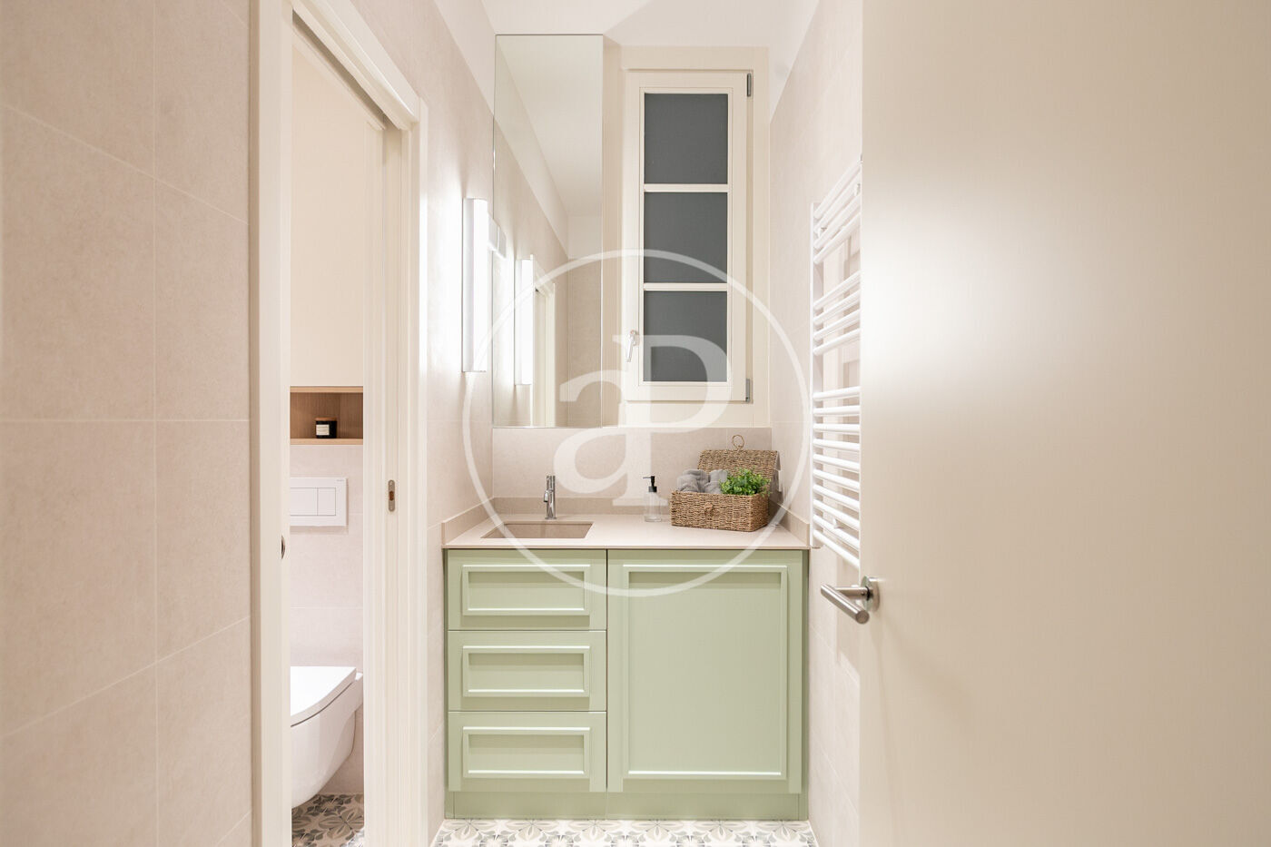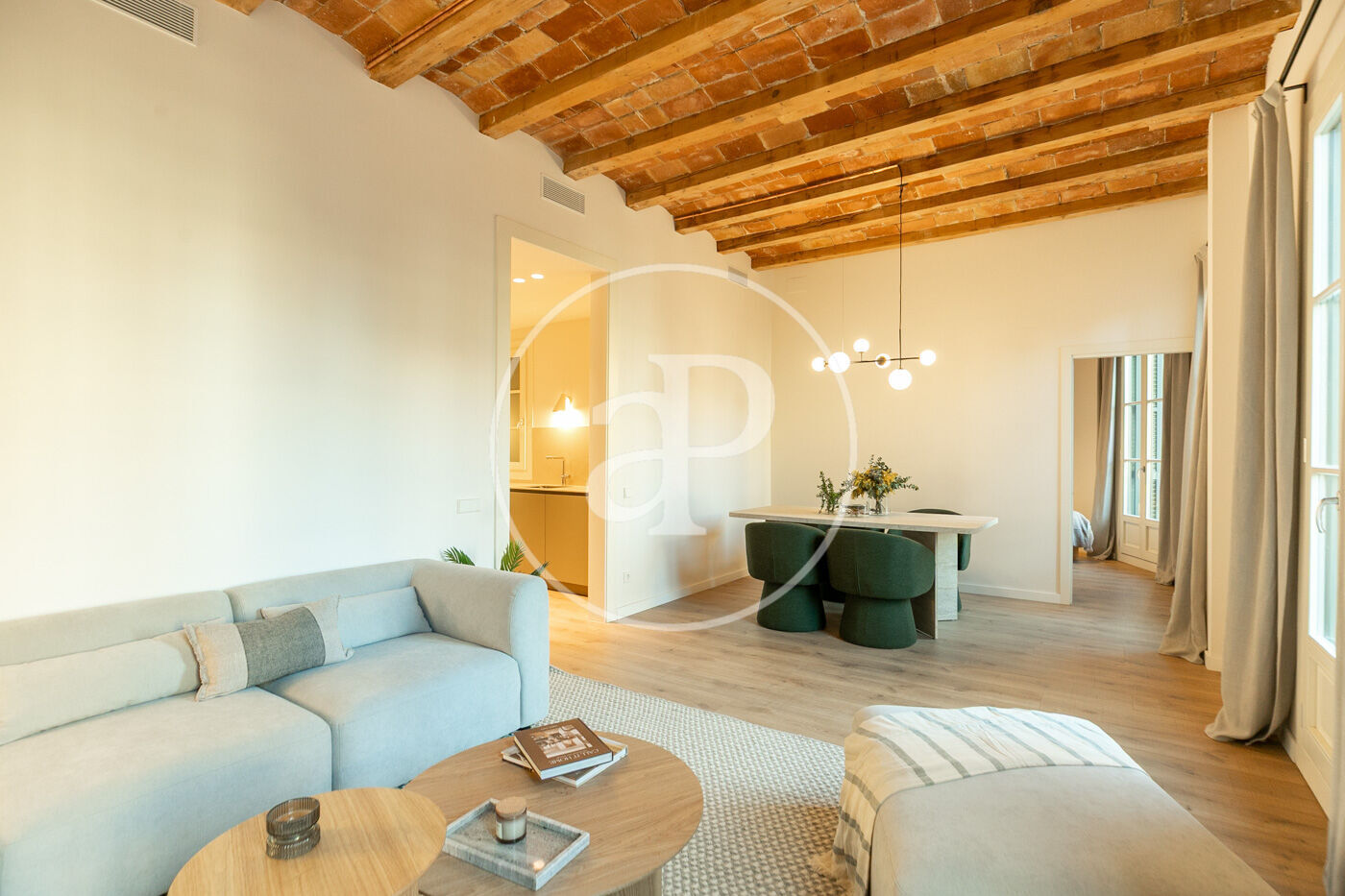 Spectacular apartment for sale with a FULL RENOVATION of 86 m² in a FINCA REGIA, in a 1892 building with elevator, located in EIXAMPLE ESQUERRA, at the corner of Aribau and Aragó streets. It enjoys an excellent, central location with great connectivity, close to Passeig de Gràcia and Plaça Catalunya.