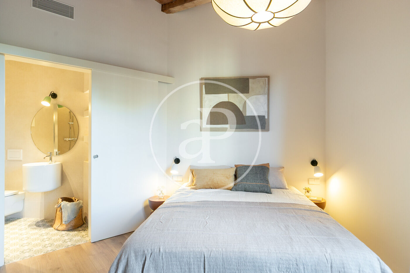 The renovation includes a fully equipped kitchen, living-dining room with Catalan vaulted ceiling, 2 double bedrooms, and 2 full bathrooms, one of them en-suite.