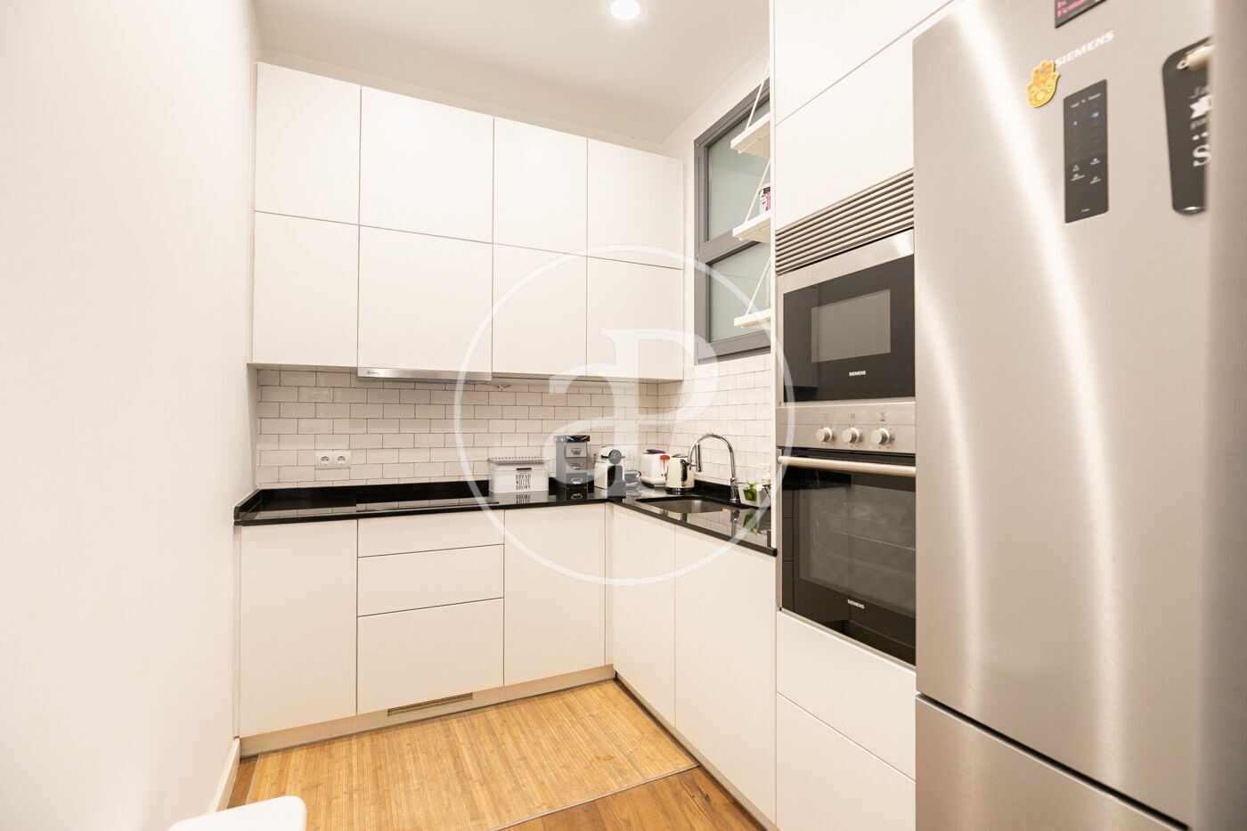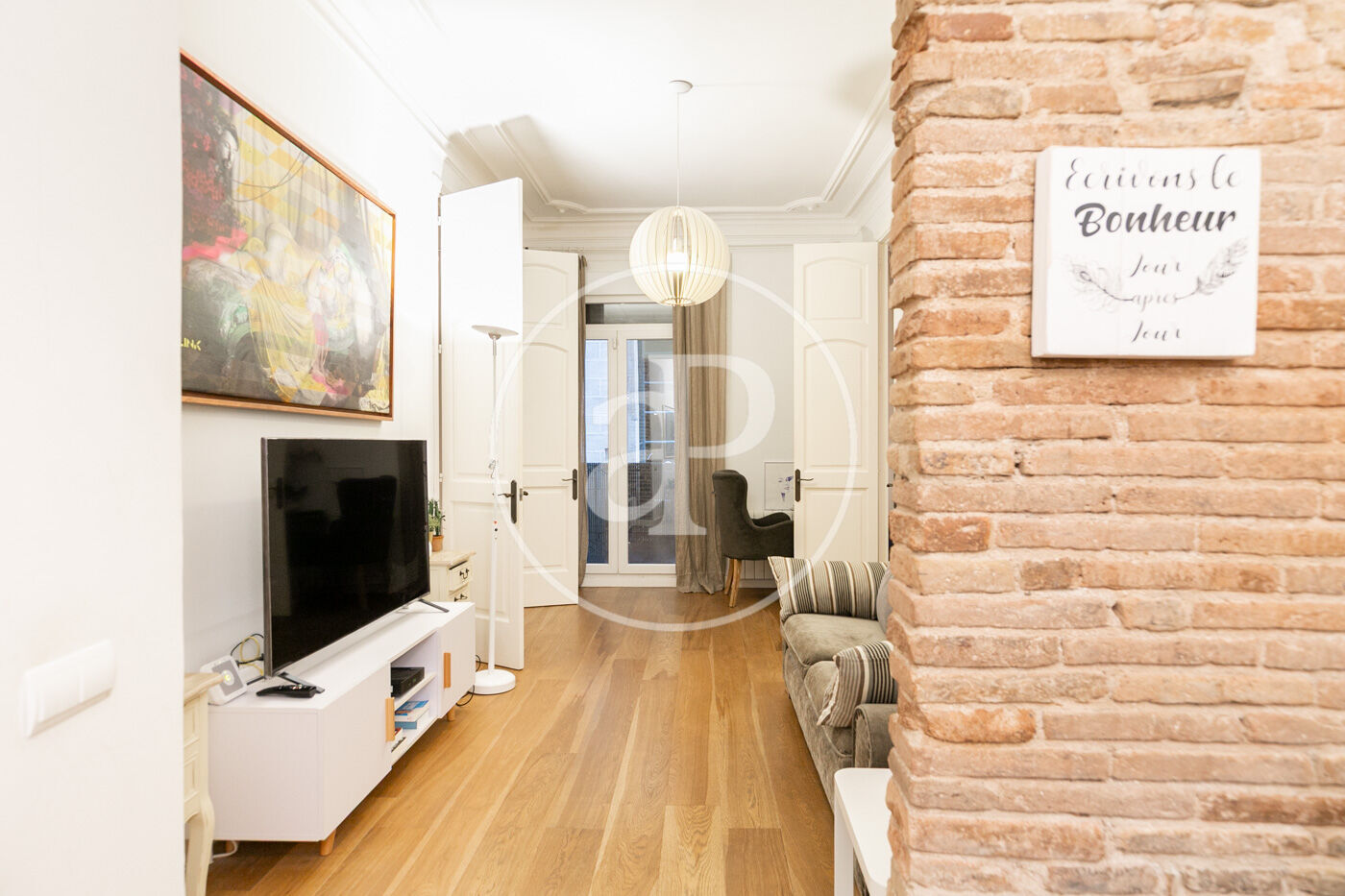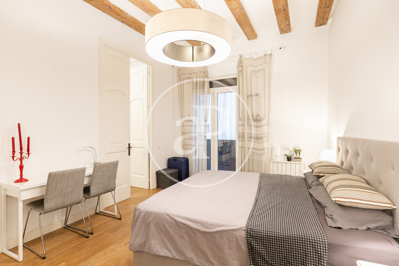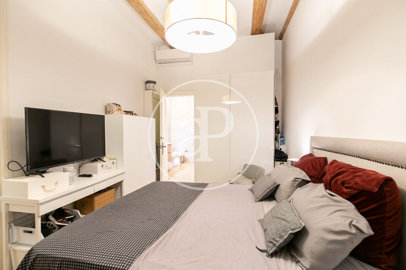 In the heart of the Gothic Quarter, one of Barcelona's most emblematic and sought-after areas, this exclusive apartment is presented, combining history and modernity in an incomparable setting. Surrounded by centuries-old streets, lively squares, and a unique cultural and gastronomic offering, this home is an opportunity to experience the city's authentic essence in one of its most inspiring corners. Located on a high floor of a renovated building, without an elevator, this apartment has been completely refurbished with an architectural project that enhances light and spaciousness. It features a separate bedroom, an open-plan space that integrates the living room, entrance hall, and kitchen, and preserves original elements such as woodwork, exposed beams, and hydraulic mosaics, which blend harmoniously with contemporary, sober, and sophisticated finishes. The home is delivered fully furnished and equipped with high-end appliances, ready to move into from day one, with no need to add anything else. Thanks to its double orientation and the presence of two interior patios, the apartment enjoys an enveloping natural light and a peaceful atmosphere amid the dynamism of the historic center. Its contemporary design, with custom-made furniture and recessed lighting, makes it a comfortable and elegant home, perfect for both living and entertaining. The location is unbeatable: on a quiet street in the Gothic Quarter, just a few steps from iconic places and with excellent connections to the rest of the city, whether on foot, by bike, or via public transport. A unique opportunity to live in Barcelona with character, design, and quality in every detail.