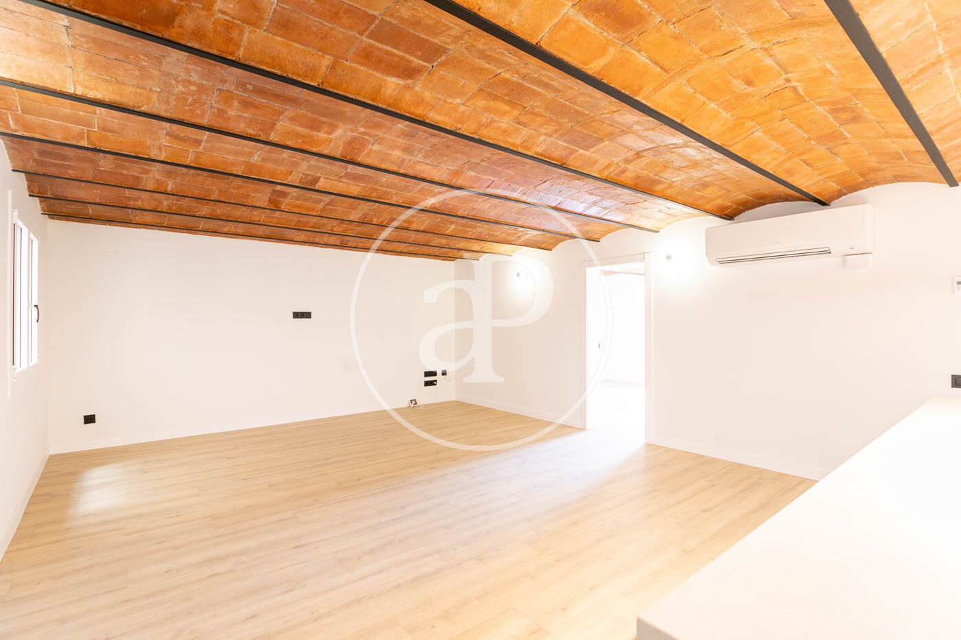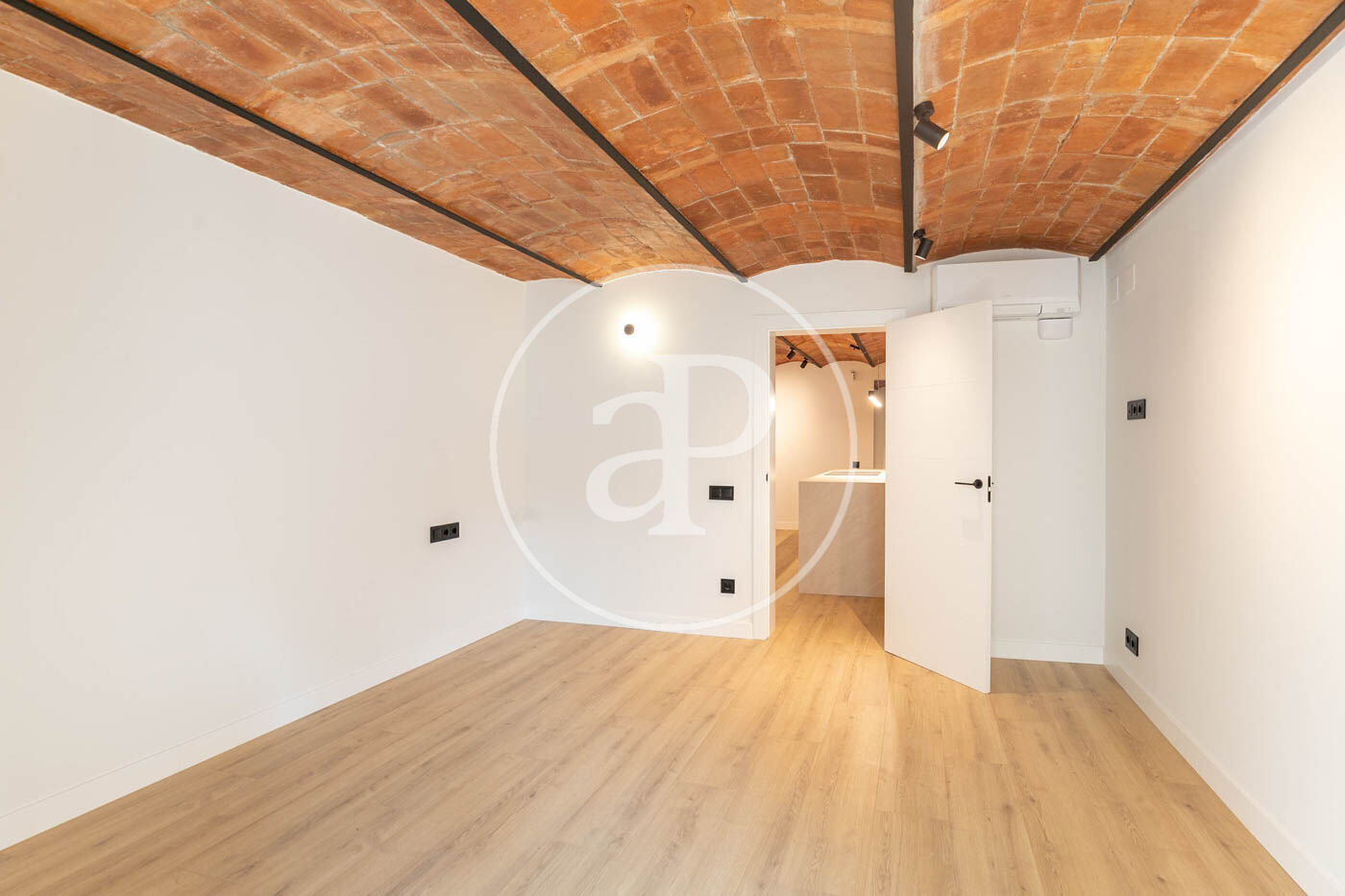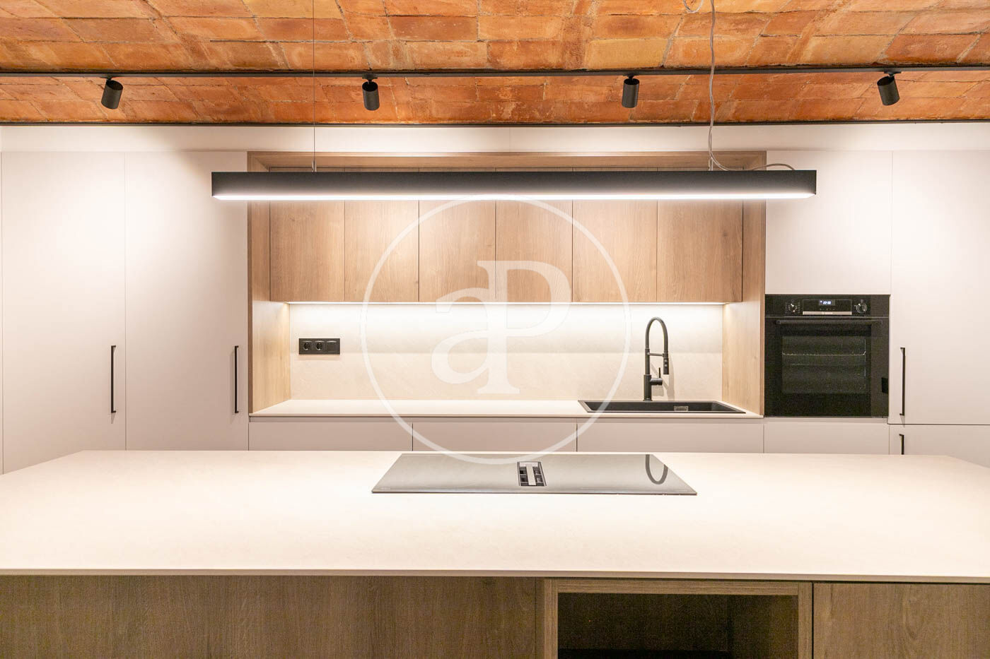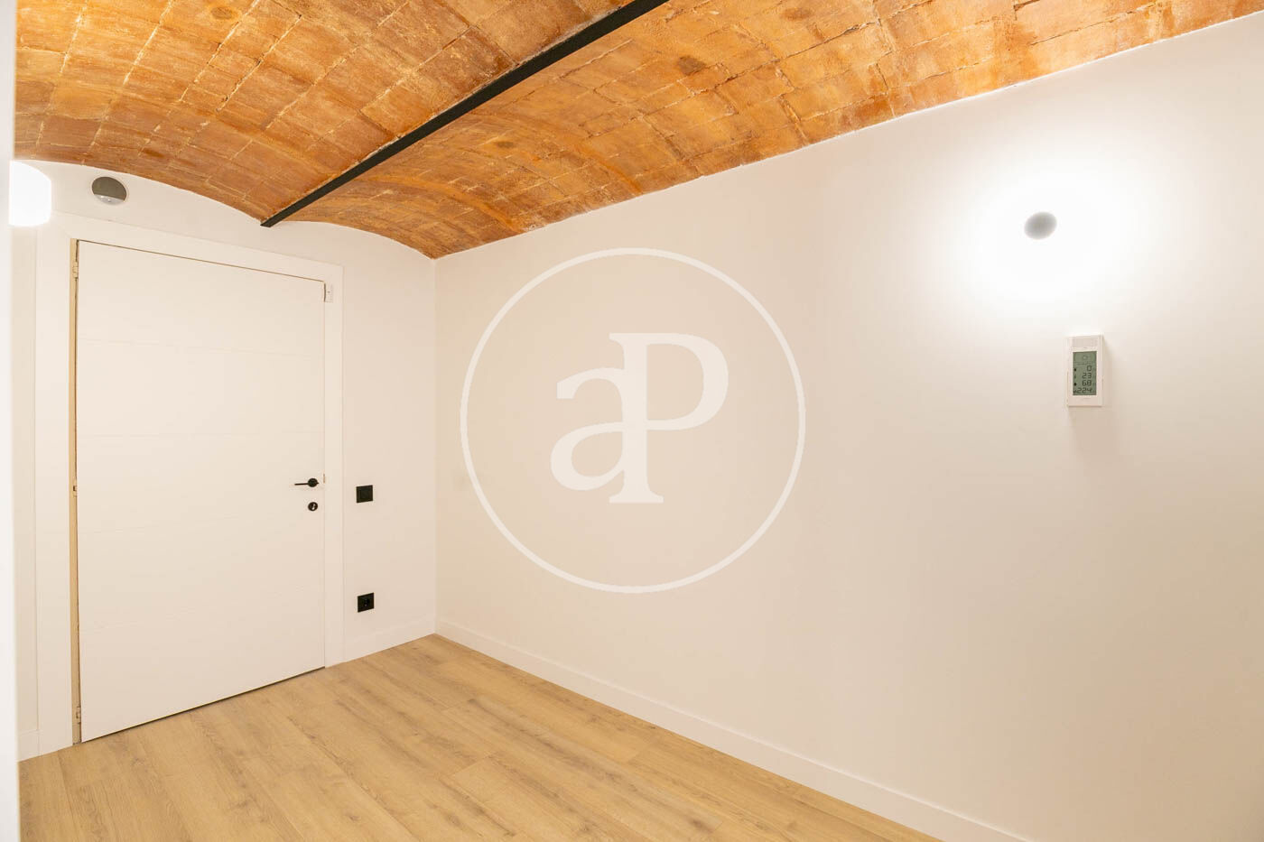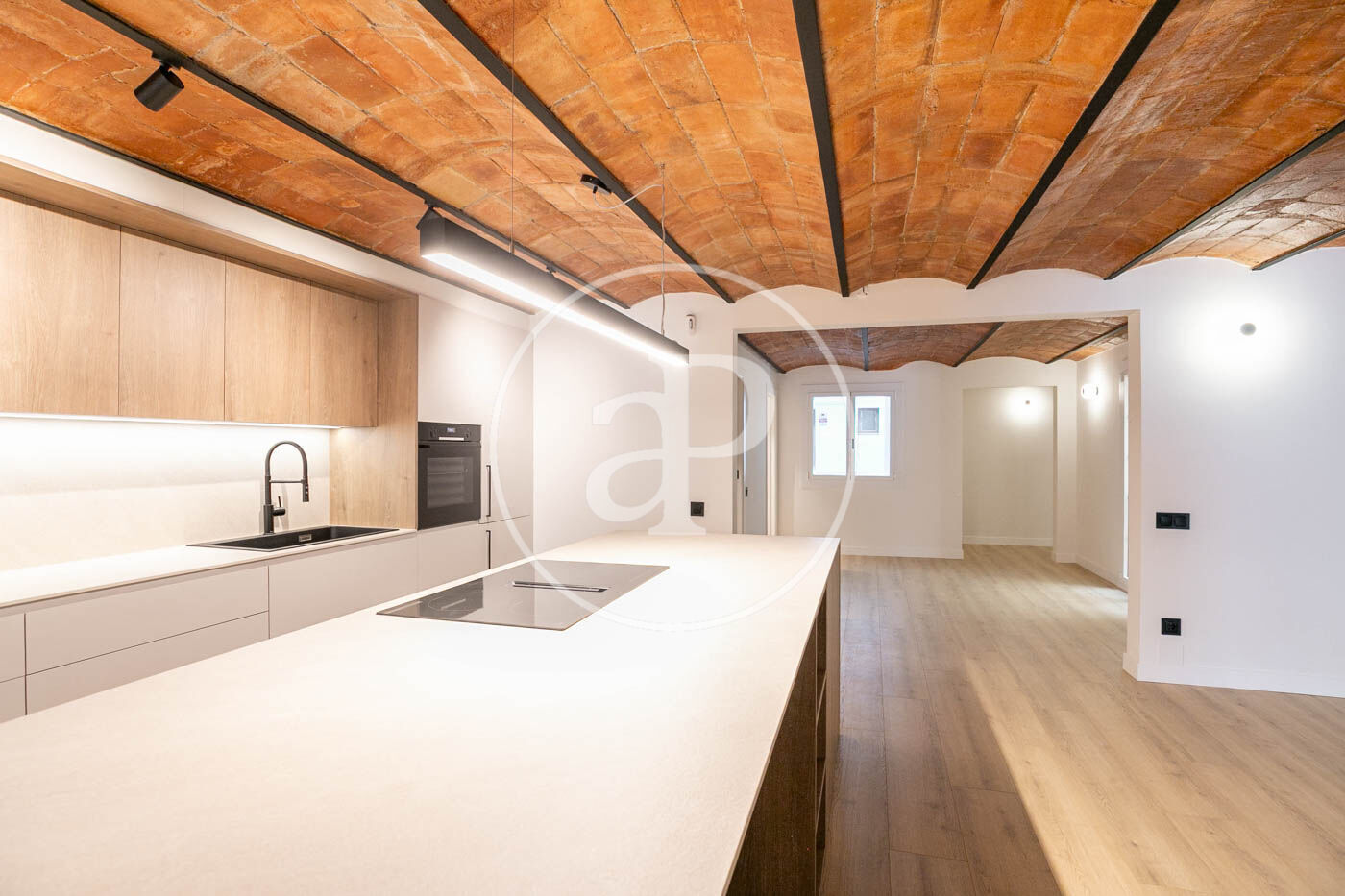 The apartment has been fully renovated with high-end materials, blending a contemporary aesthetic with deep respect for its history. Original features stand out, such as the impressive Catalan vaulted ceiling, restored to bring character and authenticity.