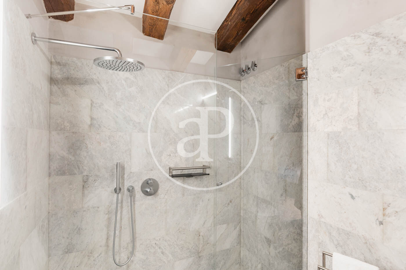 Palacio Moxó, located in Plaça Sant Just in Barcelona’s Gothic Quarter, has undergone an ambitious restoration that blends the preservation of its historical richness with exceptional modernization, transforming it into an exclusive collection of luxury apartments. This project has carefully preserved original architectural elements such as restored frescoes, high ceilings, and 18th-century decorative moldings, integrating them with contemporary features that ensure unparalleled comfort and elegance.