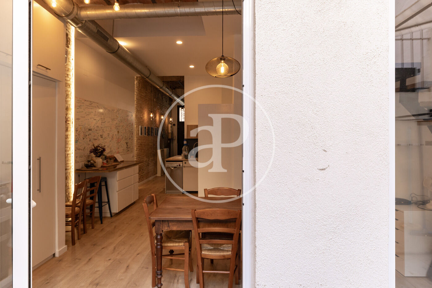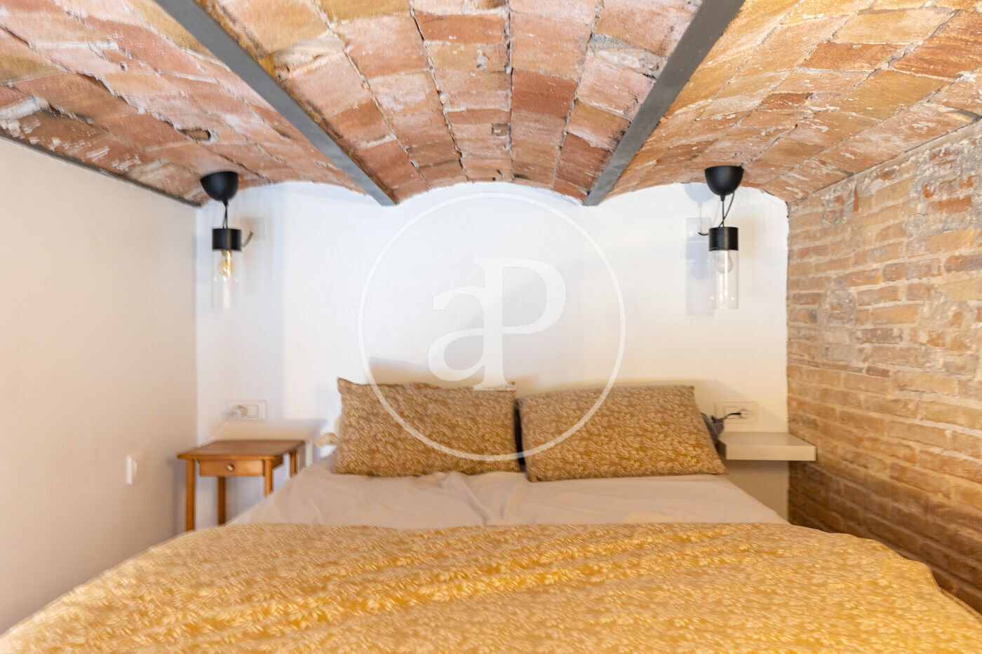 The property features renovated installations and air conditioning, ensuring a high level of comfort and efficiency. Its high ceilings with exposed wooden beams and Catalan vaulted ceilings, exposed brick walls, and parquet flooring make this home a warm and characterful space in a prime location.