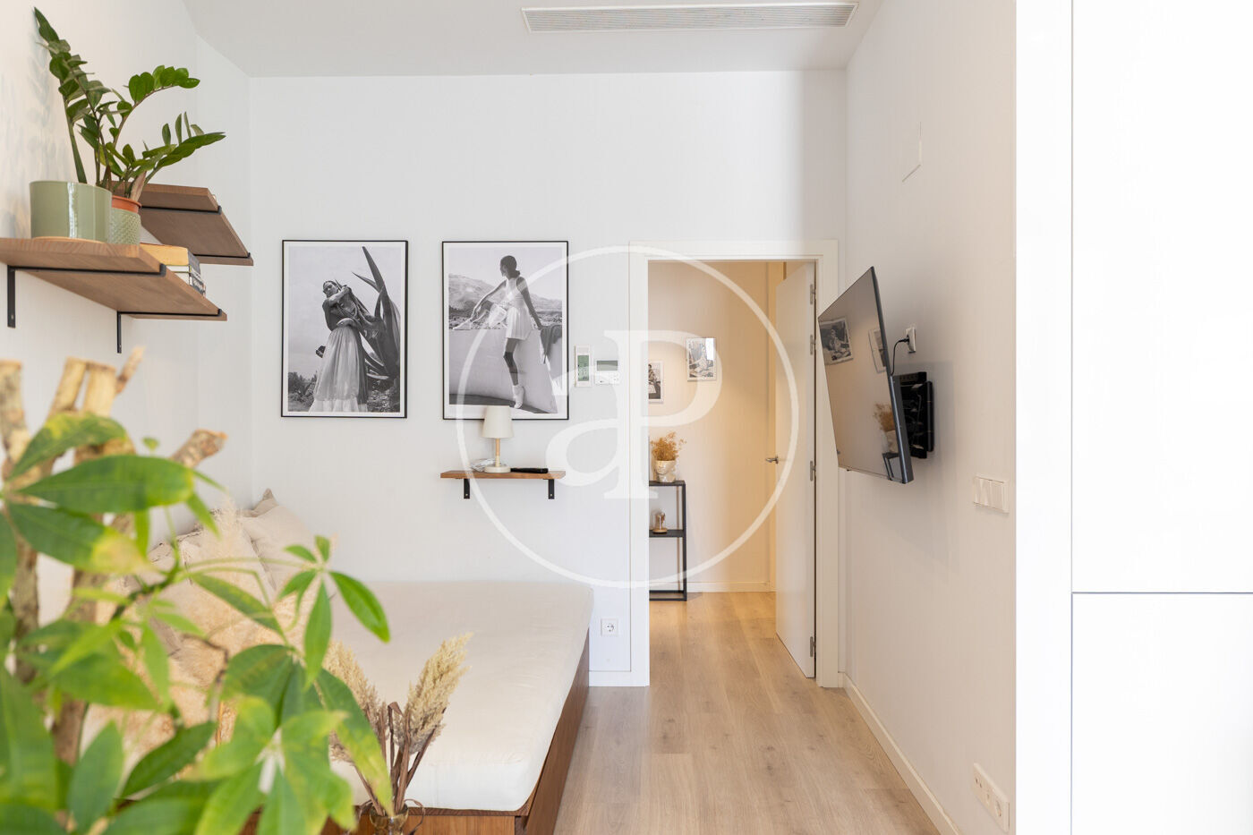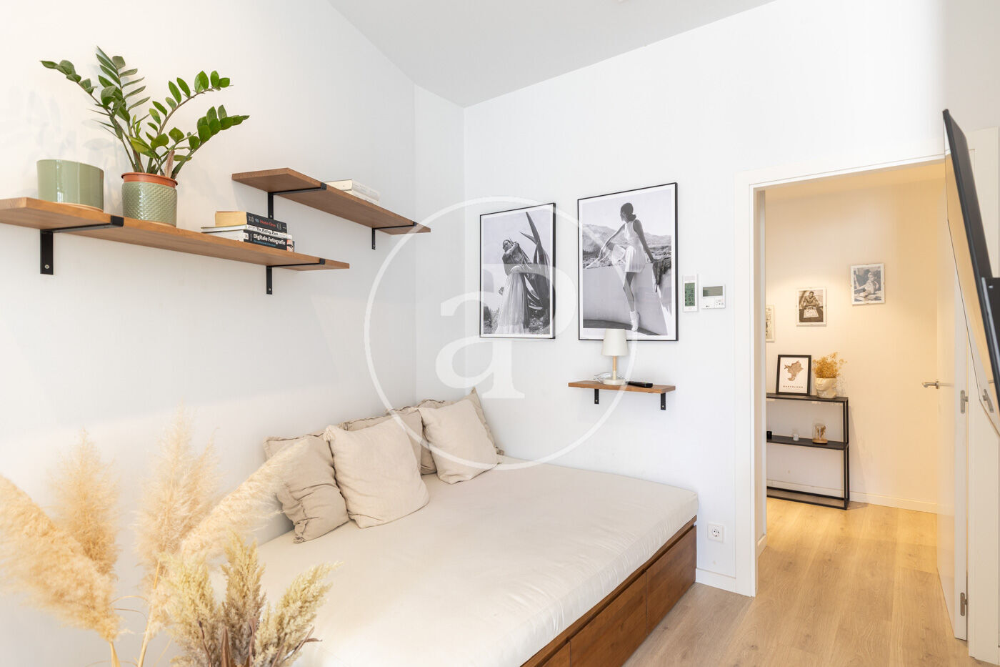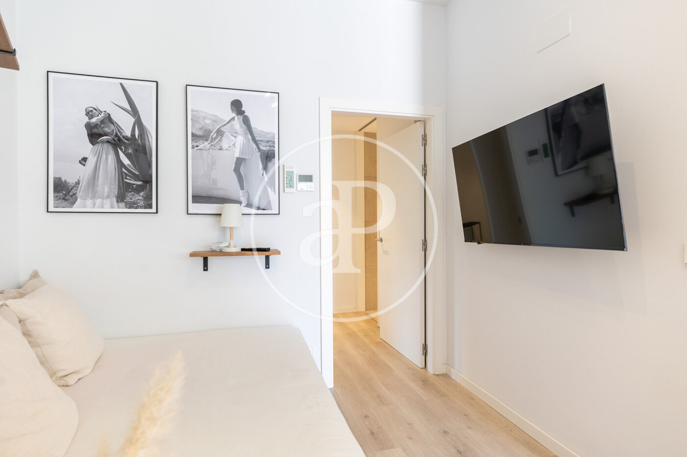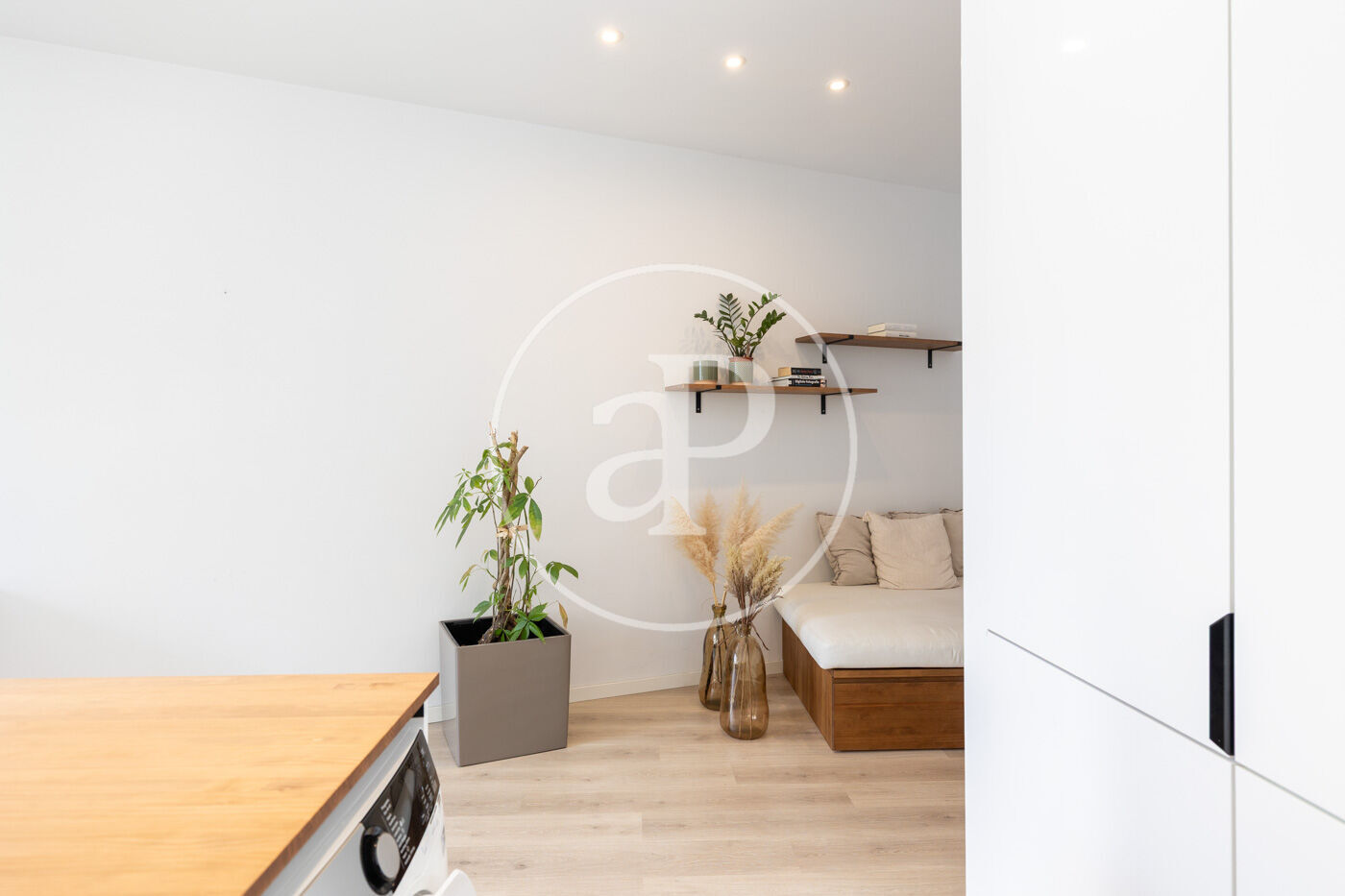 The sleeping area includes a large and very bright bedroom with a walk-in wardrobe and built-in closets, as well as a contemporary bathroom with a spacious shower and high-quality finishes.