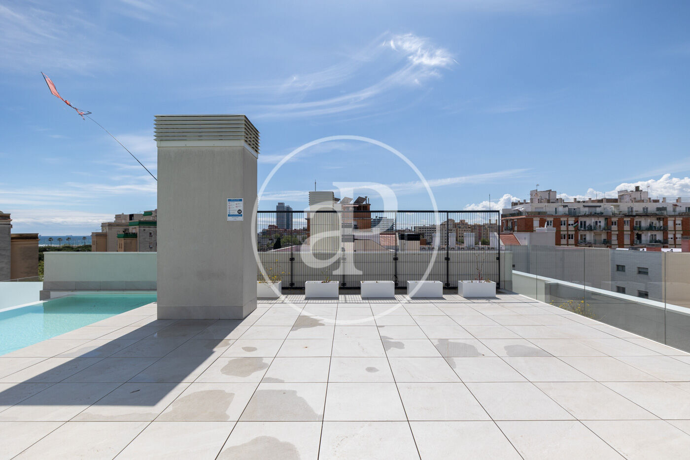 The building offers a spectacular communal rooftop terrace with a swimming pool, solarium, and sea views—an ideal space to unwind and enjoy the privileged surroundings.