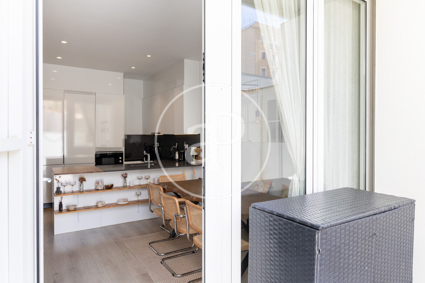 It features a spacious open-plan living and dining area with a fully equipped open kitchen, which opens through large windows onto a pleasant private terrace—perfect for relaxing and enjoying the Mediterranean climate all year round.