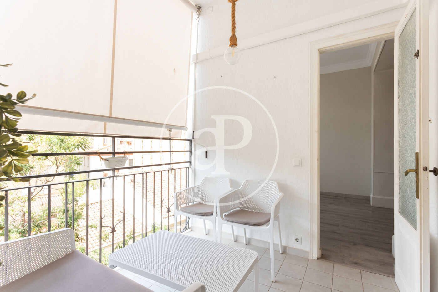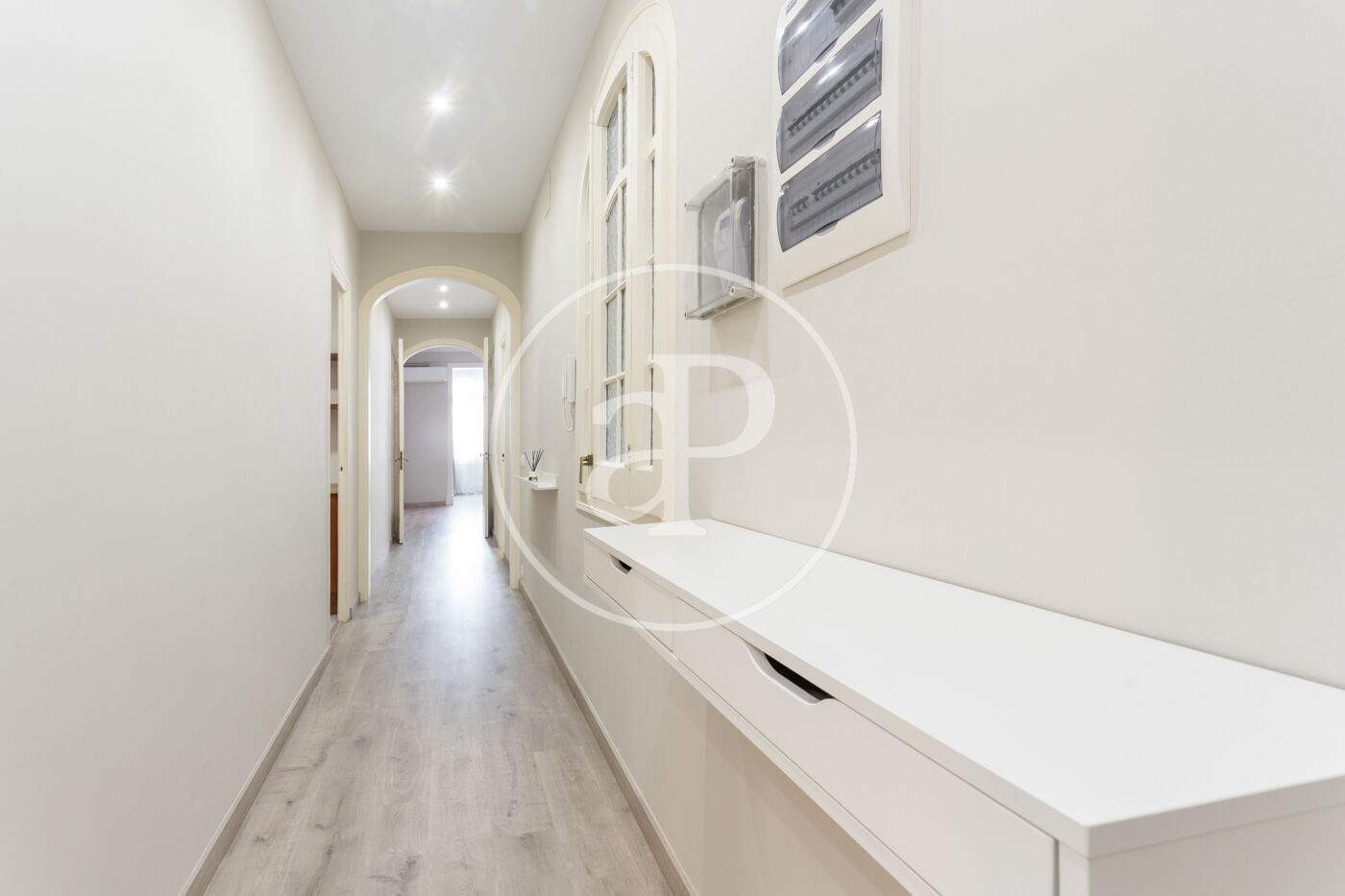 Refurbished and semi-furnished two-bedroom apartment on Balmes Street, next to Plaça Molina. Excellent public transport connections, including the Ferrocarrils de la Generalitat station at Plaça Molina.