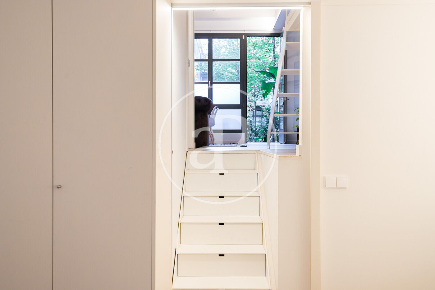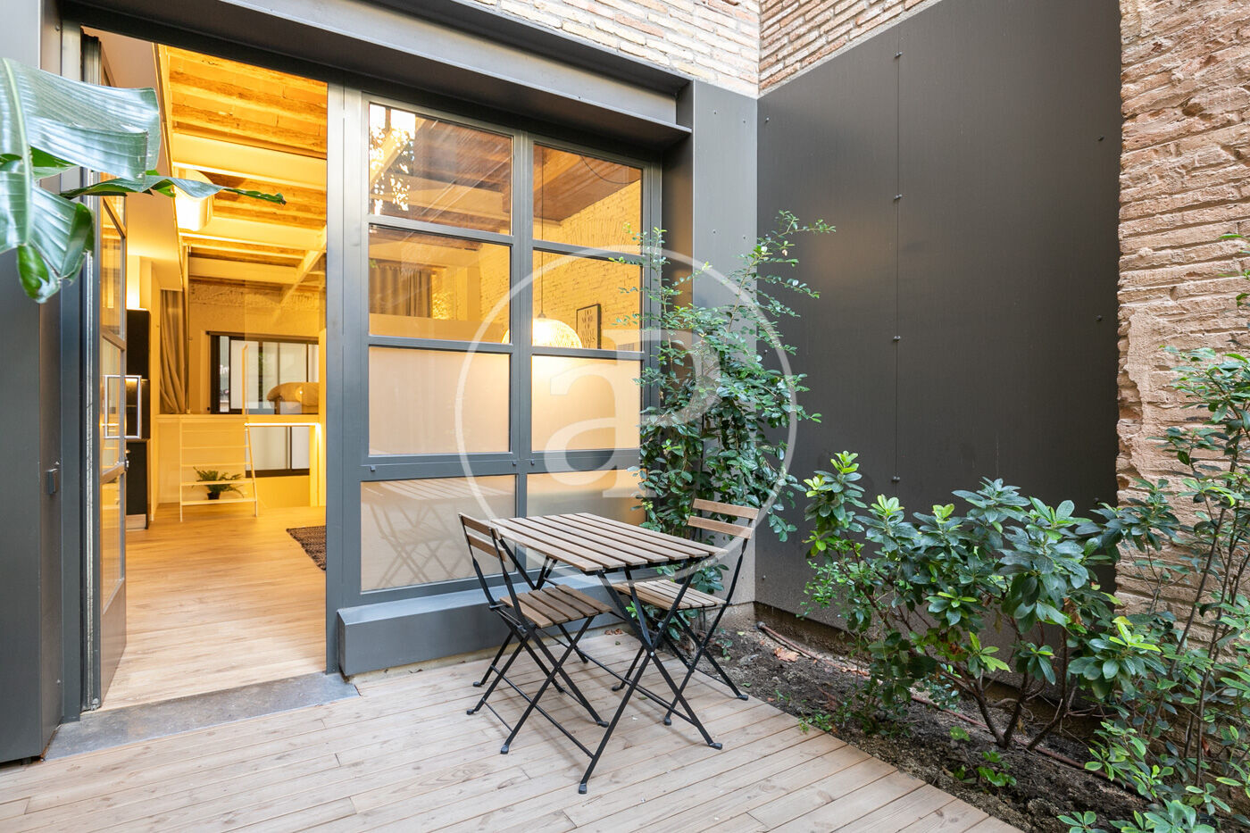 This is a designer home located in an oasis within the city, inside the former Casa-Fábrica Tous dating from the early 19th century in the Raval neighbourhood.