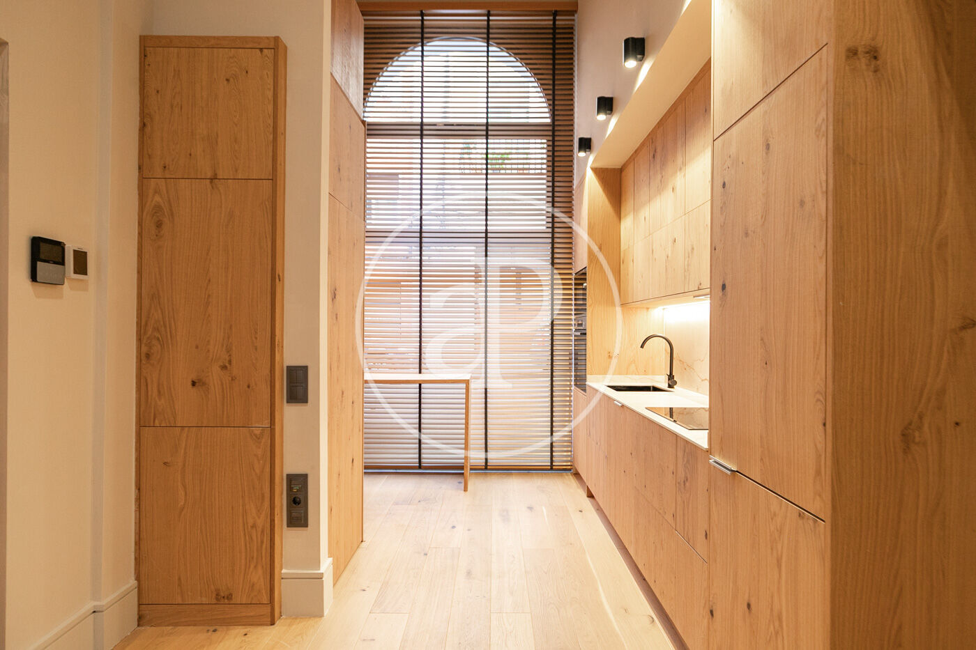The residences feature top-quality appliances, integrated into elegant floor-to-ceiling cabinetry in beige or anthracite tones. They have been carefully designed with oak details and black calacatta or wood countertops, adding sophistication and style to the contemporary design.