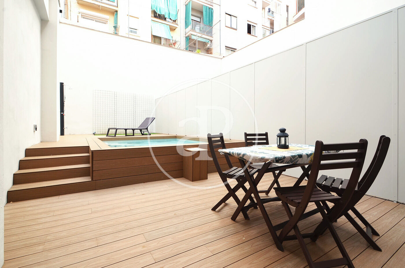 Two duplex apartments with a private garden and swimming pool of approximately 4mx3mx2m still available. Each Apartment has a constructed surface area of aprox 94 m² and is distributed as follows: on the ground floor, a living-dining room with an open kitchen and access to the garden, one bedroom and a bathroom. On the upper floor is the main suite overlooking the garden, with a walk-in wardrobe and en suite bathroom.
