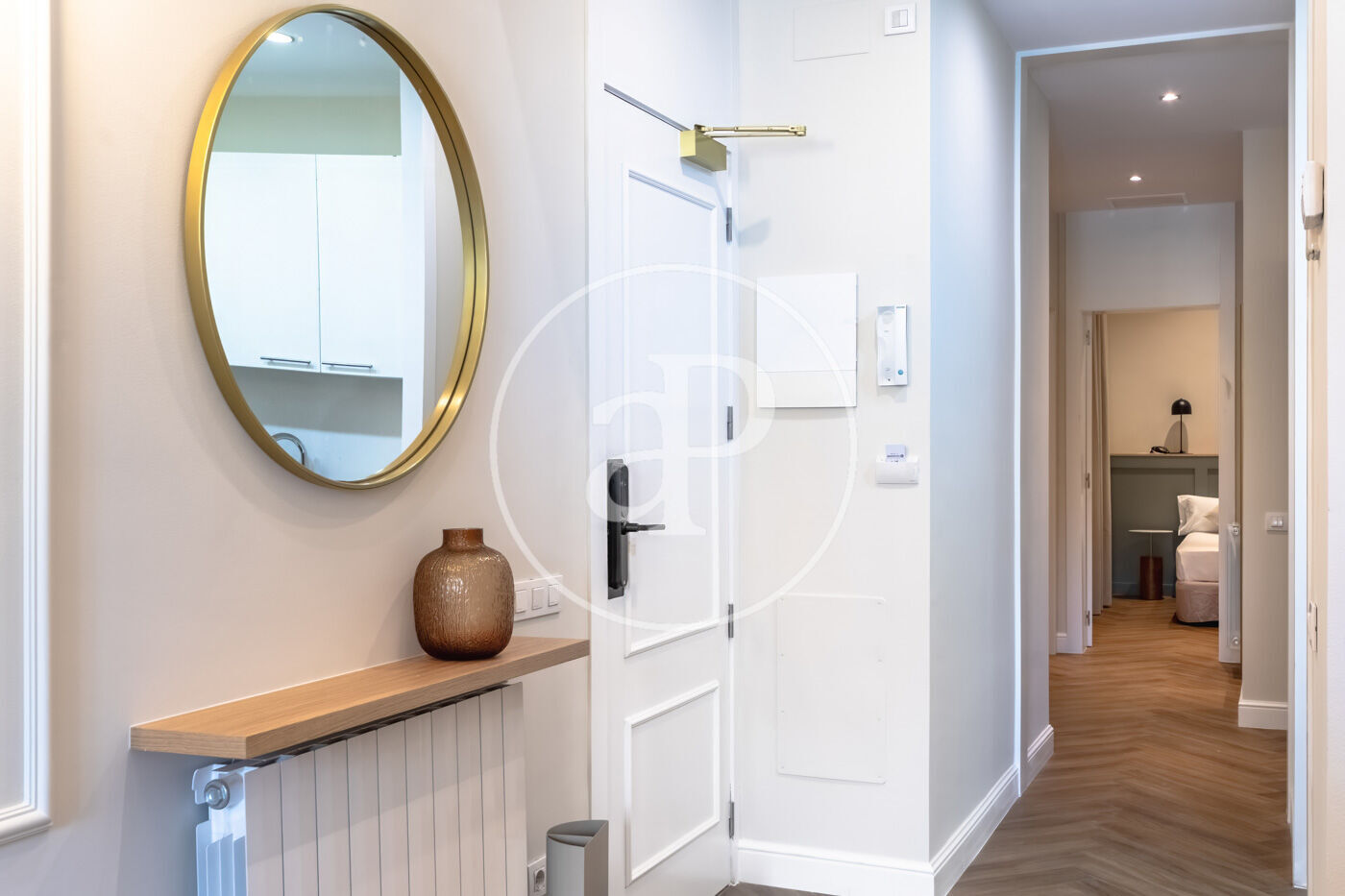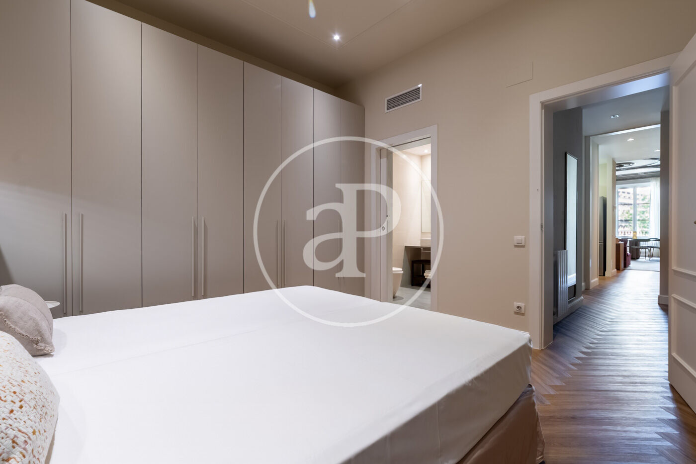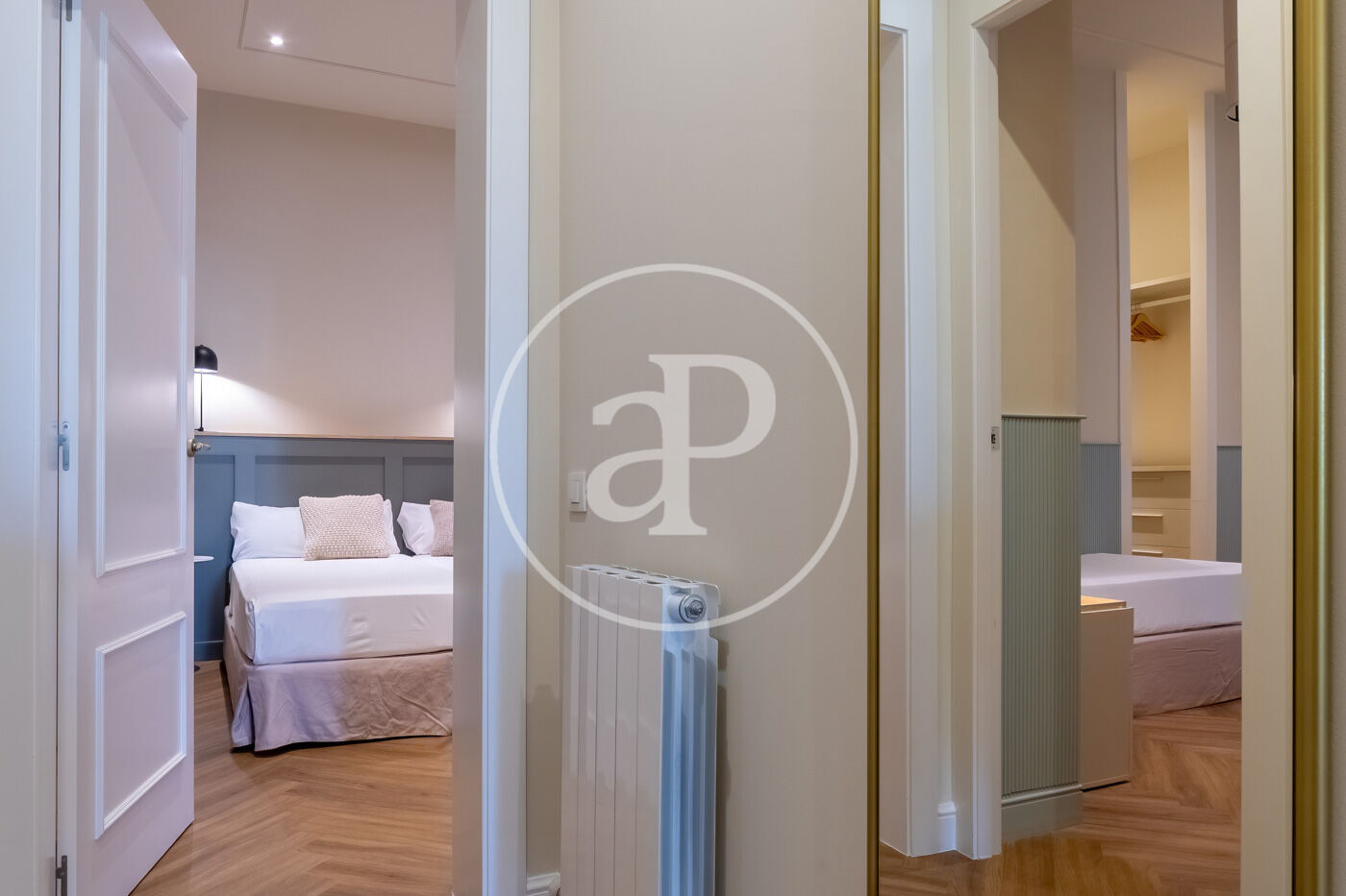 The interiors preserve the charm of the original building with architectural details such as moldings, herringbone parquet floors, and fireplace frames, all integrated with modern finishes of the highest quality. Each room reflects a perfect harmony between historic character and contemporary comfort.