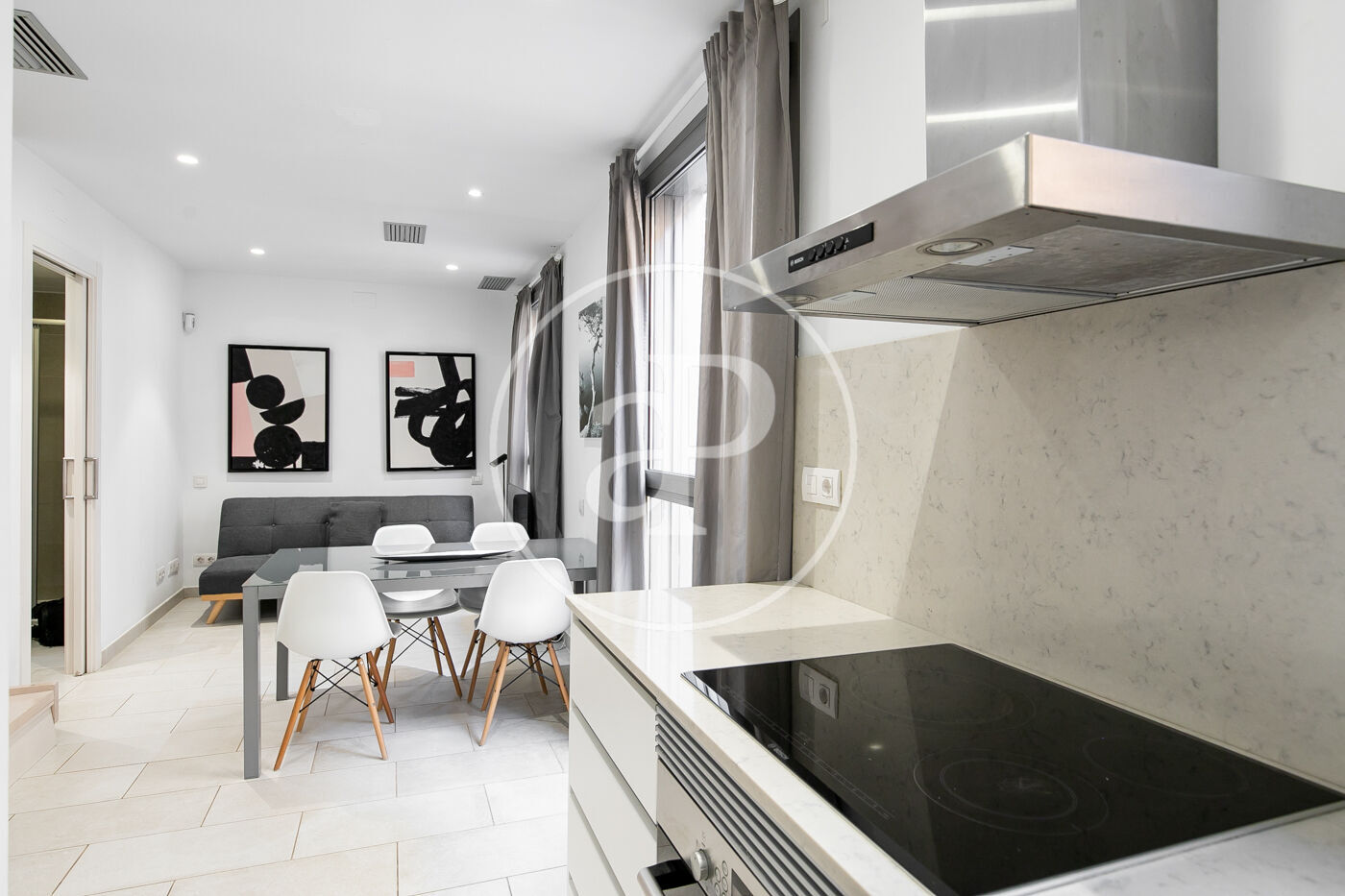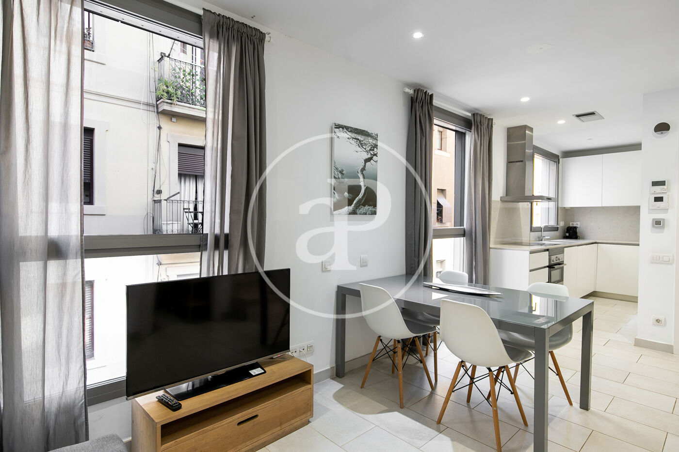 In the heart of Barceloneta and just steps from the beach, we find this furnished flat featuring a shared rooftop terrace. It is a fully exterior flat with abundant natural light.