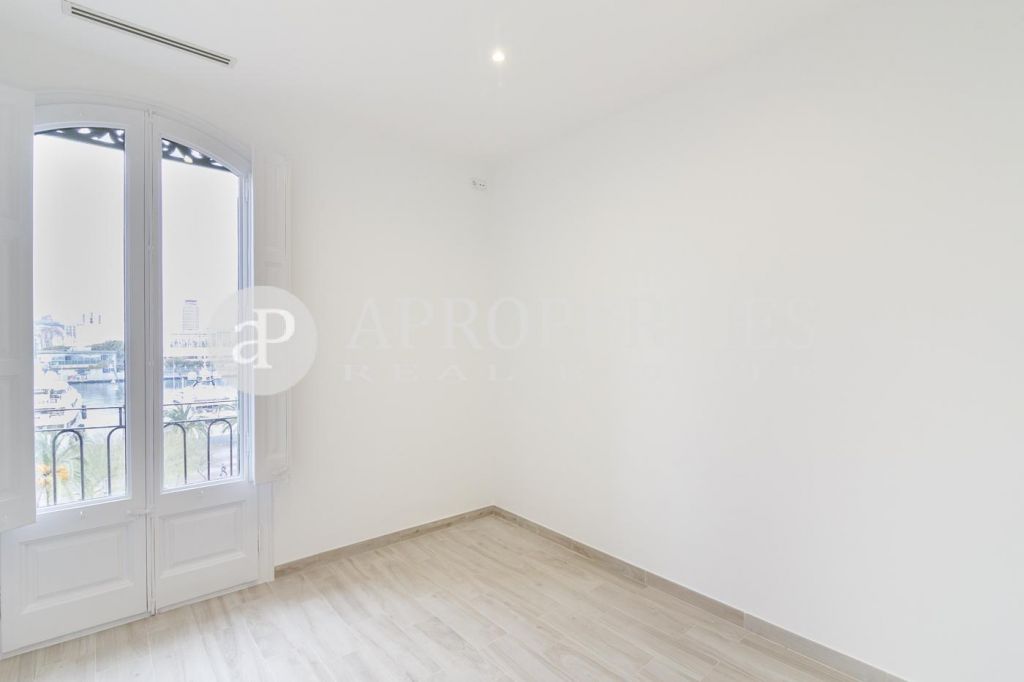 Ideally located on a high floor of an elegant classical building, next to the port of Barceloneta, in a privileged location on the same Passeig Joan de Borbó, we find a bright brand new apartment of approximately 70sqm with sea views. The flat consists of a living room with access to a nice terrace, a kitchen with all appliances and three bedrooms, one double and exterior with views and the two others individual and interior and a bathroom with shower. The building has a lift. Available from February 5th, and for long-term contract.