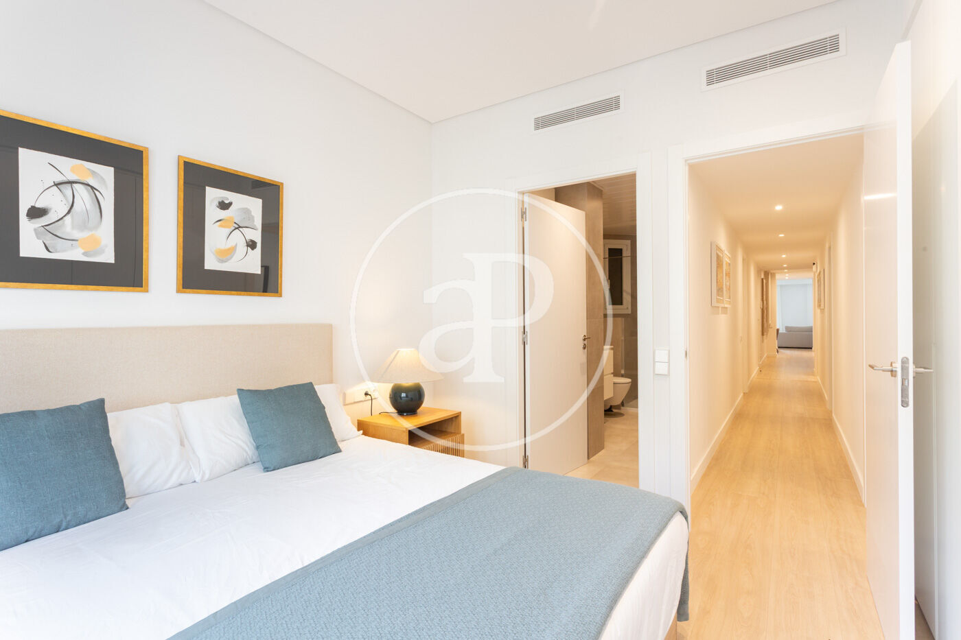 The night area includes three bedrooms and two full bathrooms, one of them en suite, with modern and elegant finishes.