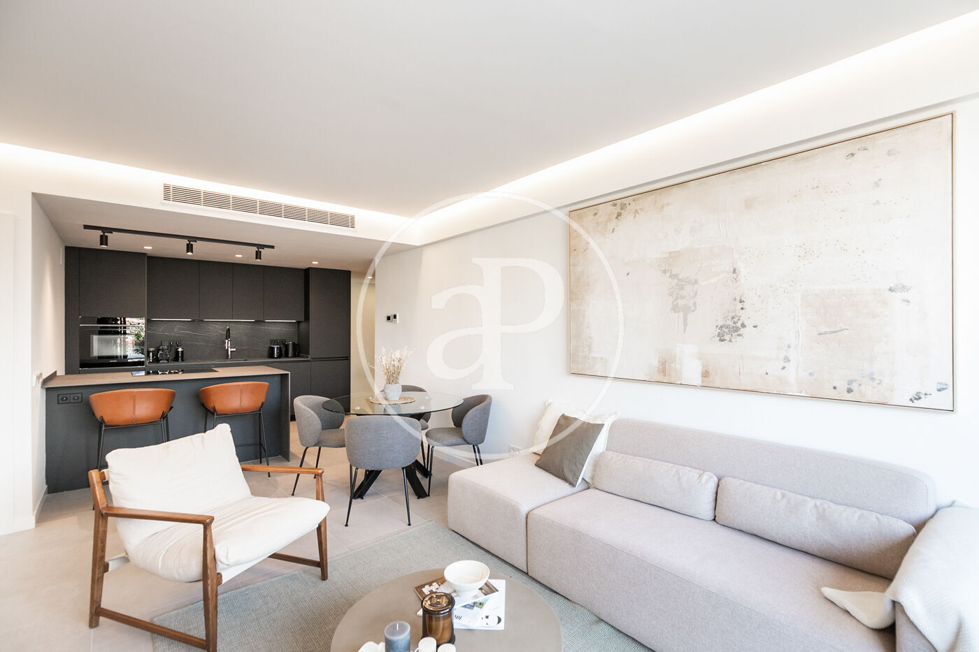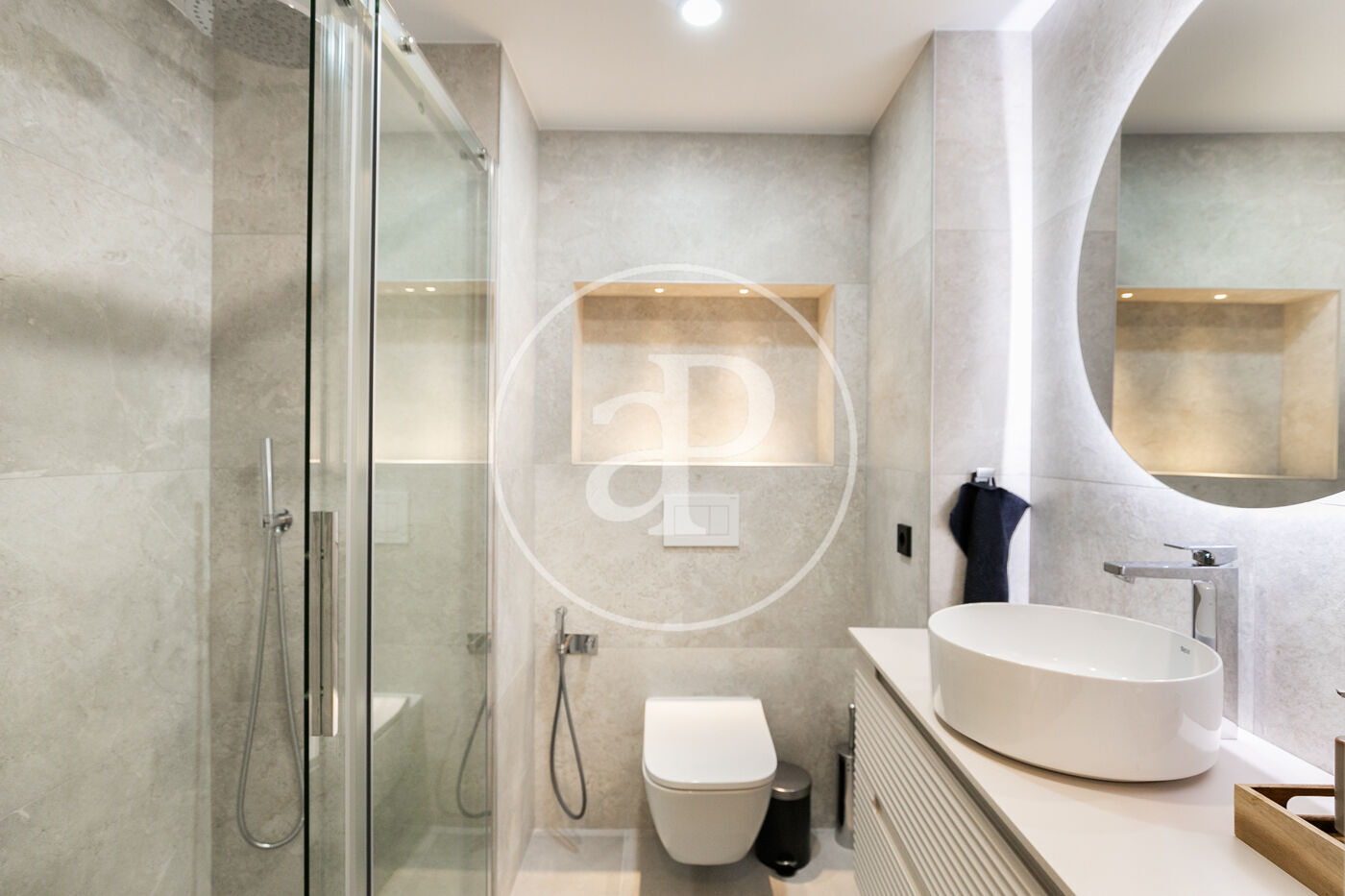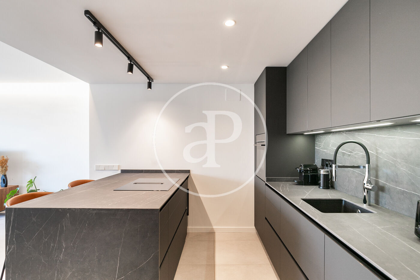 Exclusive fully renovated and furnished property, located on the 9th real floor of a 1970 building in impeccable condition. Includes a parking space in the same building.