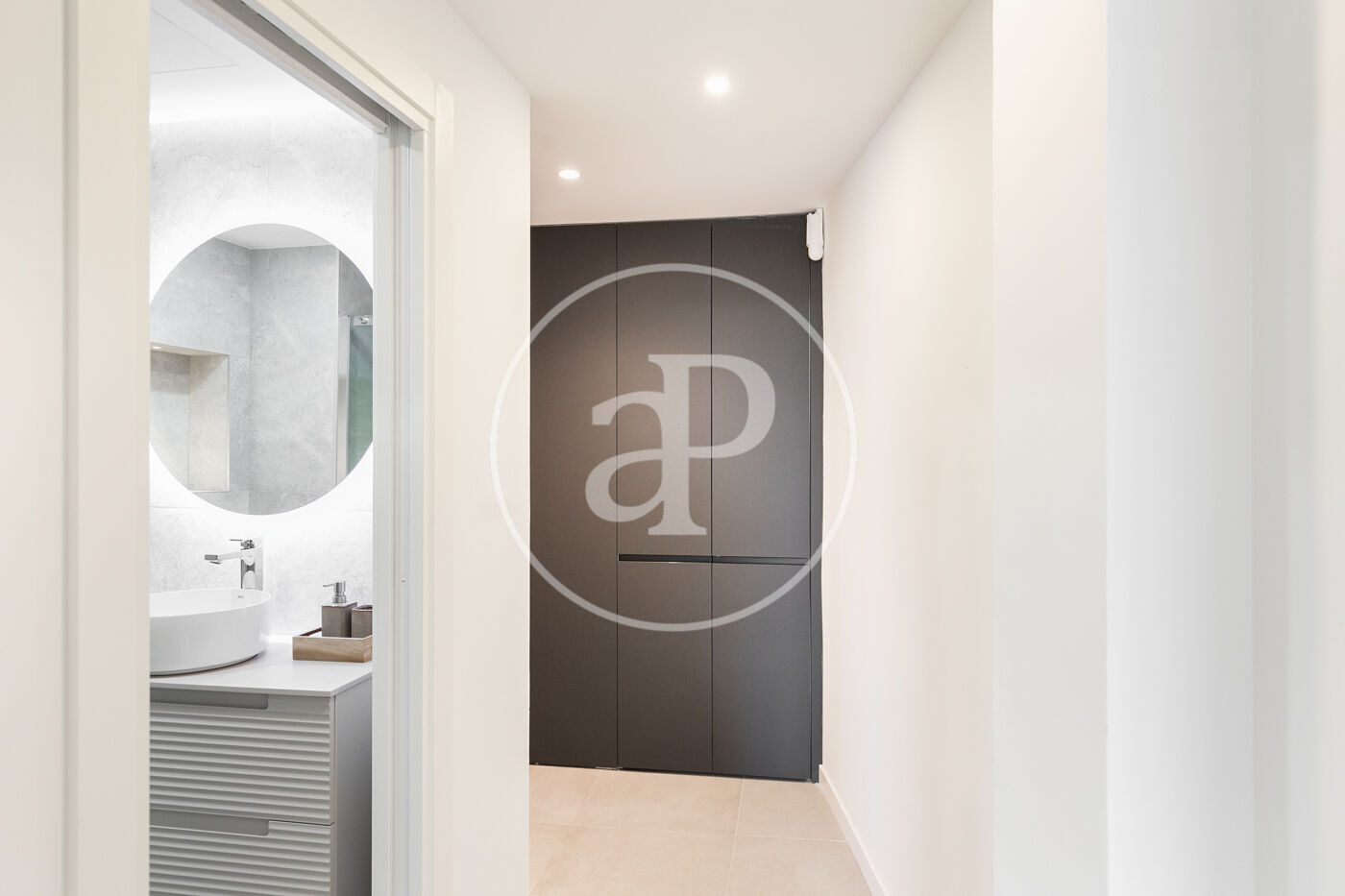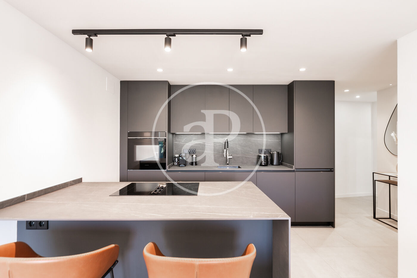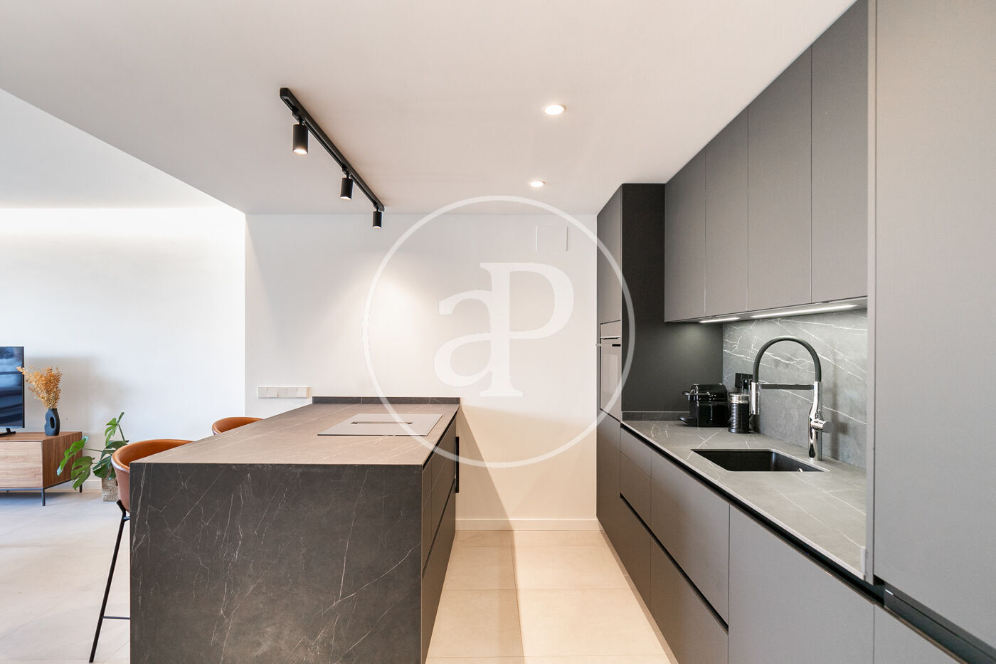 Exclusive fully renovated and furnished property, located on the 9th real floor of a 1970 building in impeccable condition. Includes a parking space in the same building.