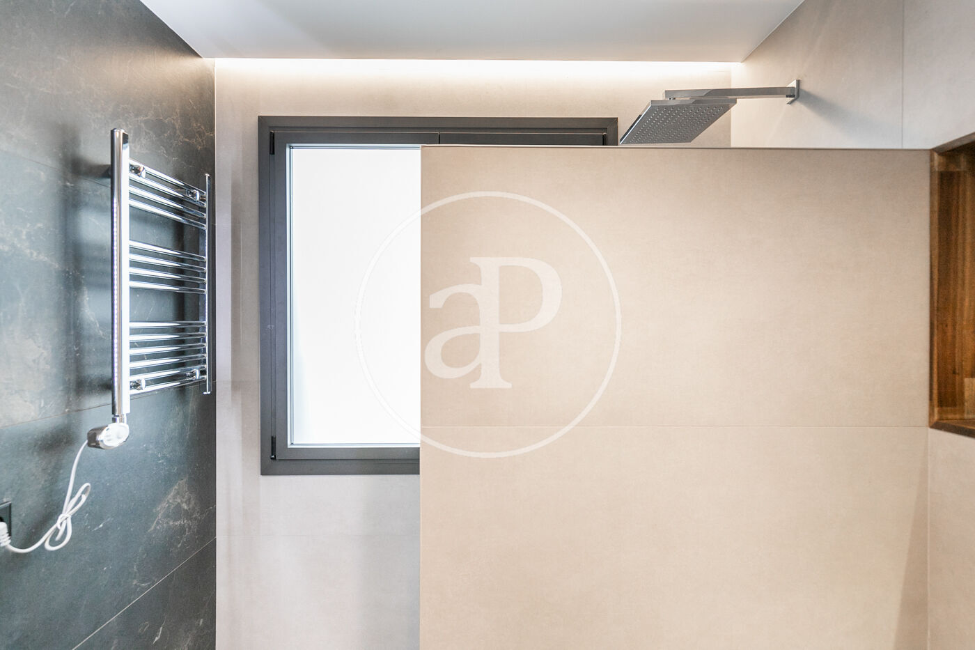 The property is distributed as follows: a kitchen equipped with SIEMENS appliances and a water softener, open to a large living-dining room that leads to the first terrace, offering views of the iconic Sagrada Familia and Tibidabo. Additionally, there is a double bedroom with built-in wardrobes, a full bathroom with a shower, and a master suite with an en-suite bathroom, a walk-in closet, and access to the second terrace, which offers views of both Sagrada Familia and the sea. The main terrace, perfect for enjoying the outdoors, includes a summer kitchen.