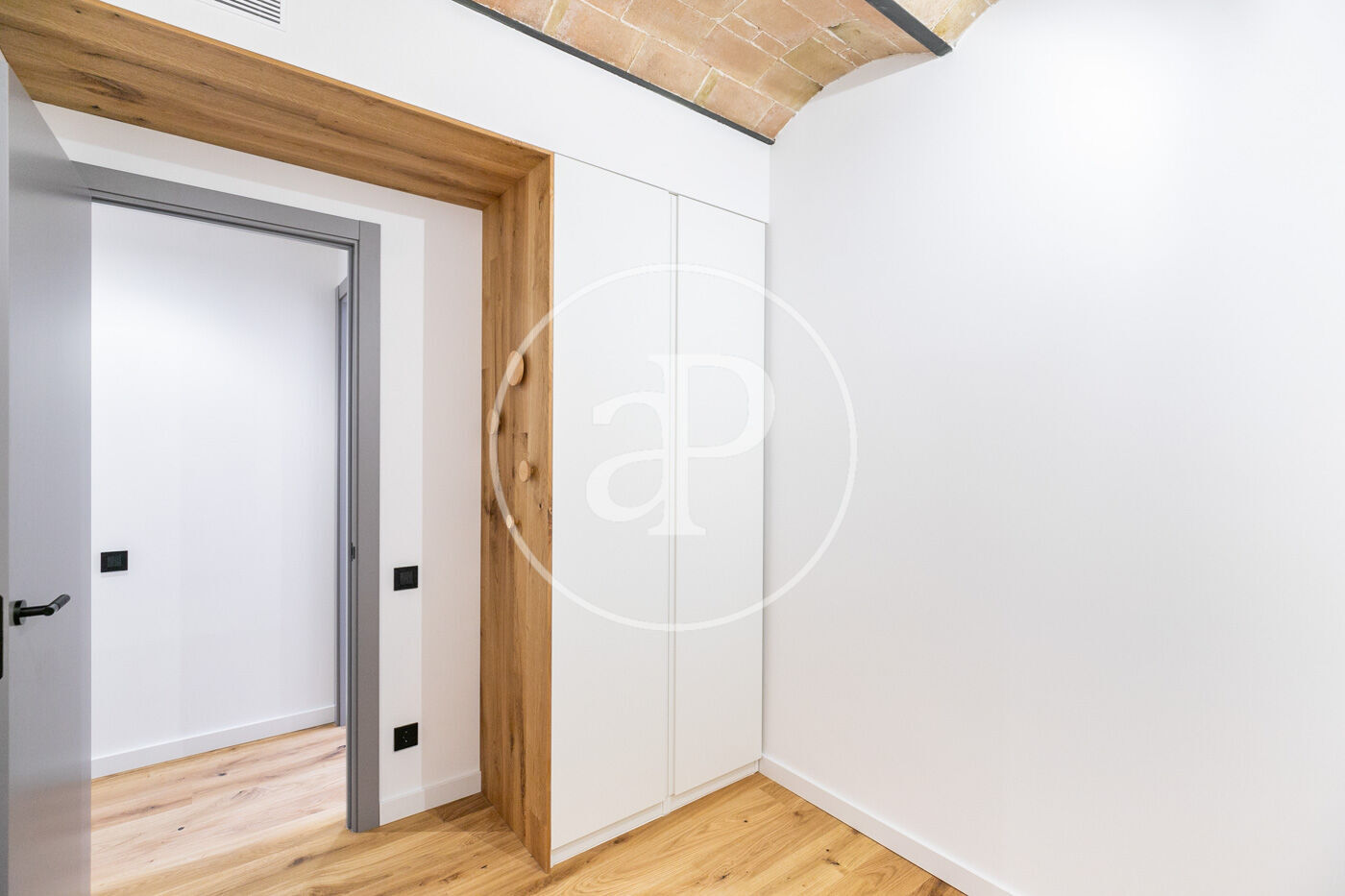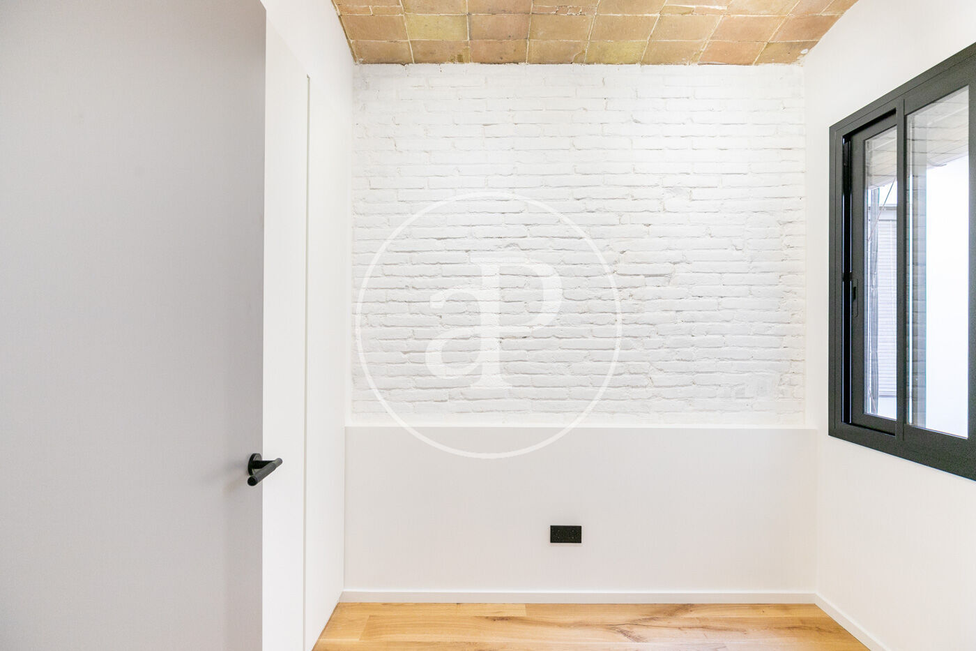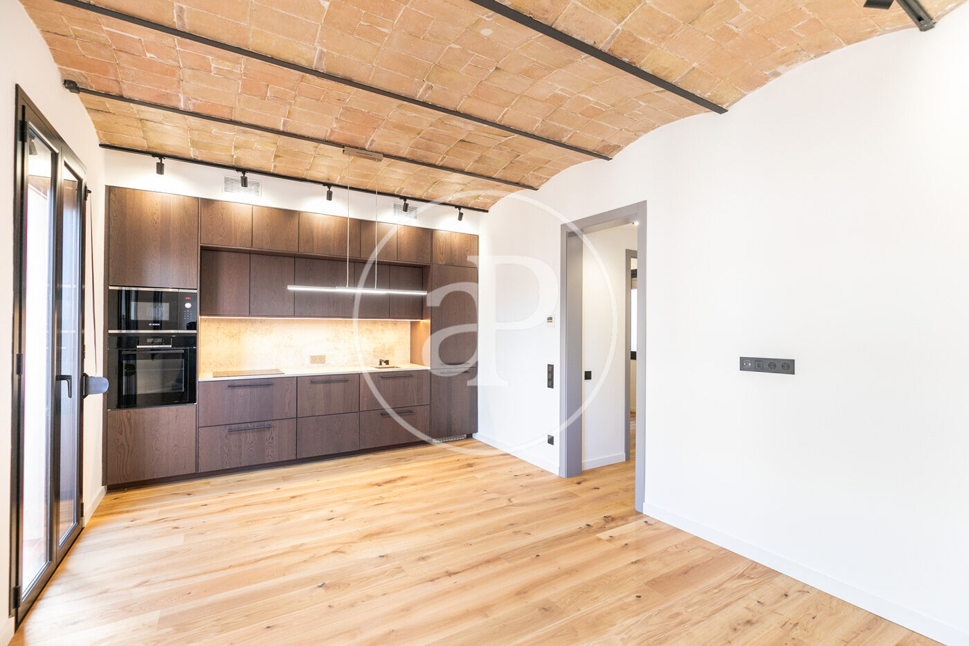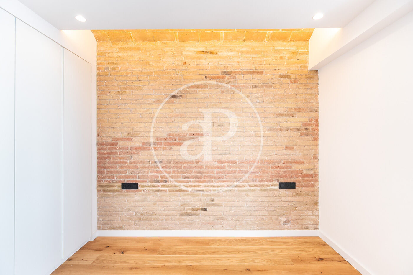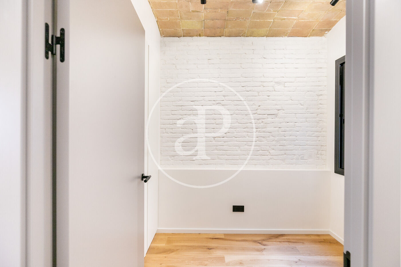 The entire 76m2 property has been completely refurbished, conserving original elements such as the Catalan vault, recovering the exposed brick walls and all of this combined with modern, high quality materials such as the natural wood floors, the enclosures and the hot/cold ducted air-conditioning. All rooms will have built-in wardrobes. The kitchen is fully fitted and equipped.
