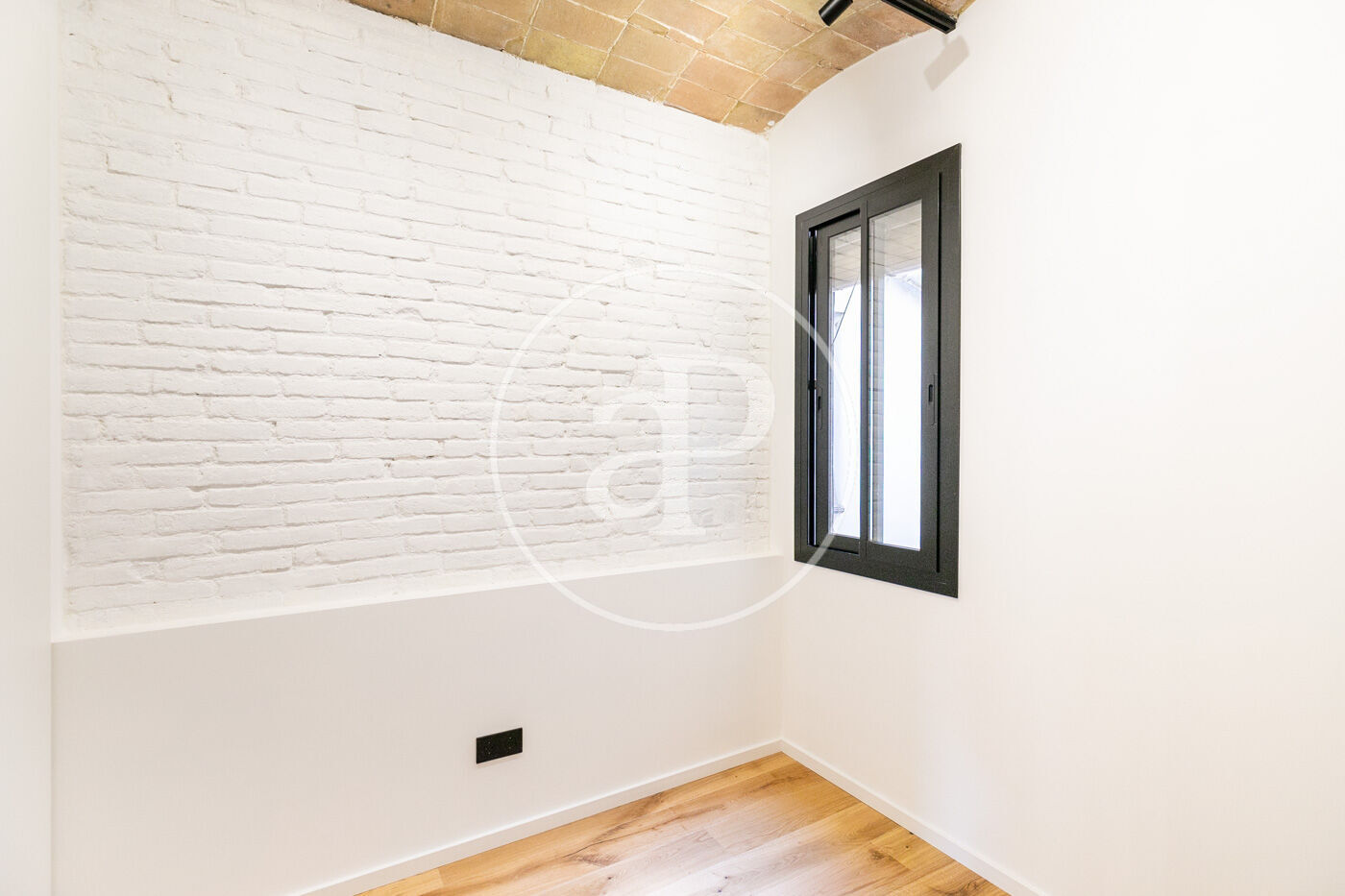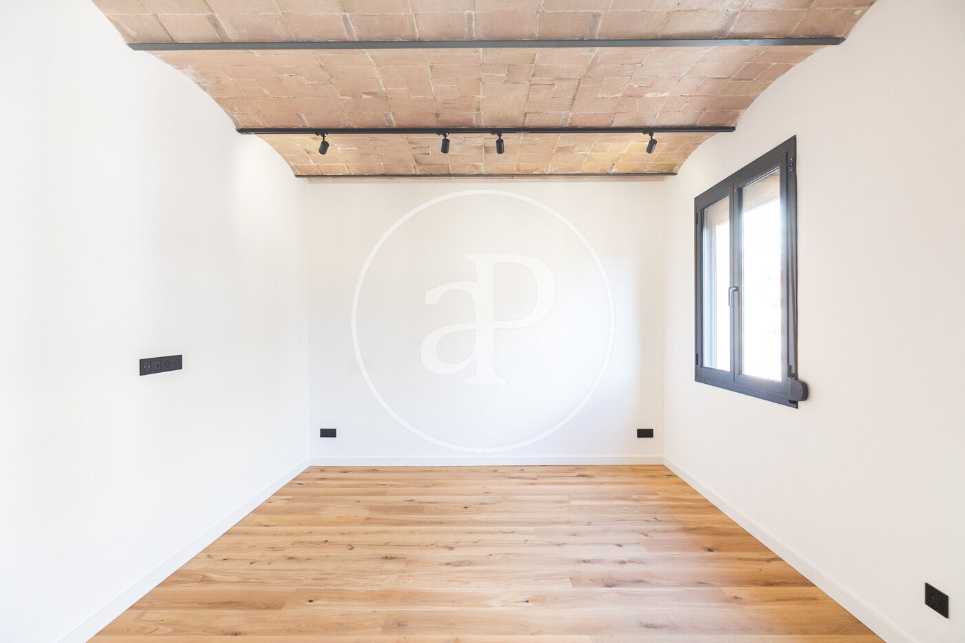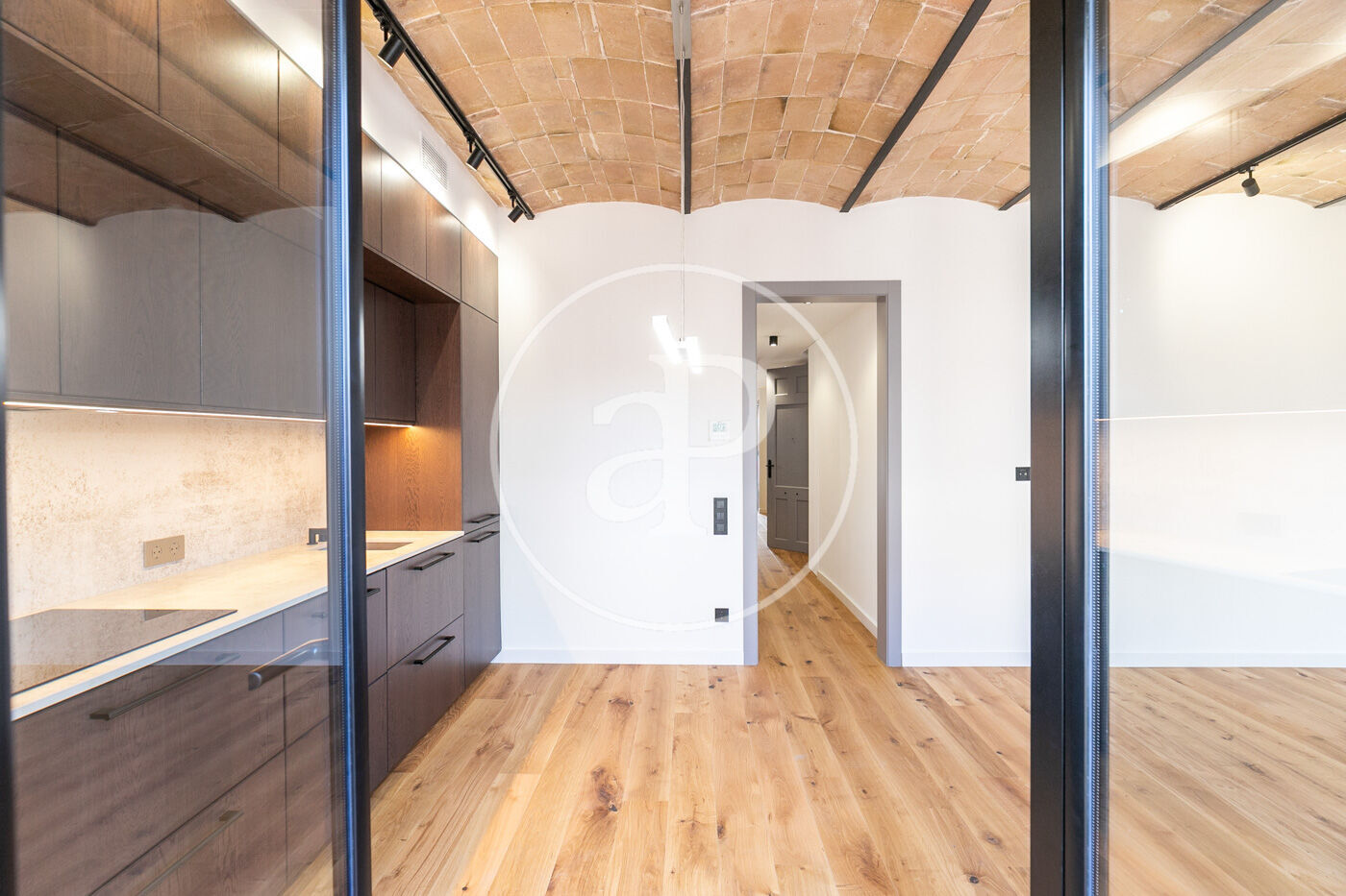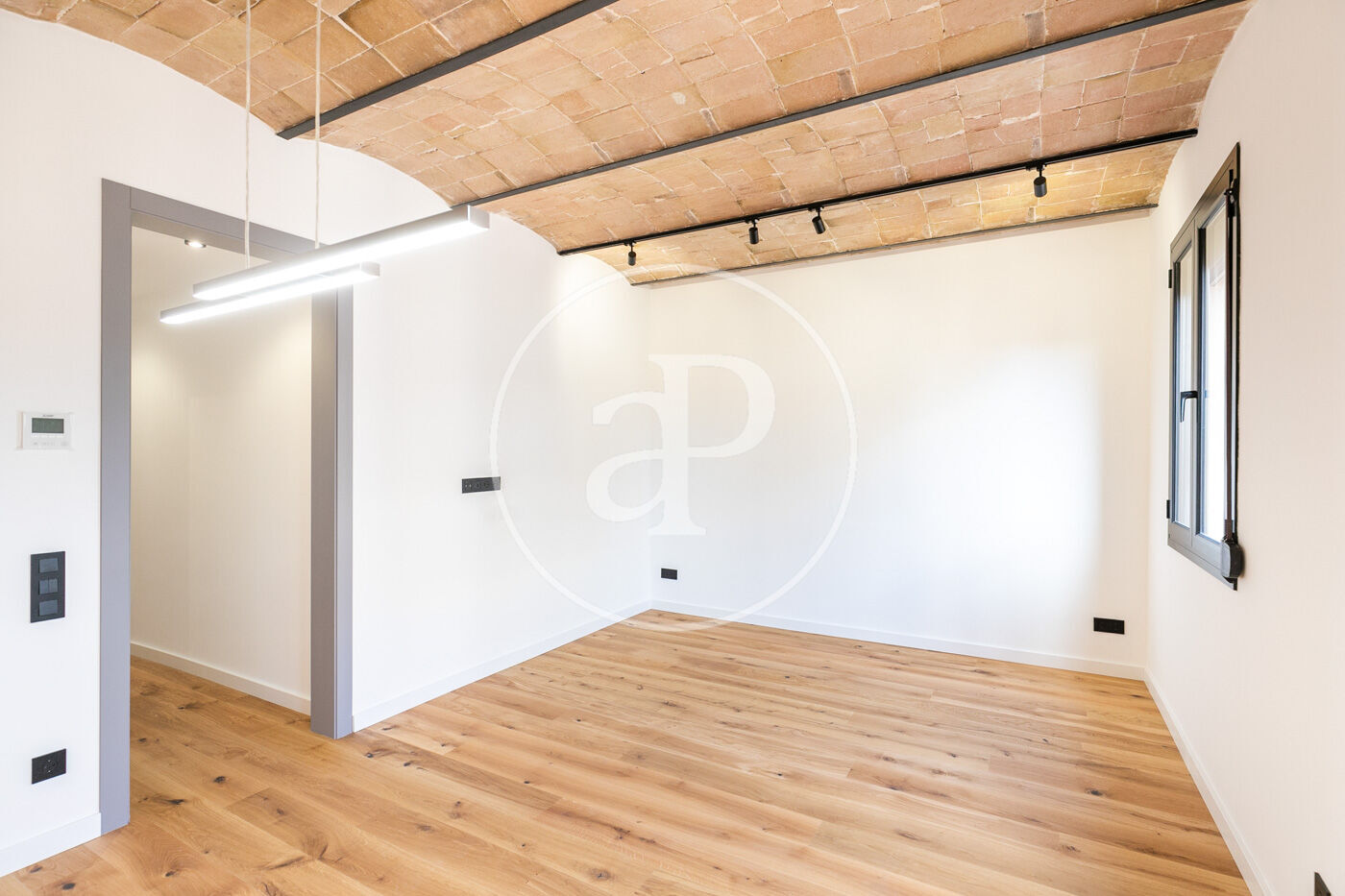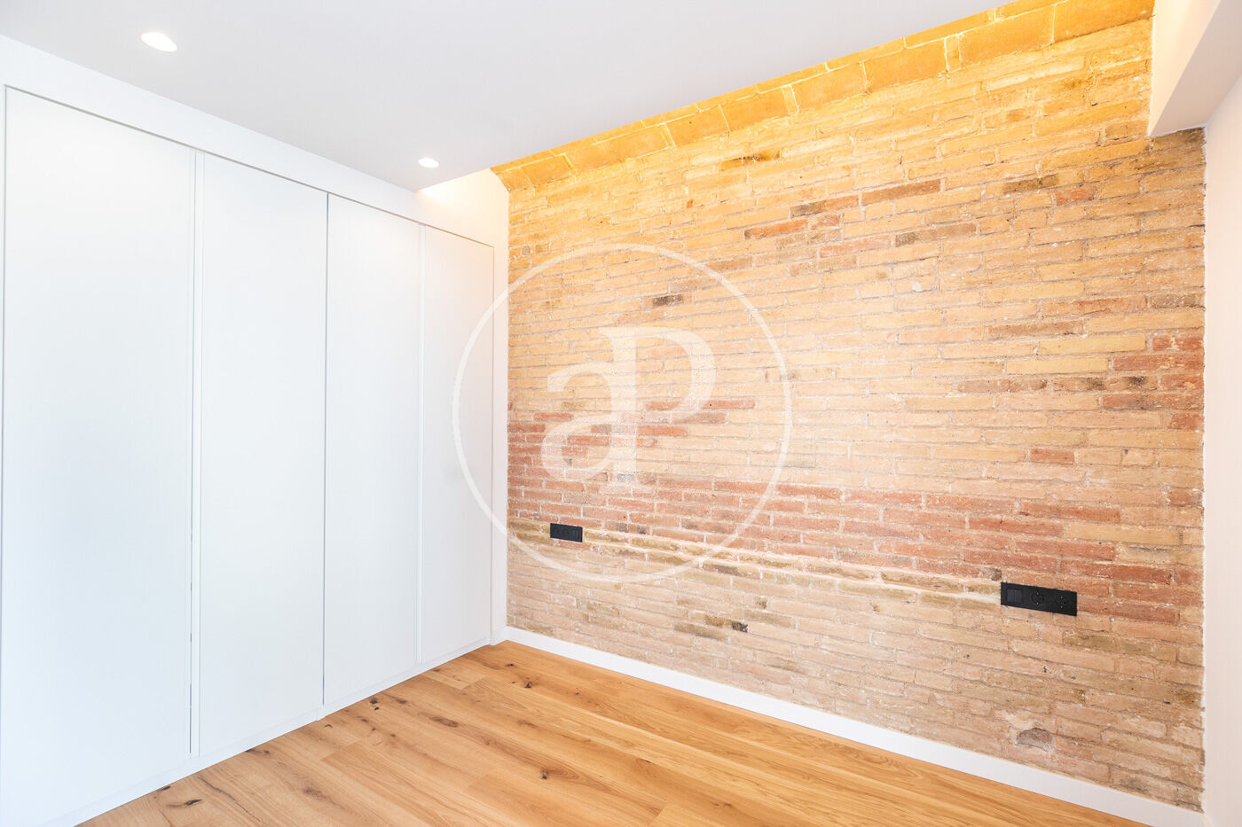The entire 76m2 property has been completely refurbished, conserving original elements such as the Catalan vault, recovering the exposed brick walls and all of this combined with modern, high quality materials such as the natural wood floors, the enclosures and the hot/cold ducted air-conditioning. All rooms will have built-in wardrobes. The kitchen is fully fitted and equipped.