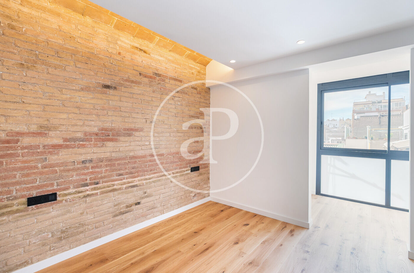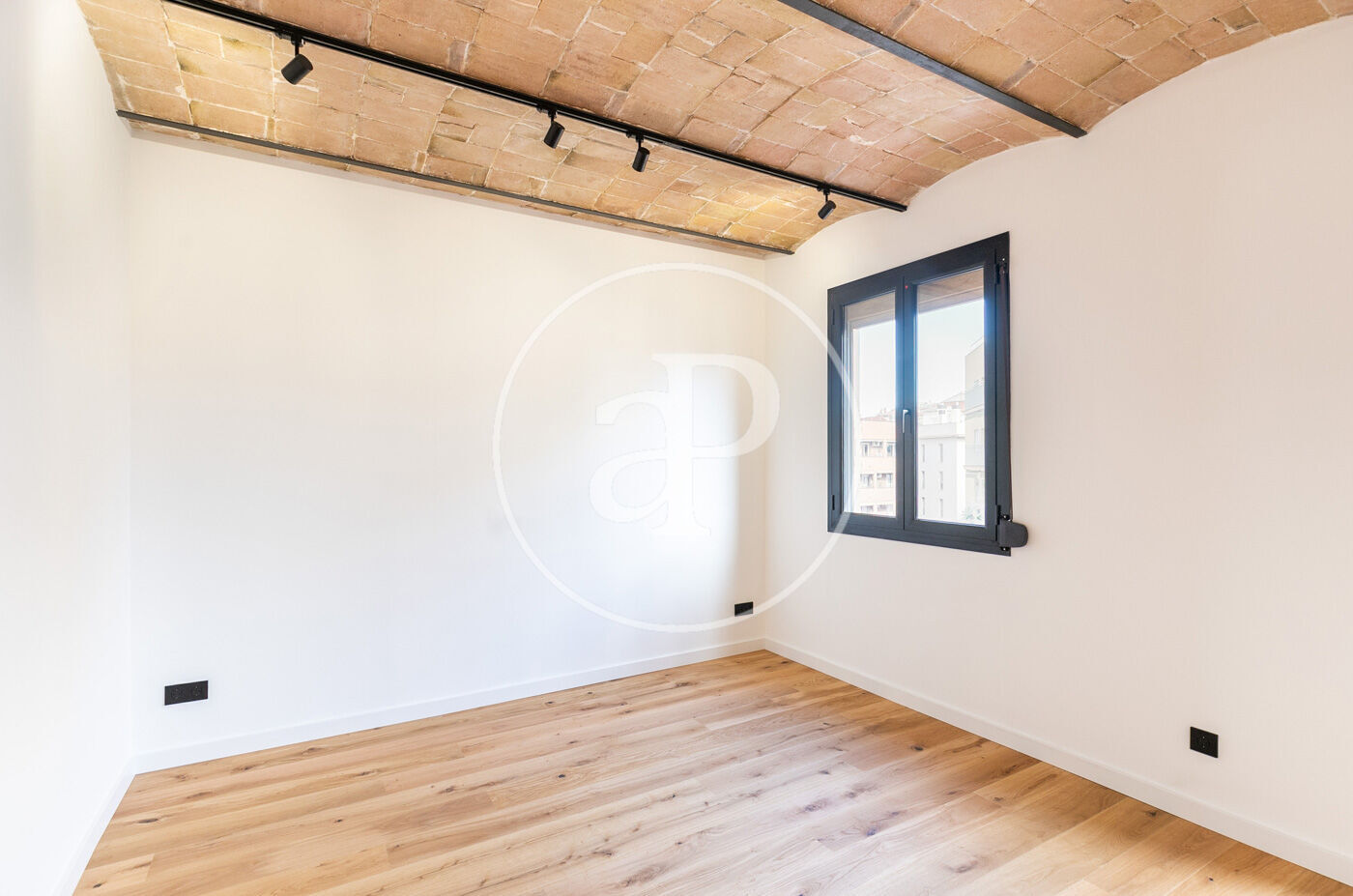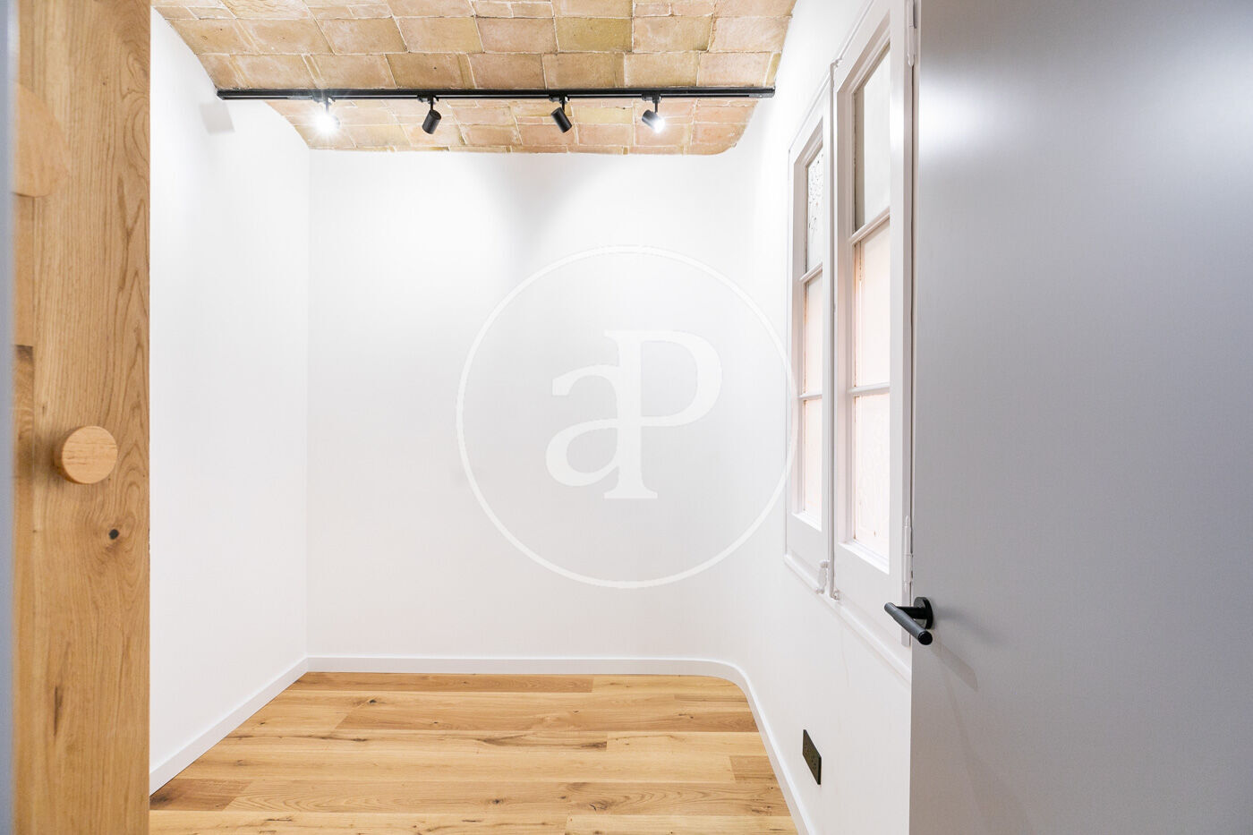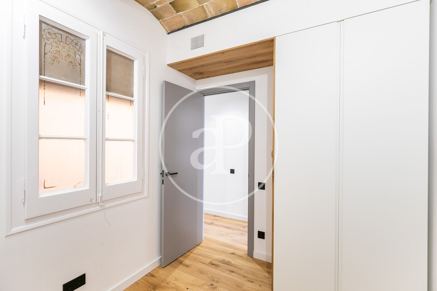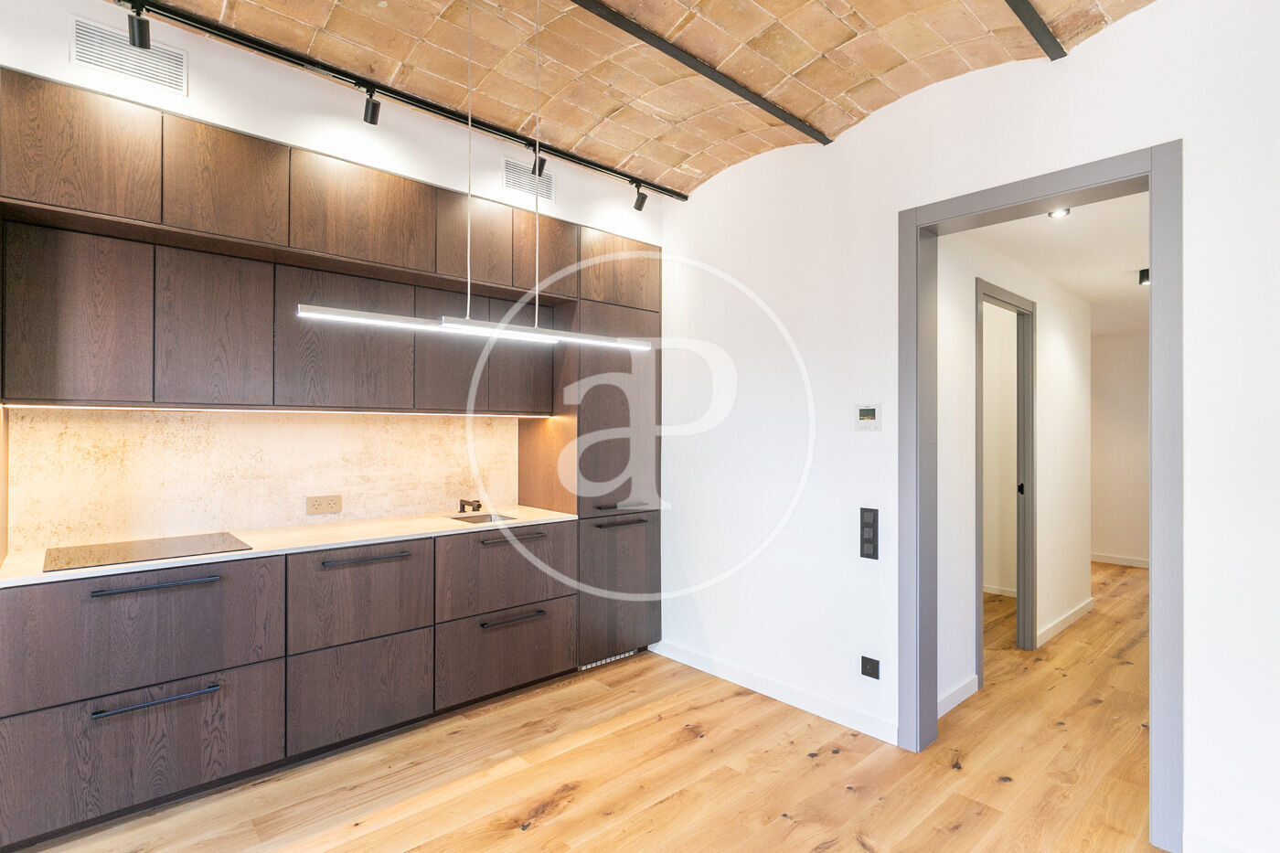 The entire 76m2 property has been completely refurbished, conserving original elements such as the Catalan vault, recovering the exposed brick walls and all of this combined with modern, high quality materials such as the natural wood floors, the enclosures and the hot/cold ducted air-conditioning. All rooms will have built-in wardrobes. The kitchen is fully fitted and equipped.