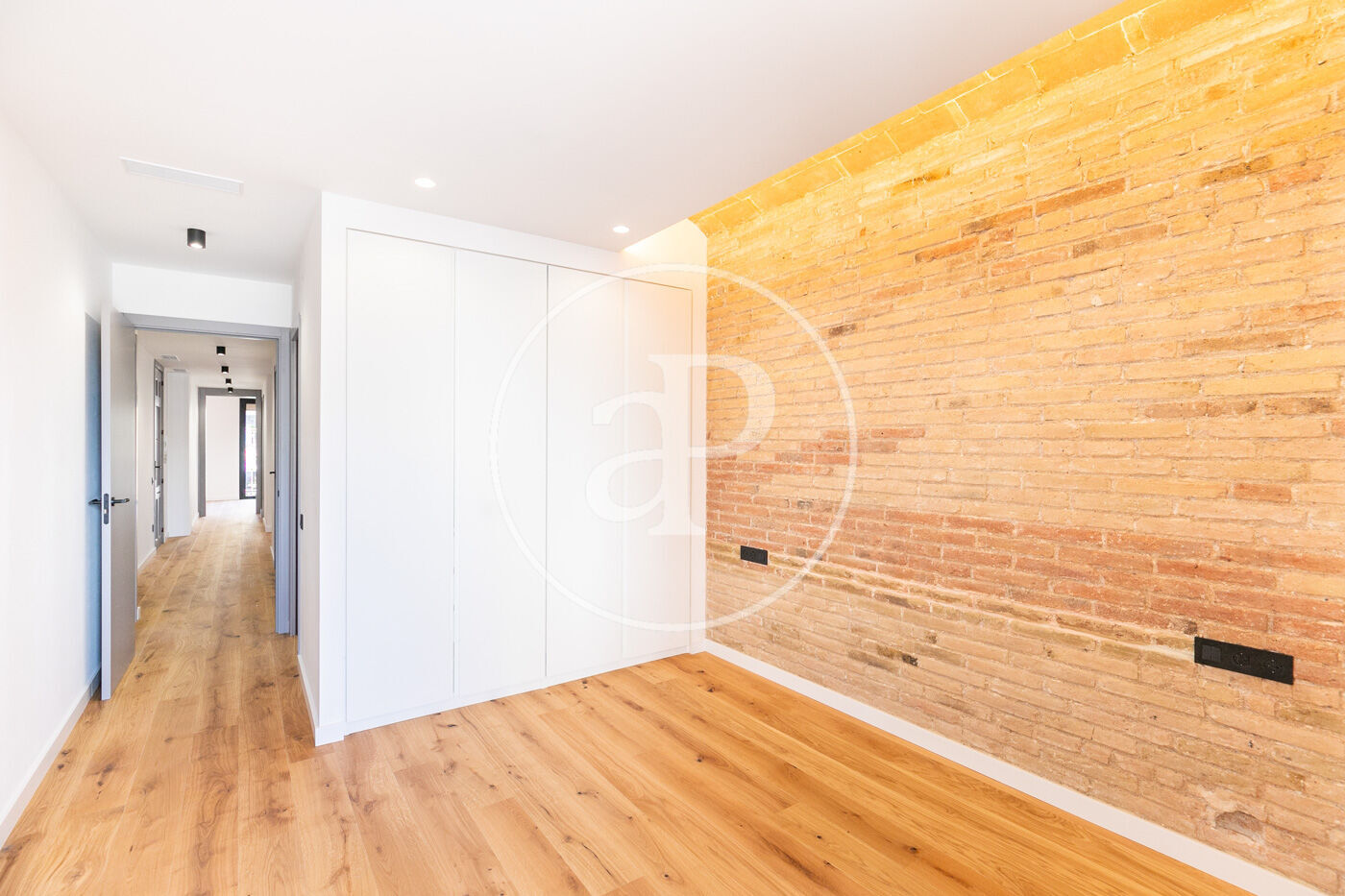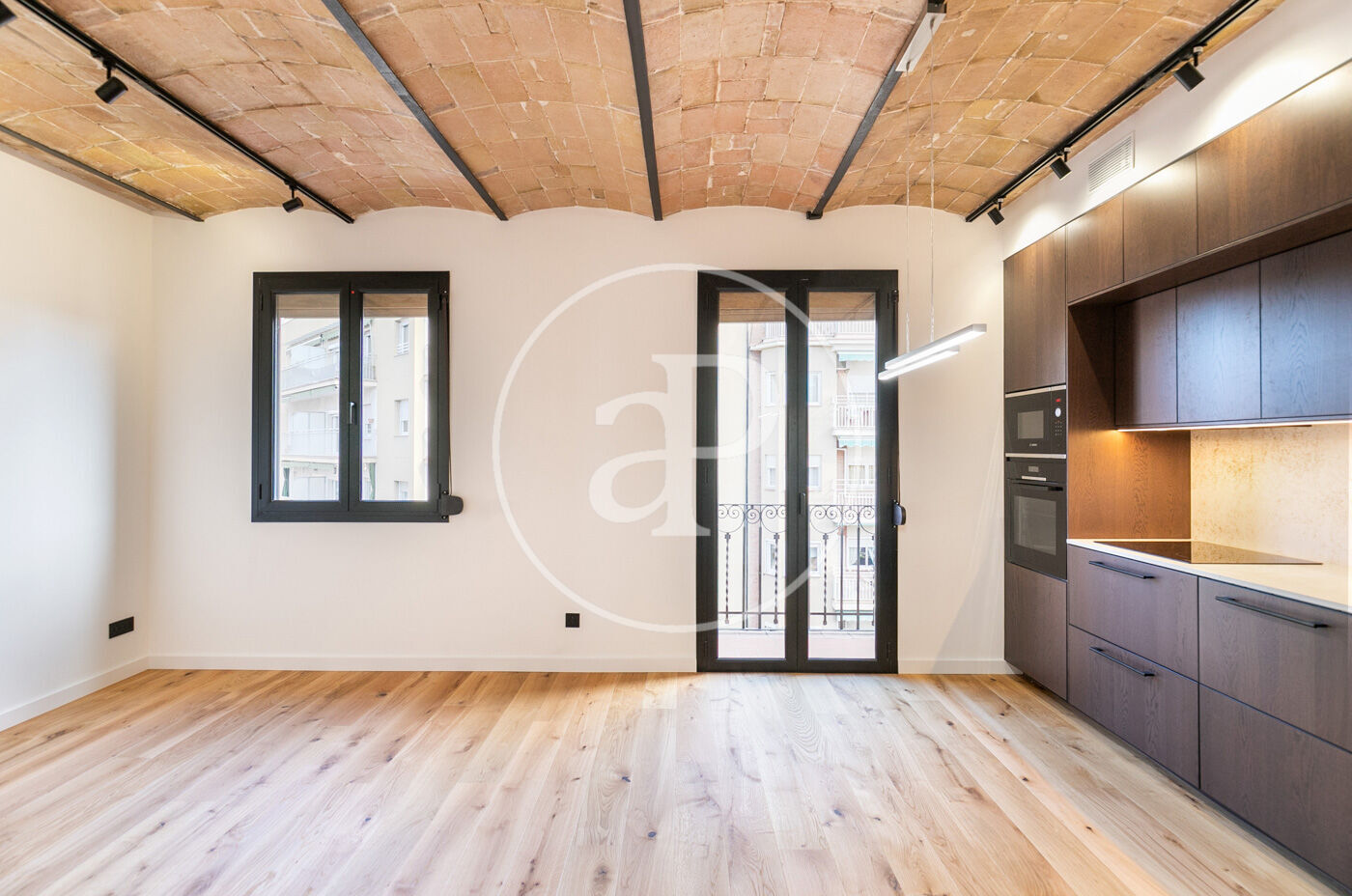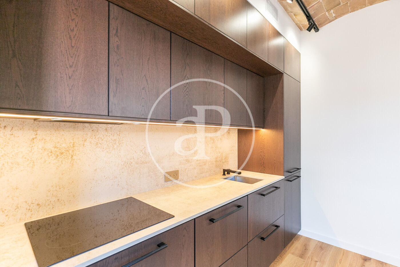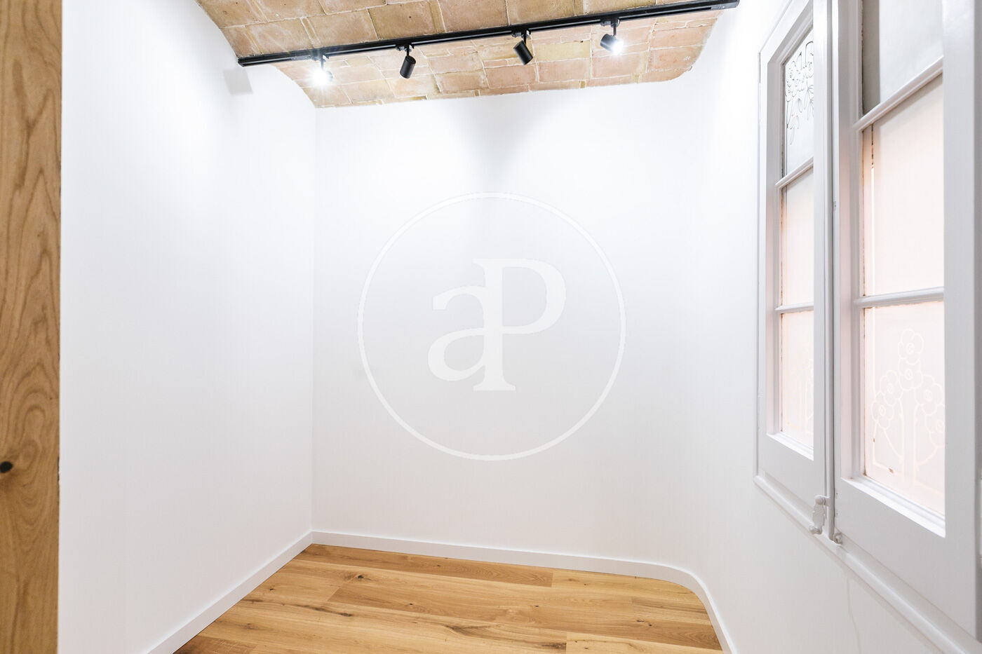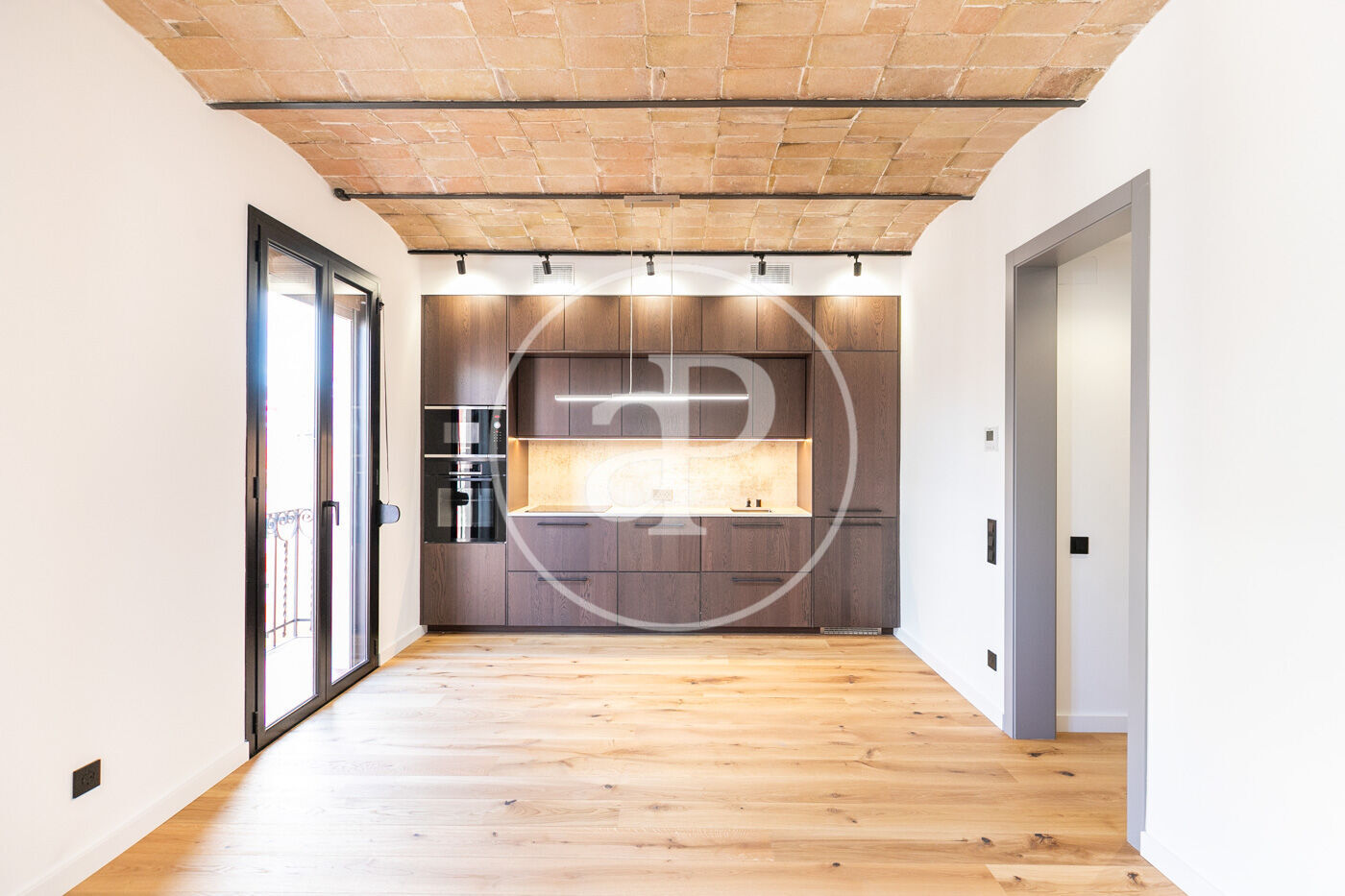 The entire 76m2 property has been completely refurbished, conserving original elements such as the Catalan vault, recovering the exposed brick walls and all of this combined with modern, high quality materials such as the natural wood floors, the enclosures and the hot/cold ducted air-conditioning. All rooms will have built-in wardrobes. The kitchen is fully fitted and equipped.