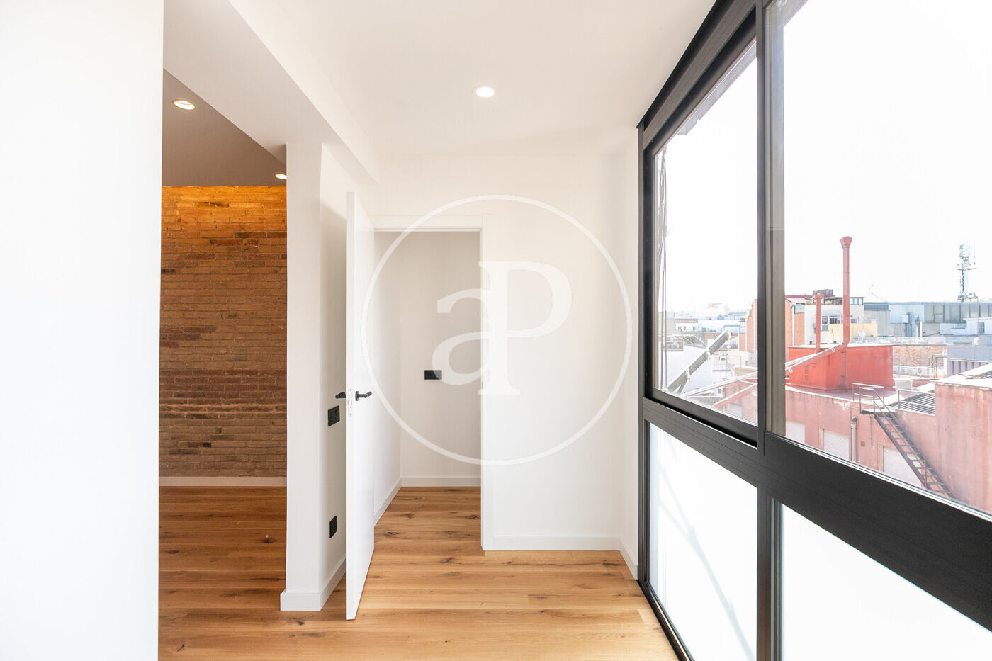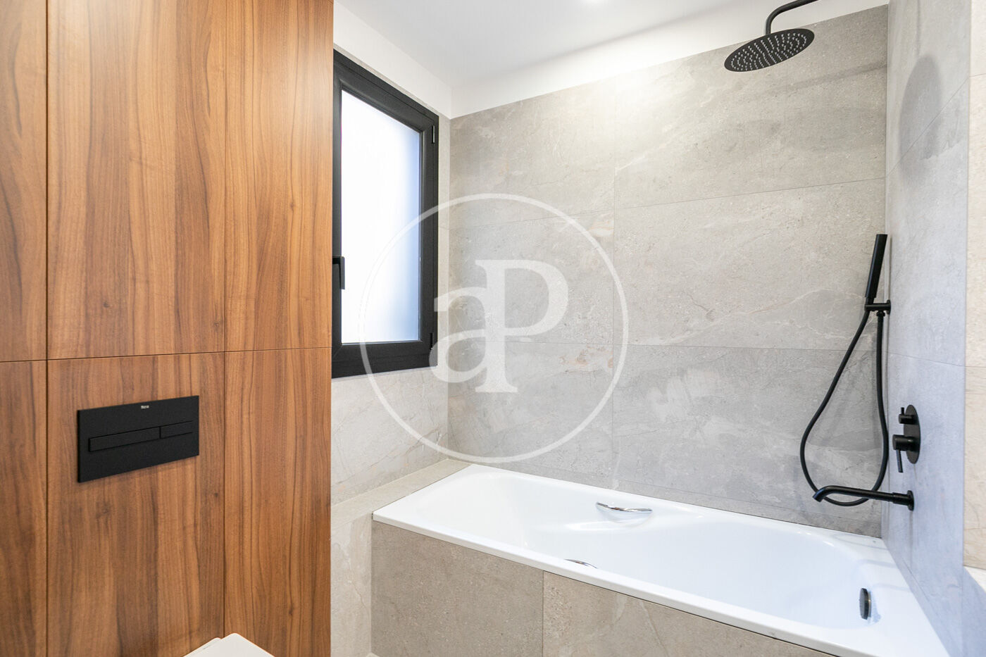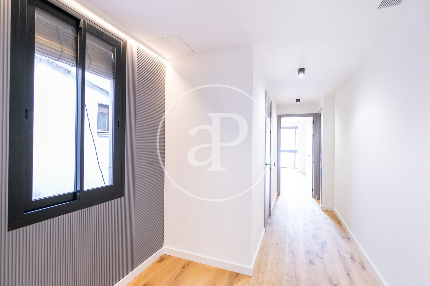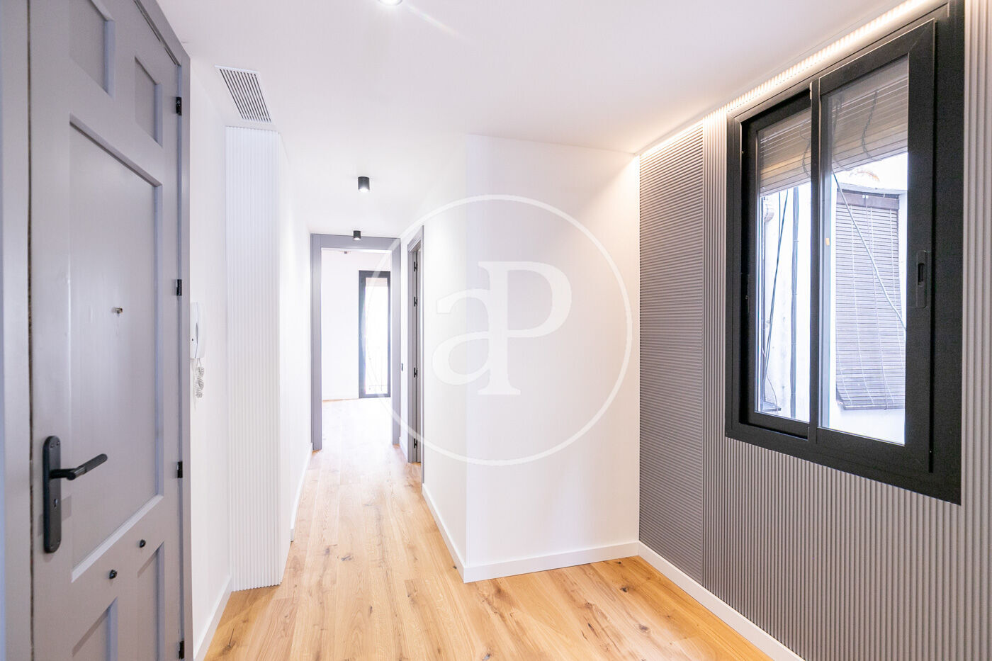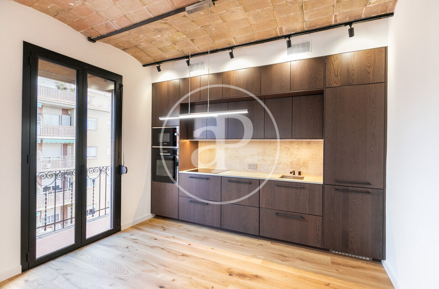 The entire 76m2 property has been completely refurbished, conserving original elements such as the Catalan vault, recovering the exposed brick walls and all of this combined with modern, high quality materials such as the natural wood floors, the enclosures and the hot/cold ducted air-conditioning. All rooms will have built-in wardrobes. The kitchen is fully fitted and equipped.