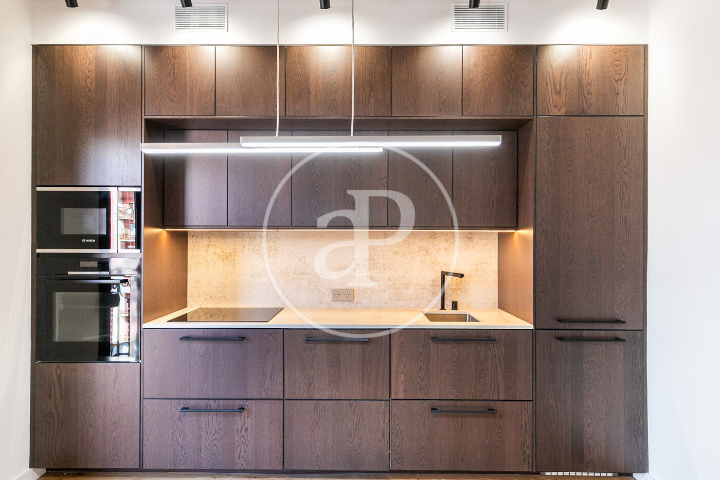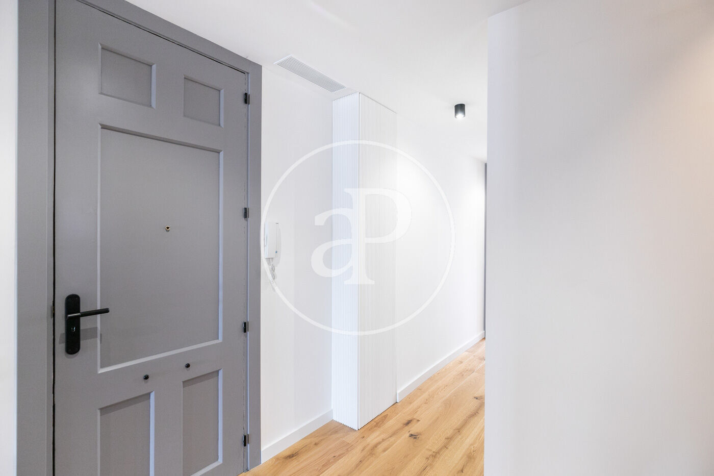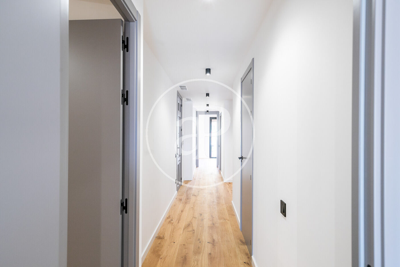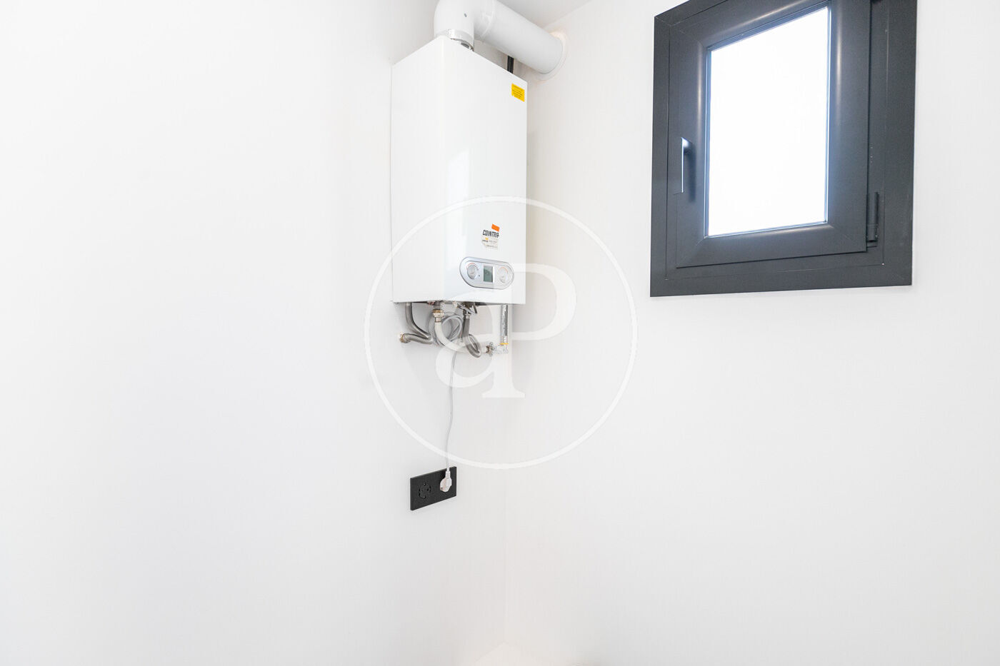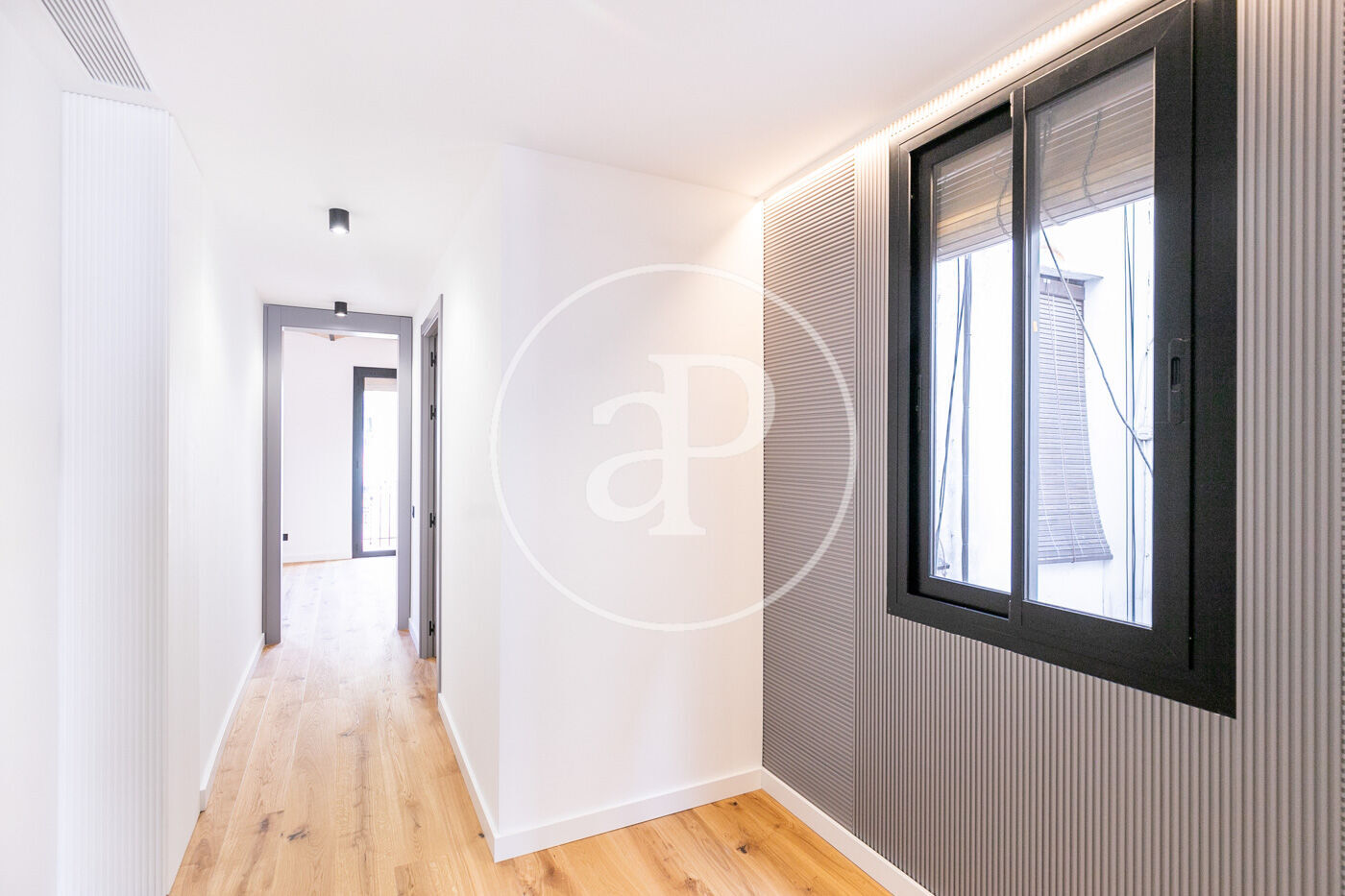 The entire 76m2 property has been completely refurbished, conserving original elements such as the Catalan vault, recovering the exposed brick walls and all of this combined with modern, high quality materials such as the natural wood floors, the enclosures and the hot/cold ducted air-conditioning. All rooms will have built-in wardrobes. The kitchen is fully fitted and equipped.