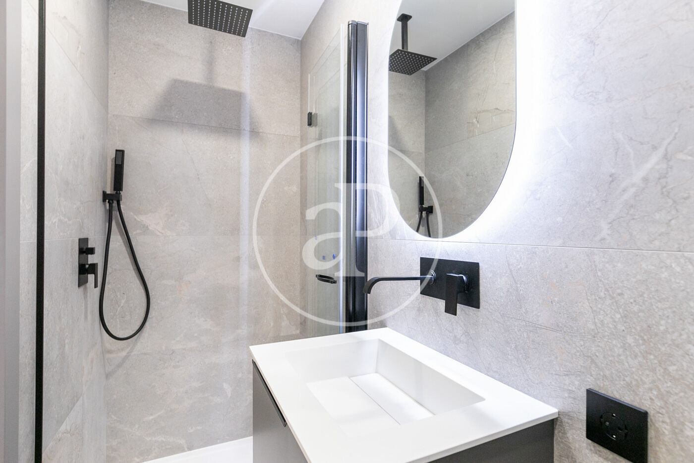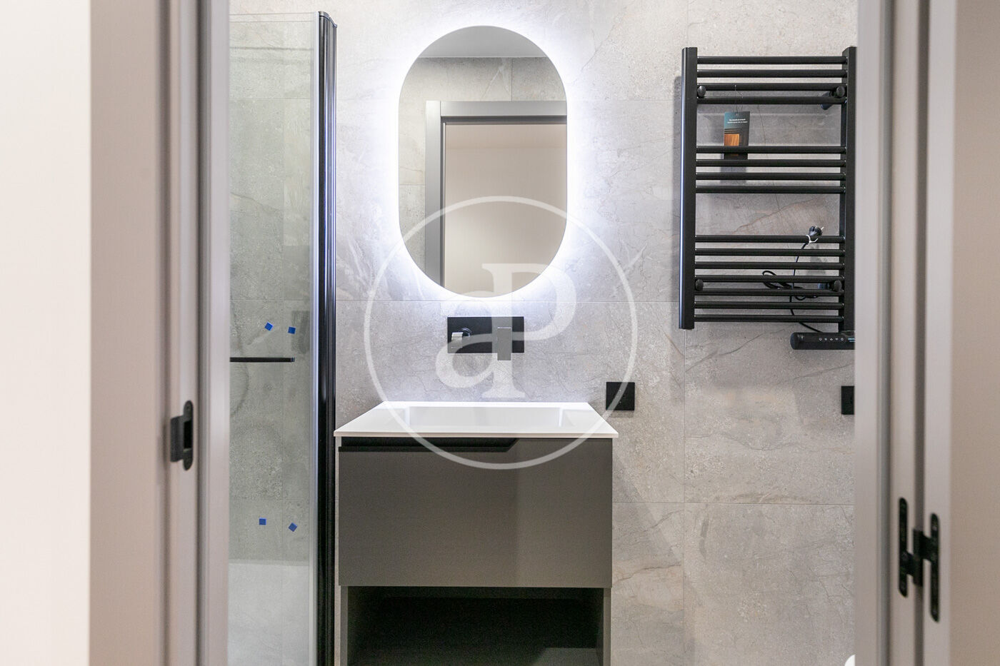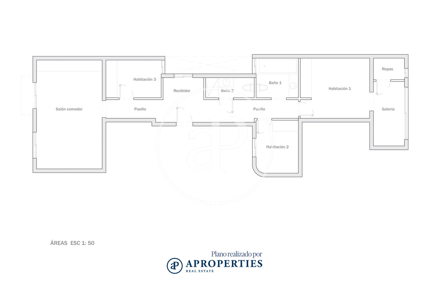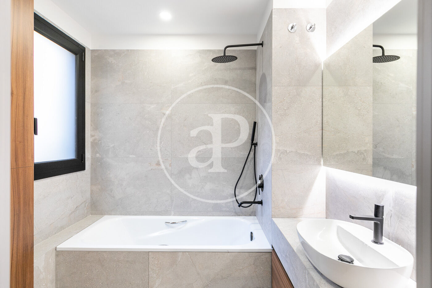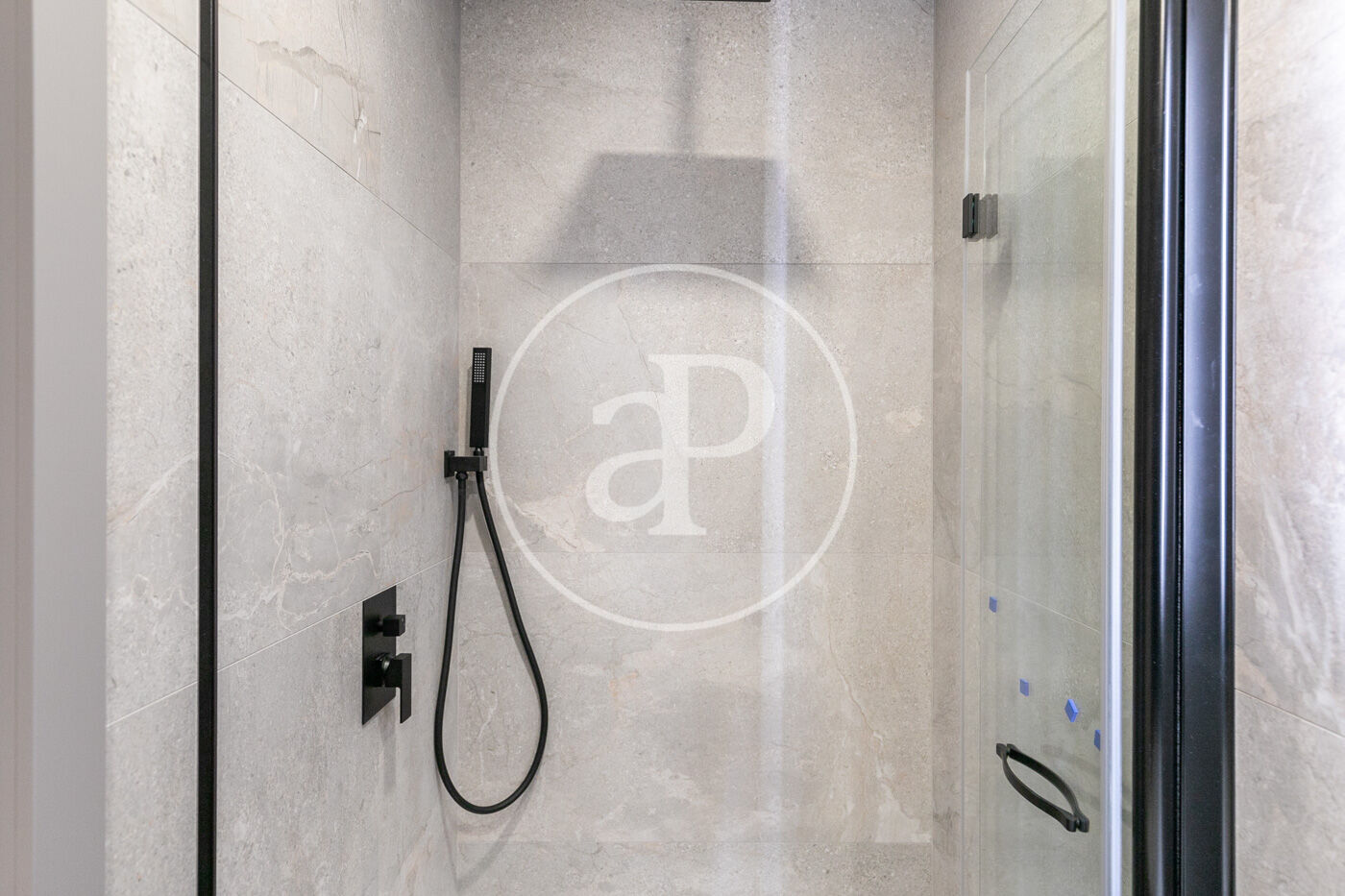 The property is distributed as follows: living-dining room exterior to Nàpols street and with access to a balcony and open kitchen, 3 bedrooms (one double en-suite and two good sized singles) with built-in wardrobes. From the suite we access a sunny covered gallery where we find the water area and a pleasant area to put an office, a reading corner or a dressing room.
