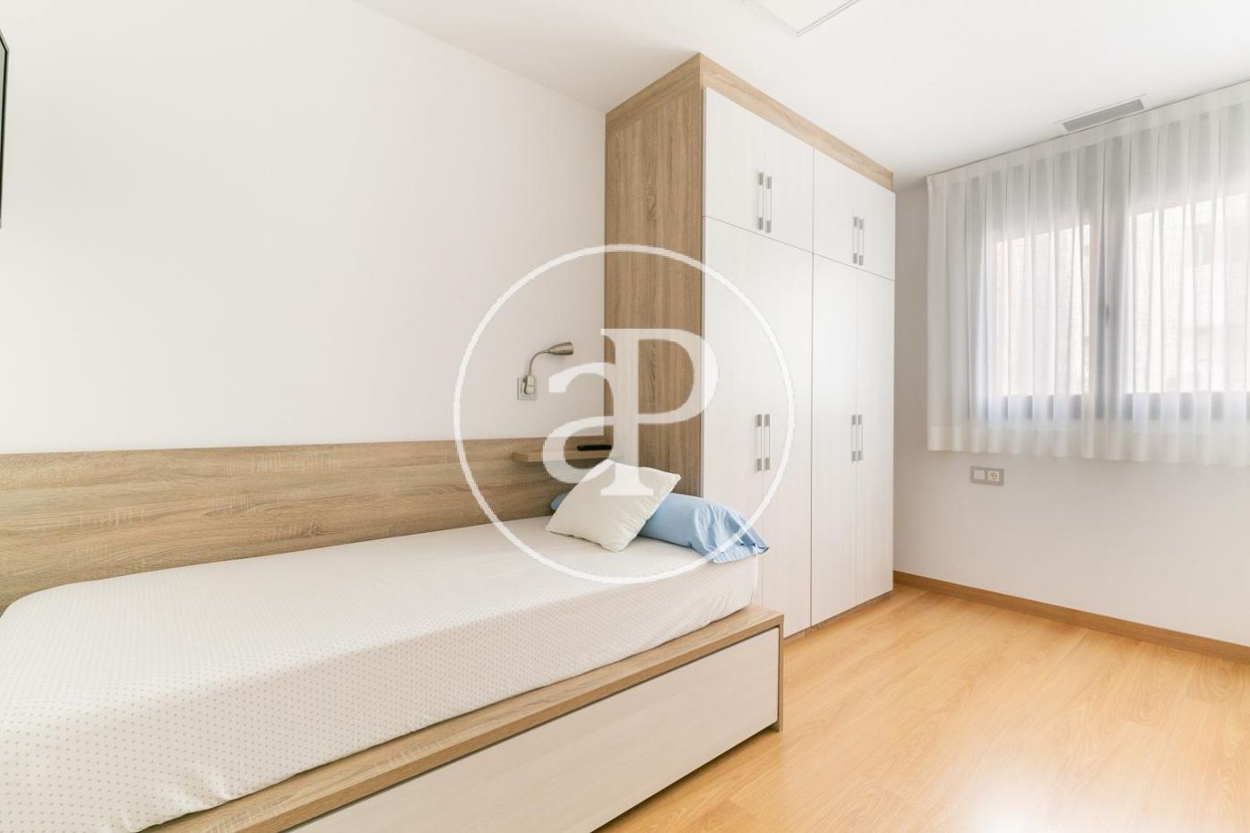 On the other side of the flat there are two bedrooms, one double and one large single, with the second bathroom and a wardrobe for the laundry area. All the rooms are outside and enjoy fantastic natural light as we are on a sixth of real height and the last floor of the building. It is worth mentioning the balcony that has an exit from the living room with south orientation.