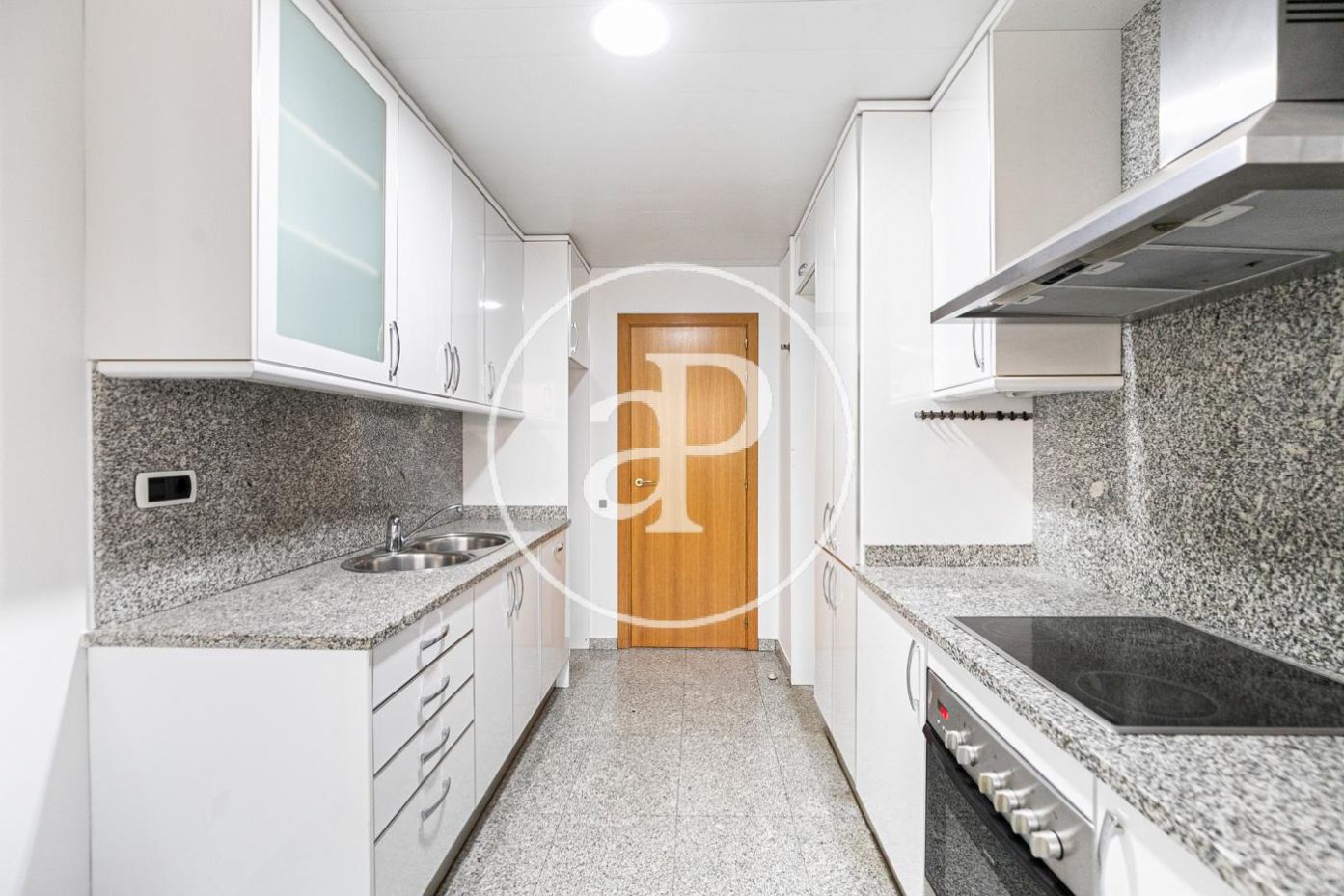 The sleeping area consists of a double bedroom with balcony 1.75m2, two good size single bedrooms and two bathrooms. All rooms are exterior on Ramon Turró Street, facing northwest. Fitted wardrobes in all of them and in the distributor of the bedrooms.