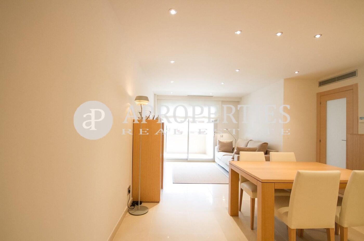 A short distance from the Real Club de Polo of Barcelona is this magnificent apartment of 70sqm, brand new and ready to move in. It consists of a living-dining room with access to an enjoyable terrace overlooking a fantastic garden area, a fully equipped kitchen with high end electrical appliances and two bedrooms that share a bathroom. Complete this fantastic housing a large garden with saltwater swimming pool. It has the possibility to rent a parking space in the same building. Available from October 1st.