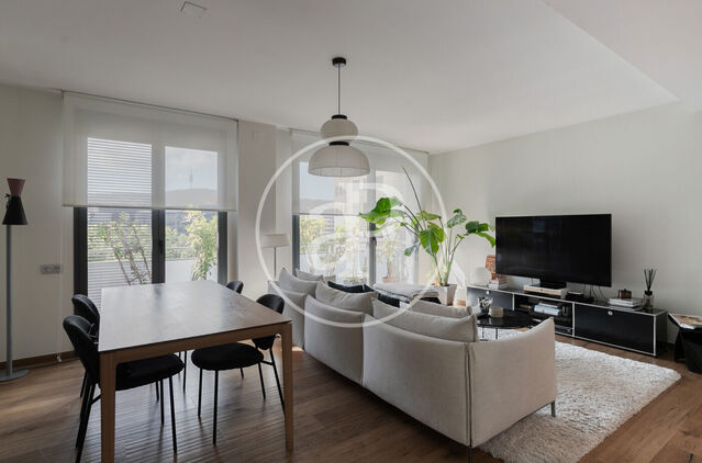Discover this spectacular fully renovated apartment with high-end materials, located in the prestigious Eixample. A home that blends elegance, comfort, and design in every detail, perfect for those seeking a unique living experience in one of the city's most sought-after areas. Upon entering, you are welcomed by a spacious and bright living-dining area with a sophisticated open-plan kitchen, fully equipped with state-of-the-art appliances. Every corner has been thoughtfully designed for maximum comfort, from the spacious desk ideal for remote work to the cozy corner dining area that invites long and relaxed meals. The highlight of this property is its stunning 18 m² terrace, a private oasis fully furnished and perfect for enjoying Barcelona’s sunny days in the company of friends and family. The sleeping area features two large and bright double bedrooms. The master suite stands out for its elegance, featuring a private bathroom, built-in wardrobes, and unbeatable views. The second bedroom, equally spacious and with privileged views, includes built-in wardrobes and access to a second full bathroom, which also serves as a guest restroom. This exclusive apartment comes fully furnished with designer pieces and modern décor that enhances its sophistication. Additionally, it is equipped with central air conditioning (hot/cold) to ensure maximum comfort throughout the year. If you are looking for a home that combines luxury, functionality, and exclusivity in the heart of Barcelona, this property is for you. Contact us for more information and schedule your visit! The purpose of the contract is temporary.* In compliance with Law 12/2023 and Law 18/2007, we inform thatIndex of R.P.LL: 15,17 € / m2 State reference price 1.258,00 €