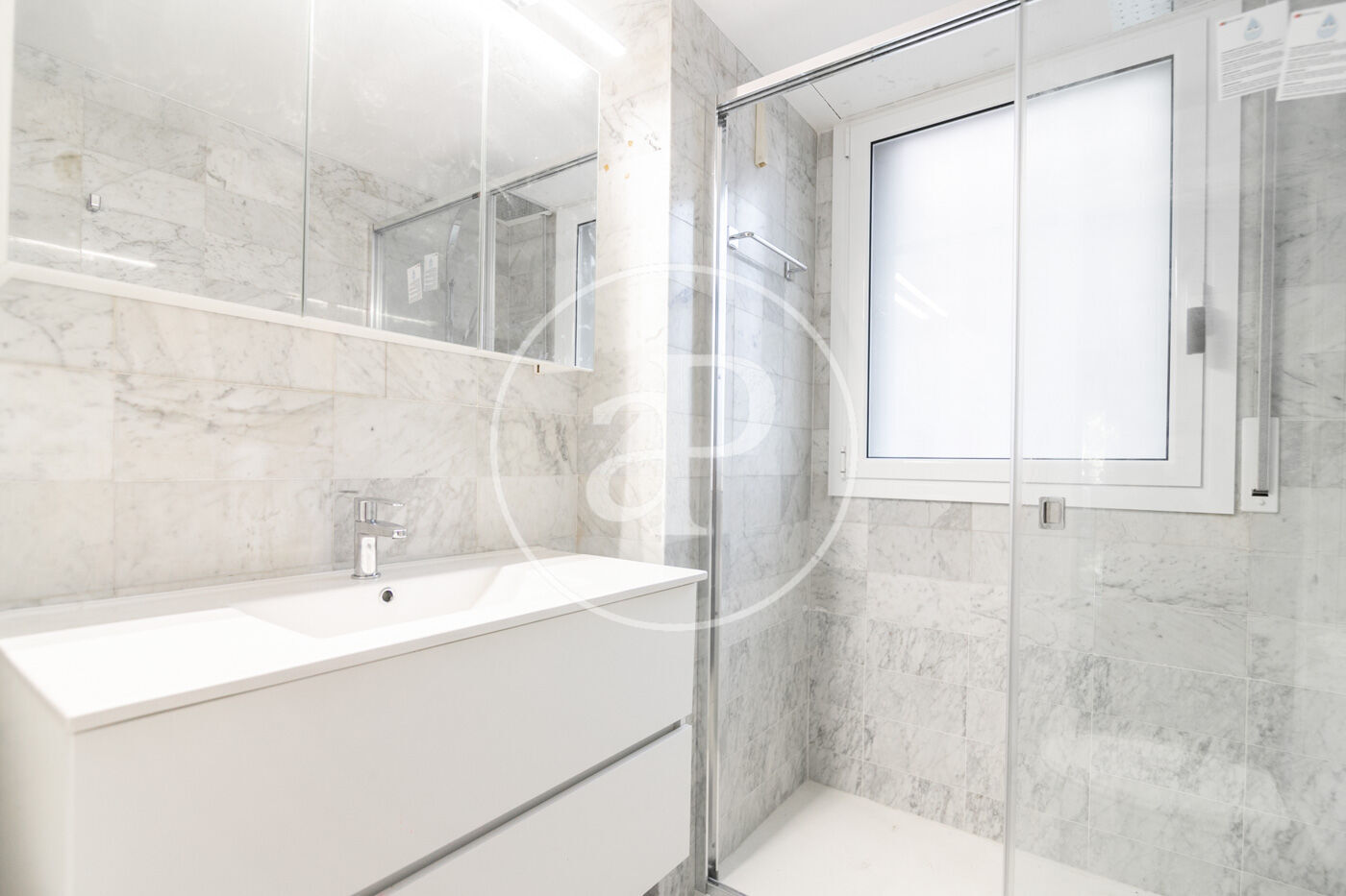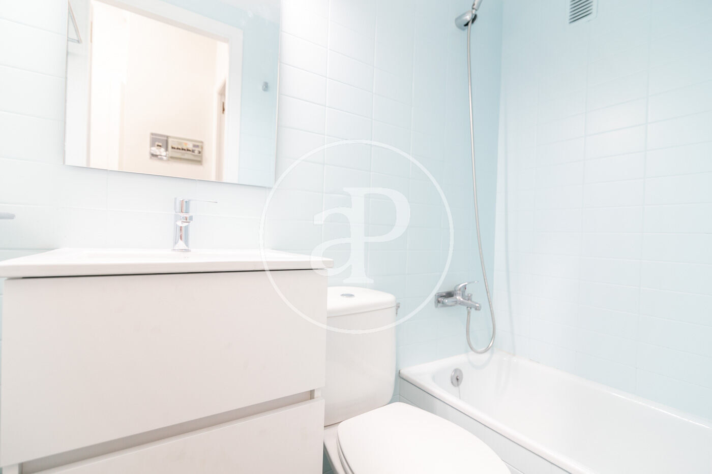 From the entrance hall, we can access two of the bedrooms — the main one and another double bedroom — both with built-in wardrobes, as well as two full bathrooms: one with a bathtub and the other with a fully renovated shower.