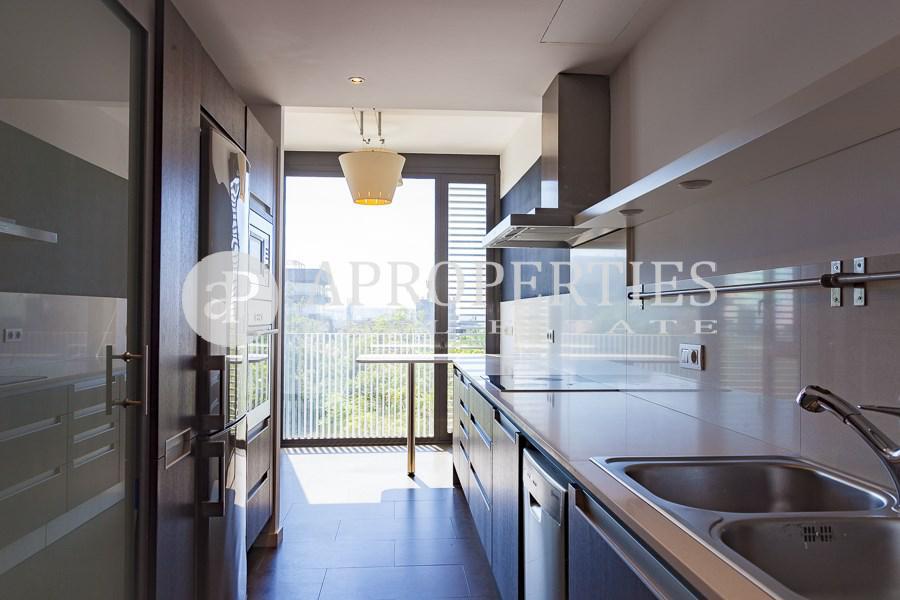 Located in the quiet neighborhood of Pedralbes, close to the most prestigious national and international schools in Barcelona, with good access to the roads, we find this brand new apartment of 120sqm with three bedrooms and three bathrooms, garden and communal swimming pool. From the entrance hall we access to the bright living-dining room of 40sqm with access to an enjoyable sunny terrace of 10sqm facing southeast. The eat-in kitchen with utility room is outward-facing and fully equipped. The sleeping area consists of three bedrooms, two of them en suite, and the master bedroom has a spa bath and built-in wardrobes. It has wooden floors throughout the house, heating radiators, air conditioning ducts and electric shutters. The property includes a parking space, concierge service and two lifts.