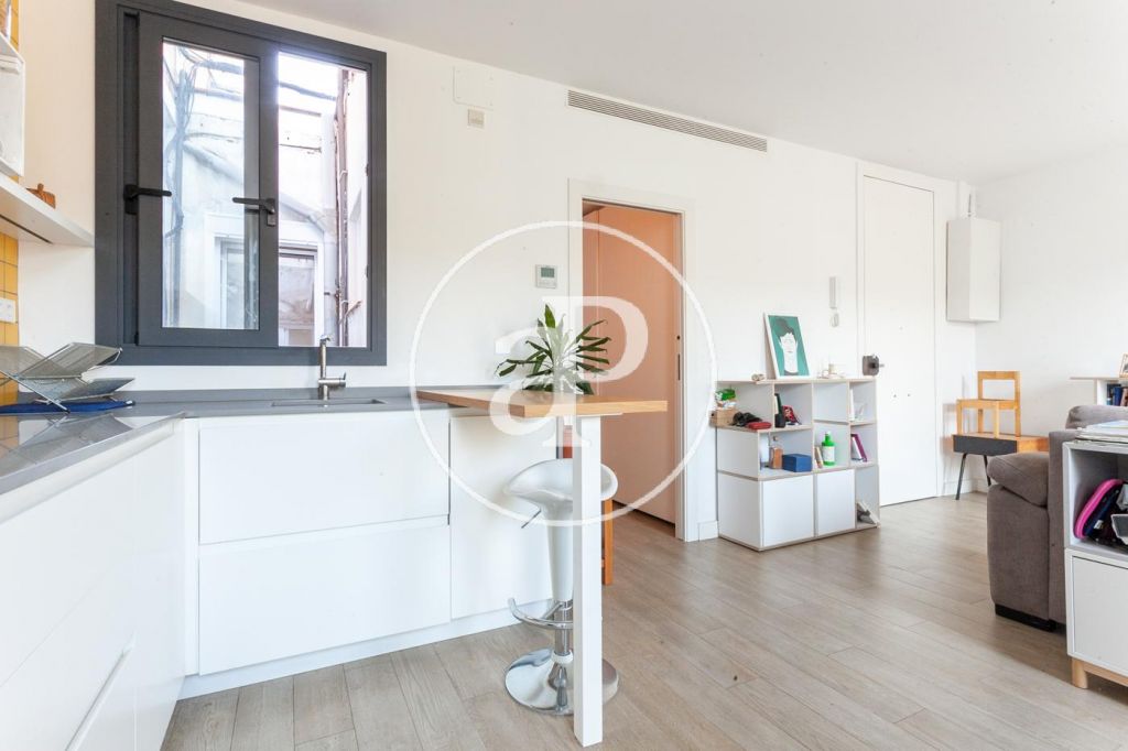 Located in the most fashionable neighborhood in the city, surrounded by trendy bars and restaurants, leisure areas and promenade; A few minutes from the Market of Sant Antoni and the surrounding Illa Verda, excellently connected by all types of public transport, we find this bright attic of almost 50 sqm plus 30 sqm of terrace ideal for having a patio in the Barcelona Parallel.