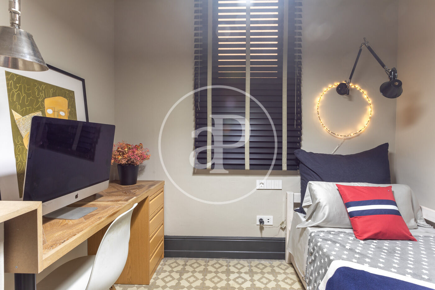 In front of the foyer are two interior bedrooms, one double and one single, and to the left are the other two: a spacious double bedroom with a raised bed, and the main bedroom, which is en suite, very large and bright. The apartment also has a second full bathroom and a guest toilet.