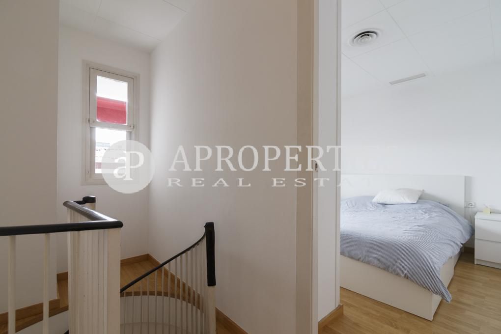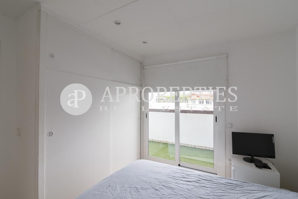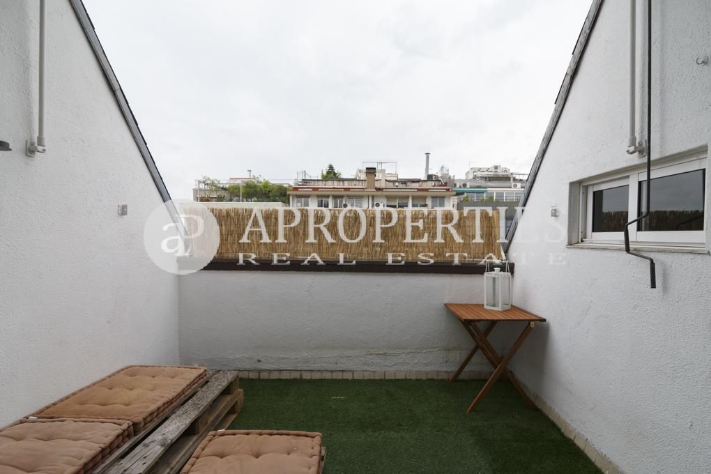 Located a few meters from Avinguda Diagonal, in the prestigious neighborhood of Sant Gervasi-Galvany, surrounded by all kinds of shops and public transportation, we find this functional 55m² attic and 22 m² terraces, that enjoys of a very good orientation. The flat is distributed into two floors, the first one has a very bright living room, a kitchen, both rooms have access to the terrace, and a bathroom. On the upper floor, we find two bedrooms and a bathroom. The main bedroom has access to a nice and private terrace of about 7 sqm. The flat is completely renovated and exists the possibility of renting a parking space in the same building.