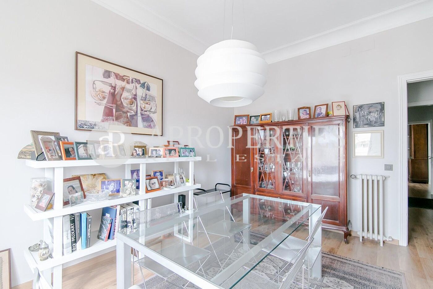 Located in a magnificent listed building in the most prestigious area of Barcelona, in Balmes street and a few meters from Avenida Diagonal, we find this superb flat of 220sqm approx. The renovated housing has a large living-dining room with fireplace, kitchen, utility room, five bedrooms and three bathrooms. It is a high floor with lots of light and tranquillity. Moreover has concierge service, a storage room and the possibility of a parking space close to the building. It is a unique opportunity to purchase a beautiful property in the center of Barcelona.