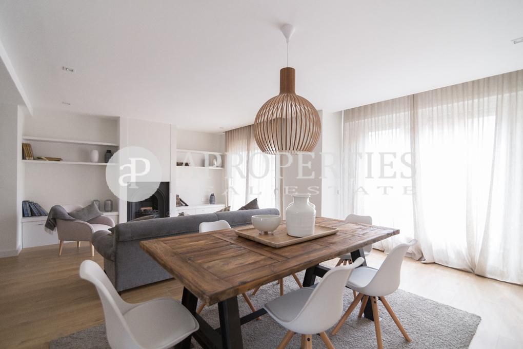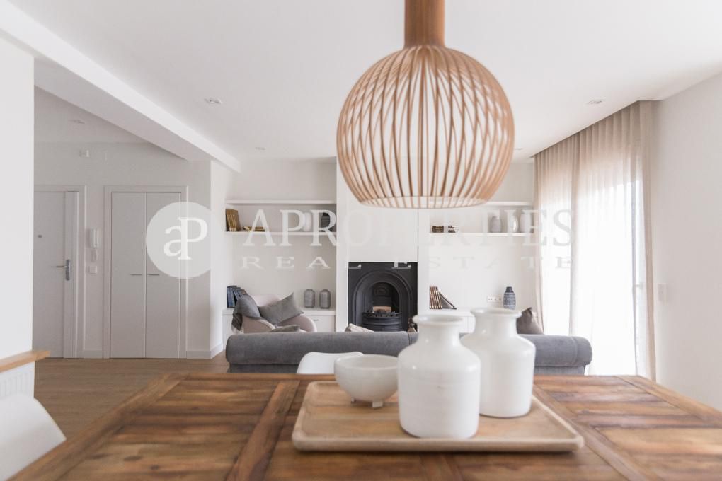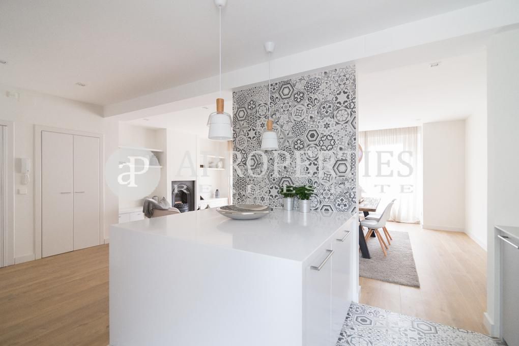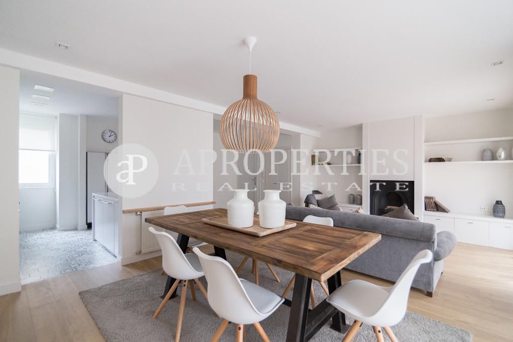 In charming Santaló Street, one of the most solicited in Sant Gervasi-Galvany, located just a few meters from the neighborhood's picturesque market, surrounded by all kinds of shops and services, and near public transportation, we find this property whose luminosity, and quality of its reform make it unique in the area. The 131 sqm flat consists of a large living room with access to a nice 7sqm approx. terrace, a kitchen fully equipped, three bedrooms, one en-suite and one single, two Bathrooms, laundry room and a storage room. It has fitted wardrobes in the bedrooms and in the hallway, hardwood floors, led lights, a fully equipped kitchen, state-of-the-art appliances, and a fireplace. The renovation has been done using elements of great quality paying special attention to detail, as the beautiful gas fireplace that presides the room. On the whole, the property is full of charisma and uniqueness.