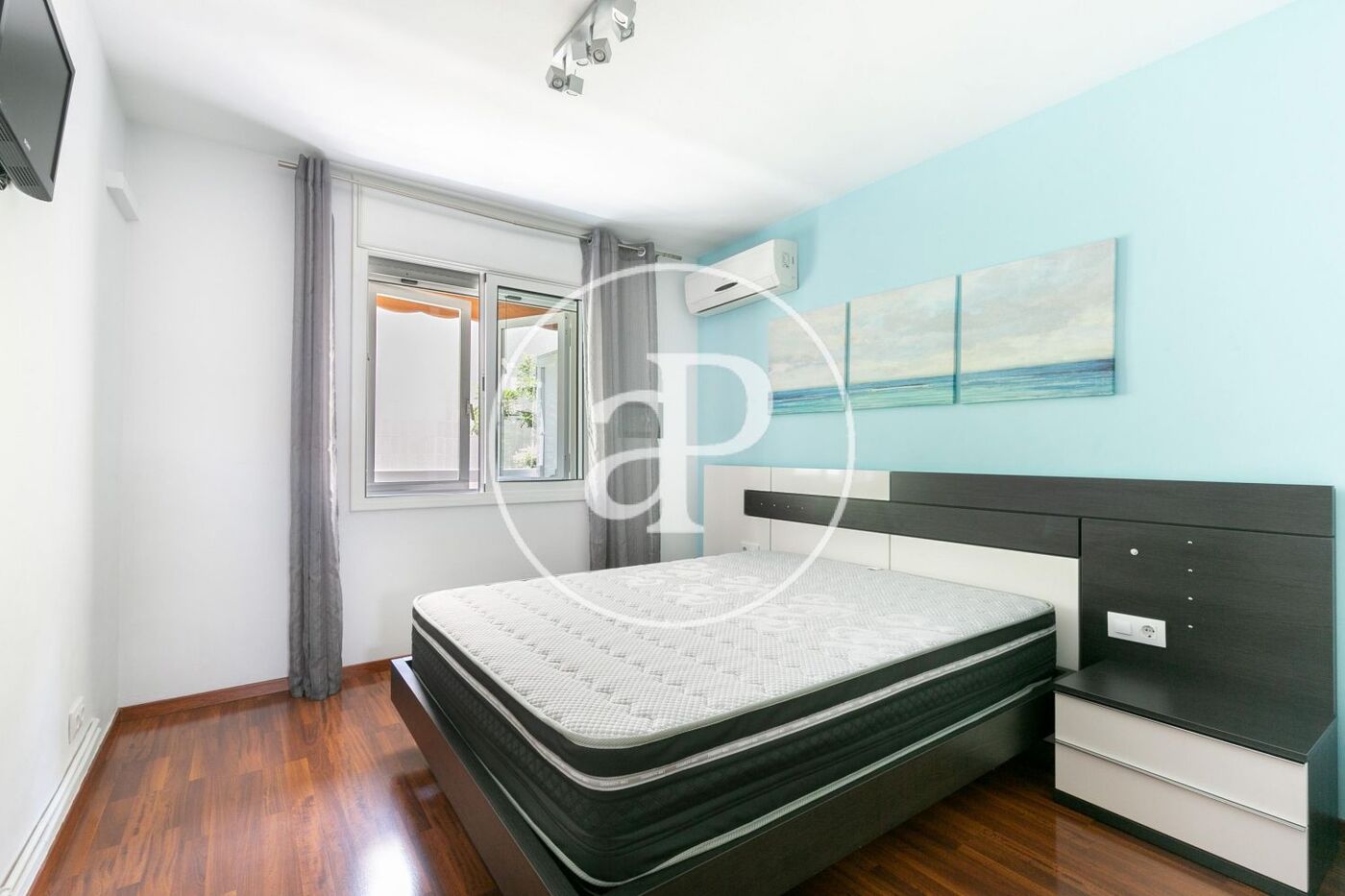 The apartment features quality finishes and the windows have double aluminum frames.