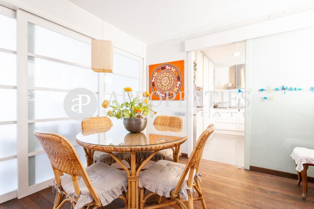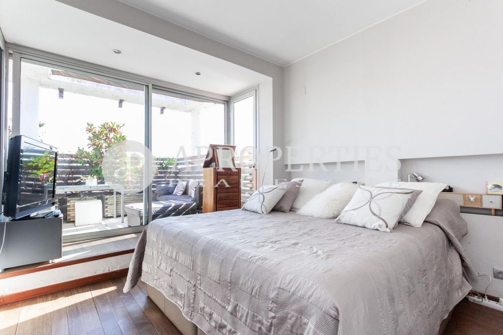 In the heart of Sarrià, surrounded by shops and very well connected with all means of public transport, very close to national and international schools and next to the main street of Sarrià, we find this penthouse with a splendid and enjoyable terrace of 30sqm. The apartment has an area of 115sqm, having been renovated a few years ago. From the hall you enter the living-room with access to the terrace, with views and oriented to the midday sun; a sliding door communicates the living-room with the kitchen and the water area. The sleeping area consists of the master bedroom in suite with a dressing room and access to the terrace and two bedrooms that share a bathroom with a bathtub. The entire floor is exterior. It has wooden floors, air conditioning by ducts and heating by gas radiators. It has a parking space in the same building. The building has an elevator, concierge service, and surveillance at night in the parking.